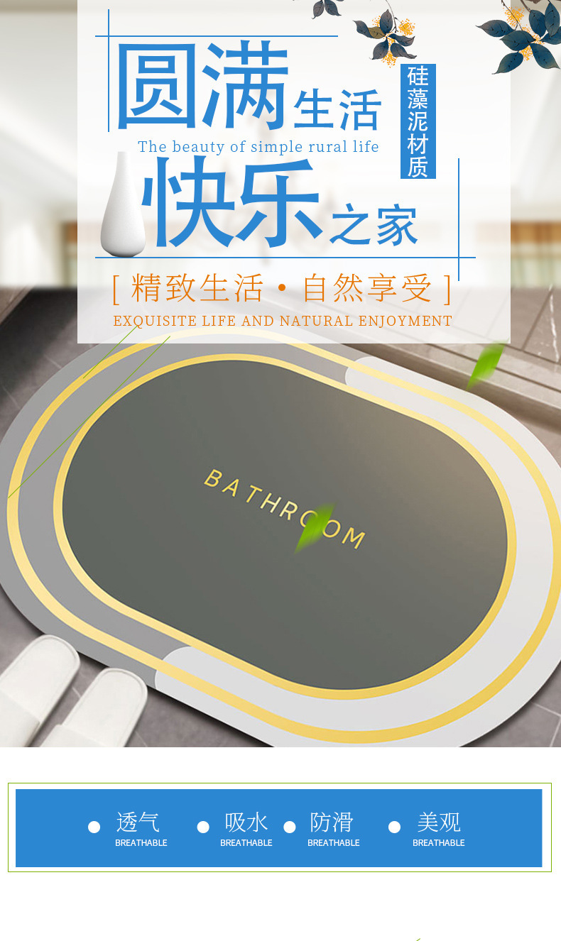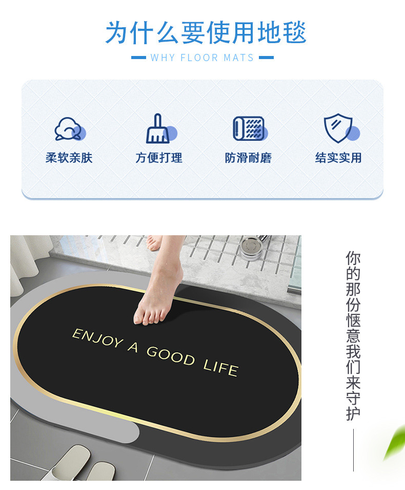 부드러운 규조토 흡수 매트 미끄럼 방지 빠른 건조 발 매트 간단한 욕실 문용 방오 관리용 매트스토어 가기