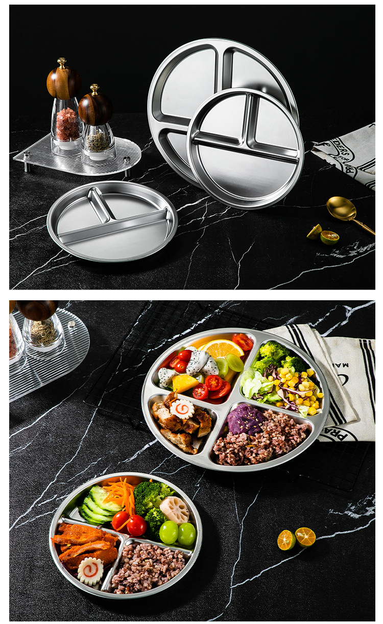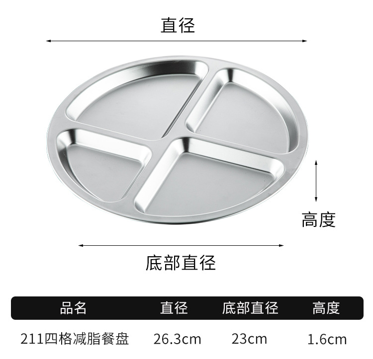 304 스테인리스 식판, 분할형 원형 3~4칸, 211 성인 다이어트 학생용, 내구성 강한 분할식판, 정량식