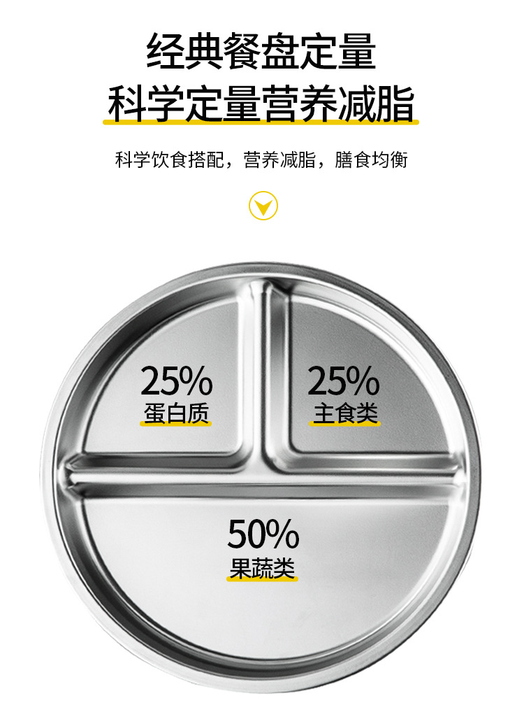 304 스테인리스 식판, 분할형 원형 3~4칸, 211 성인 다이어트 학생용, 내구성 강한 분할식판, 정량식스토어 가기
