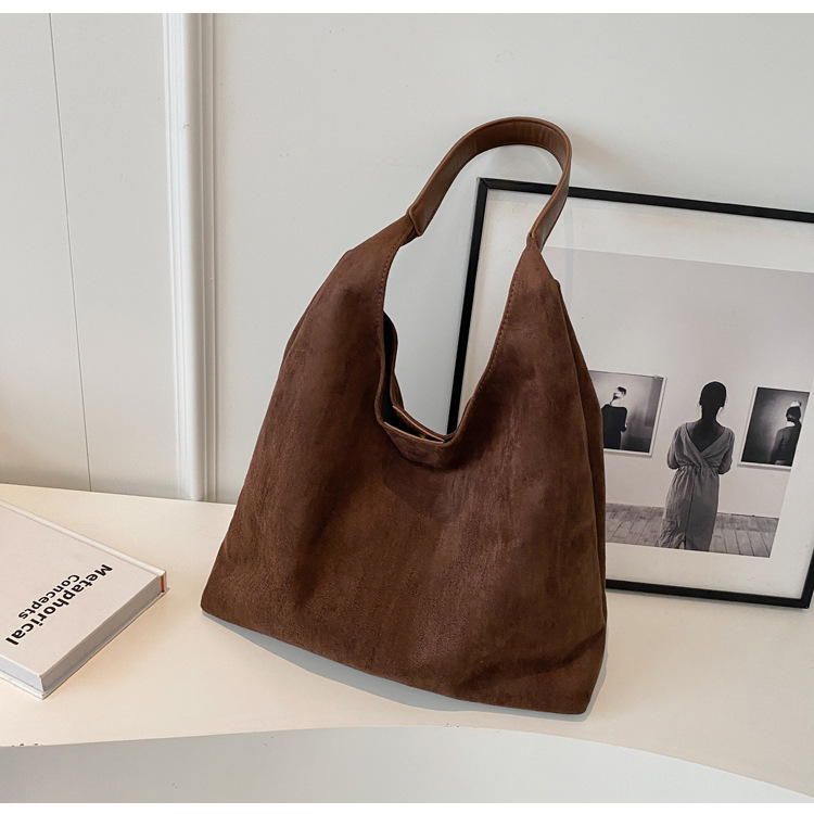 빈티지 캐주얼 통근 대용량 가방 여성의 2024 년 새로운 가을 및 겨울 스웨이드 토트 백 틈새 올 매치 숄더 백스토어 가기