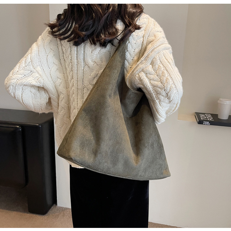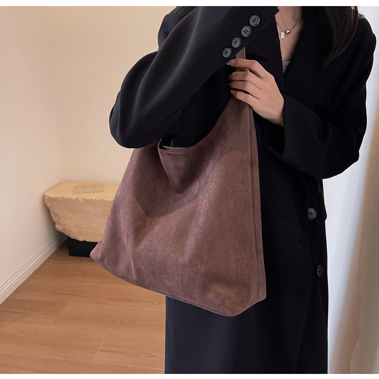 빈티지 캐주얼 통근 대용량 가방 여성의 2024 년 새로운 가을 및 겨울 스웨이드 토트 백 틈새 올 매치 숄더 백