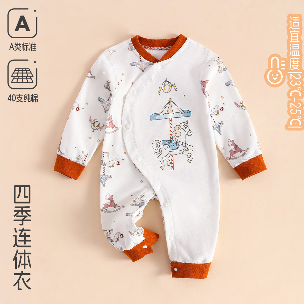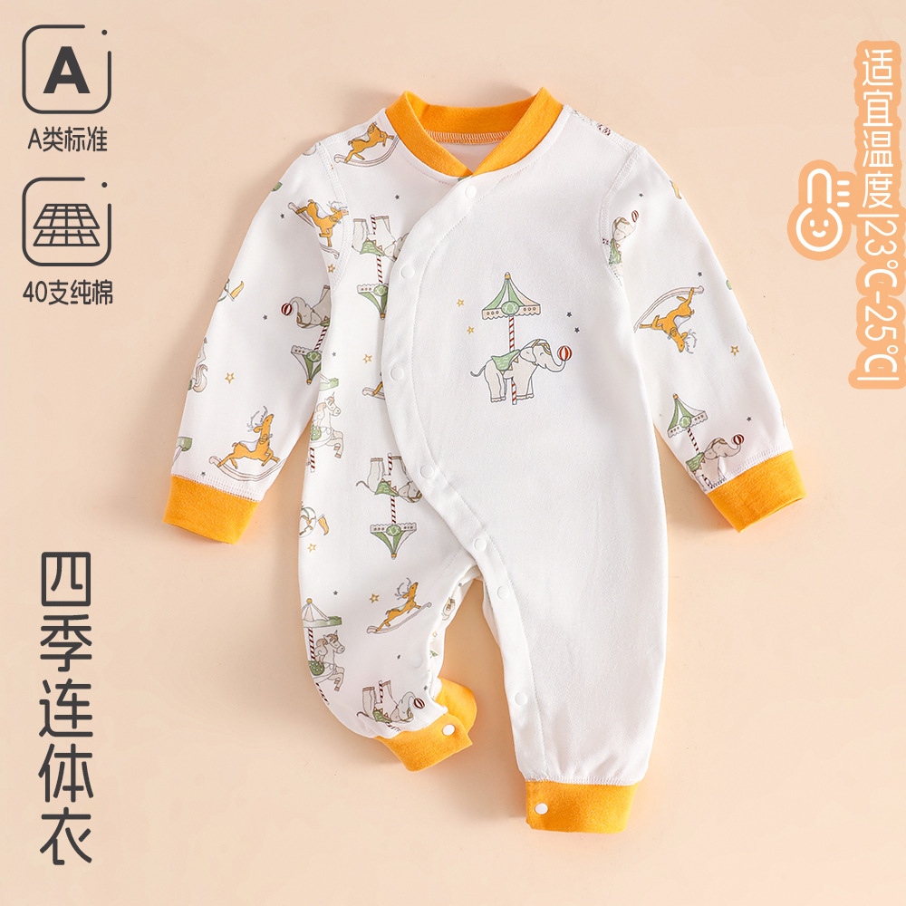 新生儿衣服四季款长袖纯棉无骨哈衣 男女宝宝连体衣服家居服打底