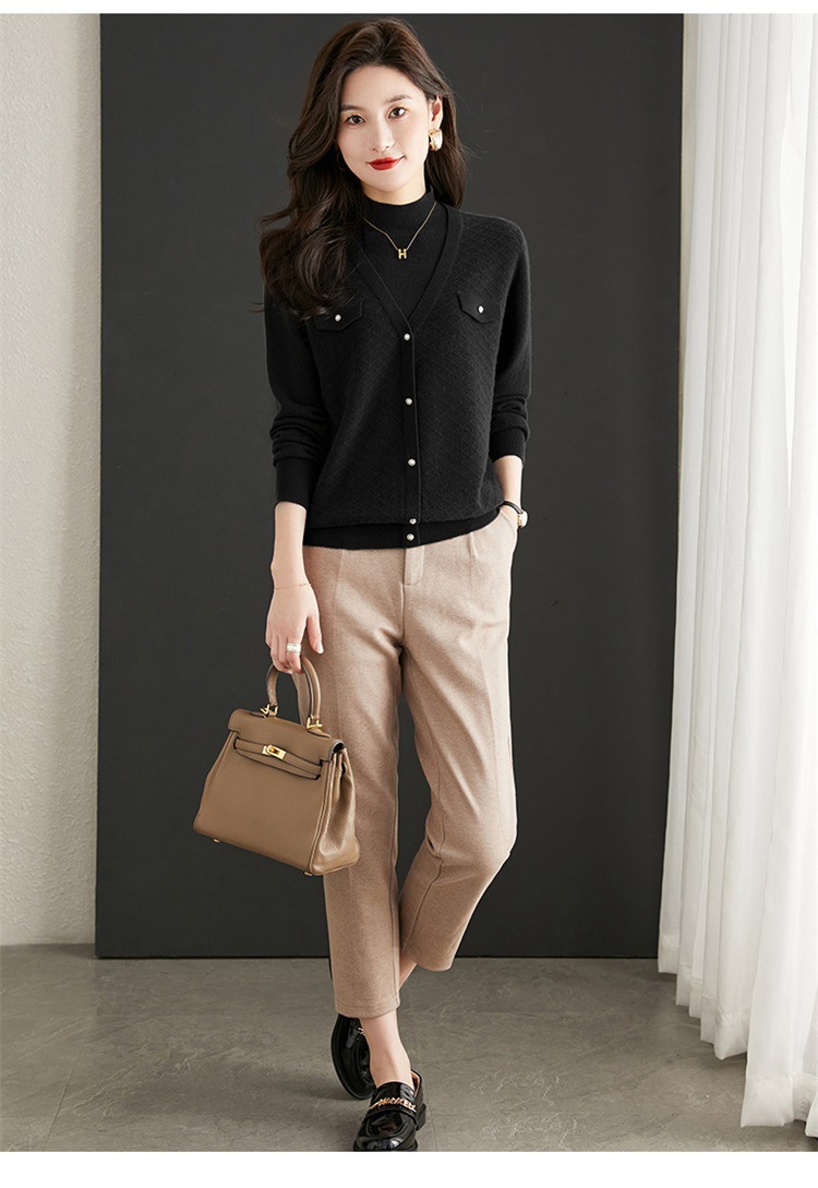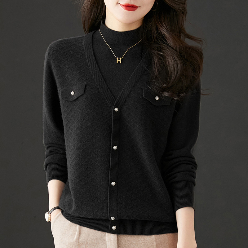 반하이넥 스웨터 여성용 페이크 투피스 상의 가을 겨울 2025 신상 스타일리시 이너 니트 베이스 셔츠 봄 가을용