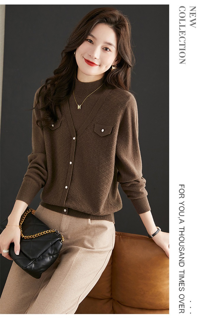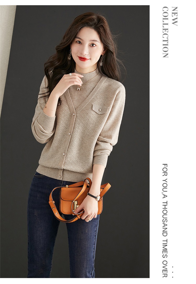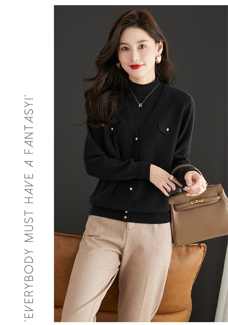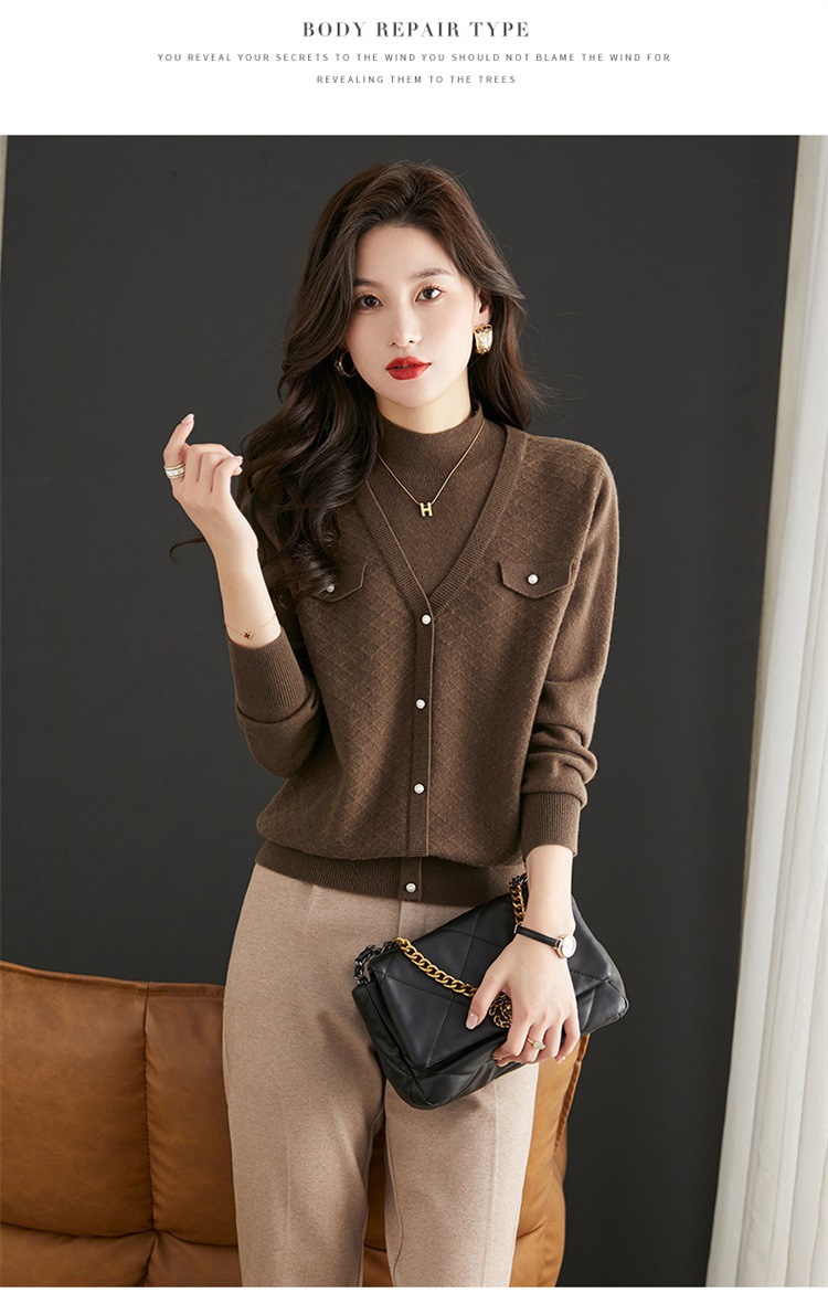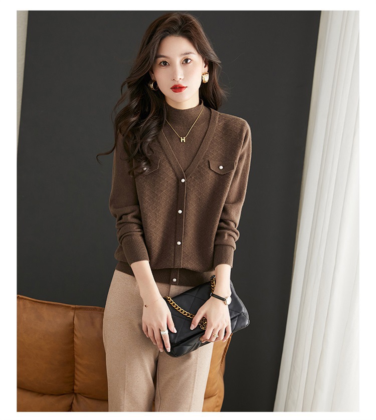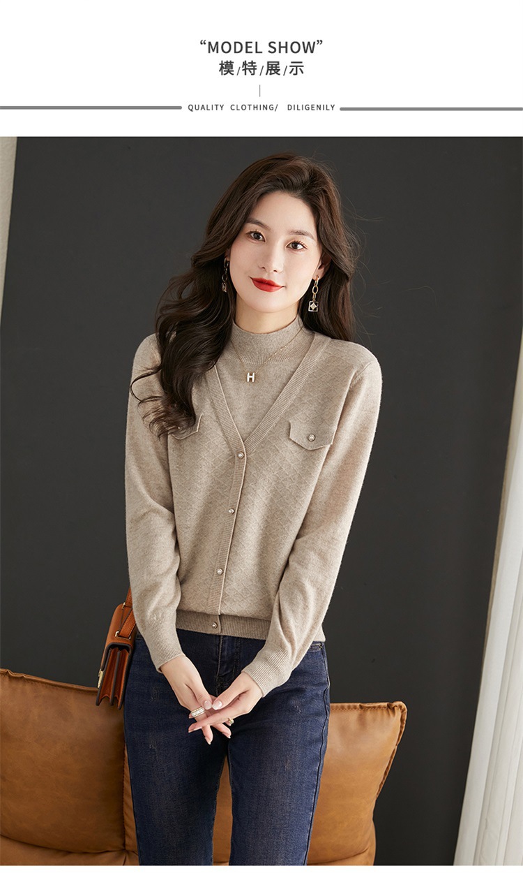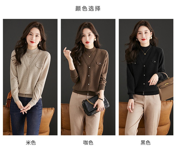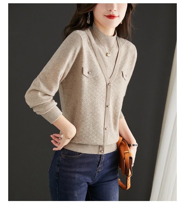 반하이넥 스웨터 여성용 페이크 투피스 상의 가을 겨울 2025 신상 스타일리시 이너 니트 베이스 셔츠 봄 가을용스토어 가기