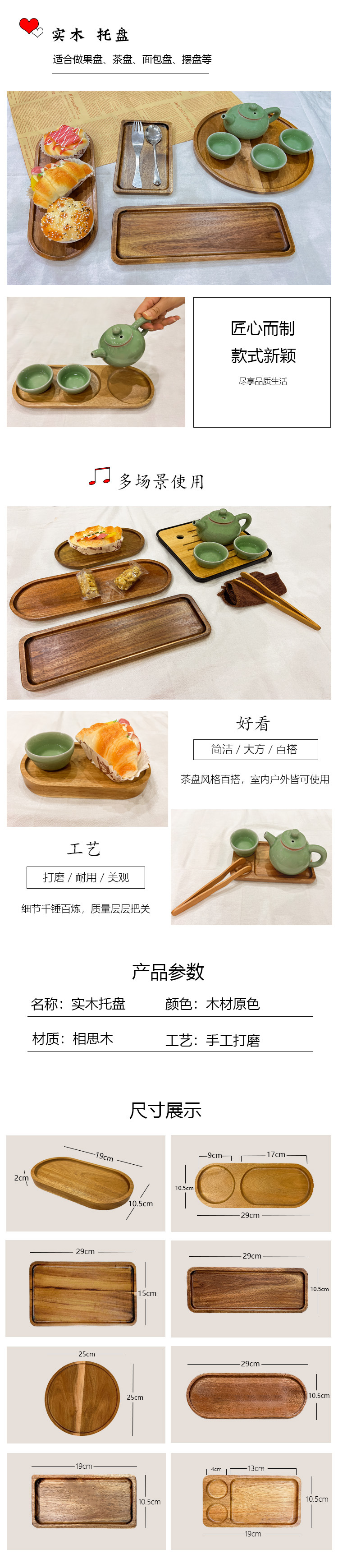 아카시아 나무 트레이 단단한 나무 과일 플레이트 가정용 직사각형 나무 말린 과일 플레이트 아침 식사 티 컵 플레이트 일본 트레이