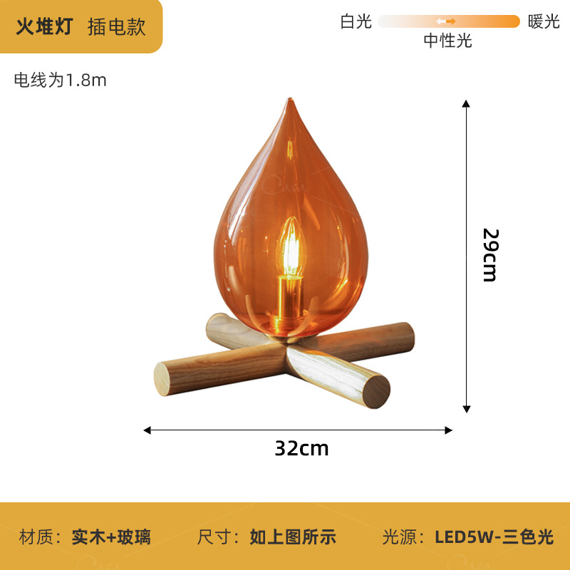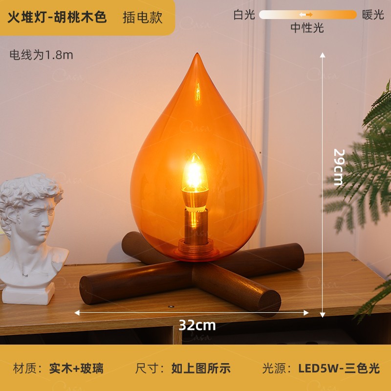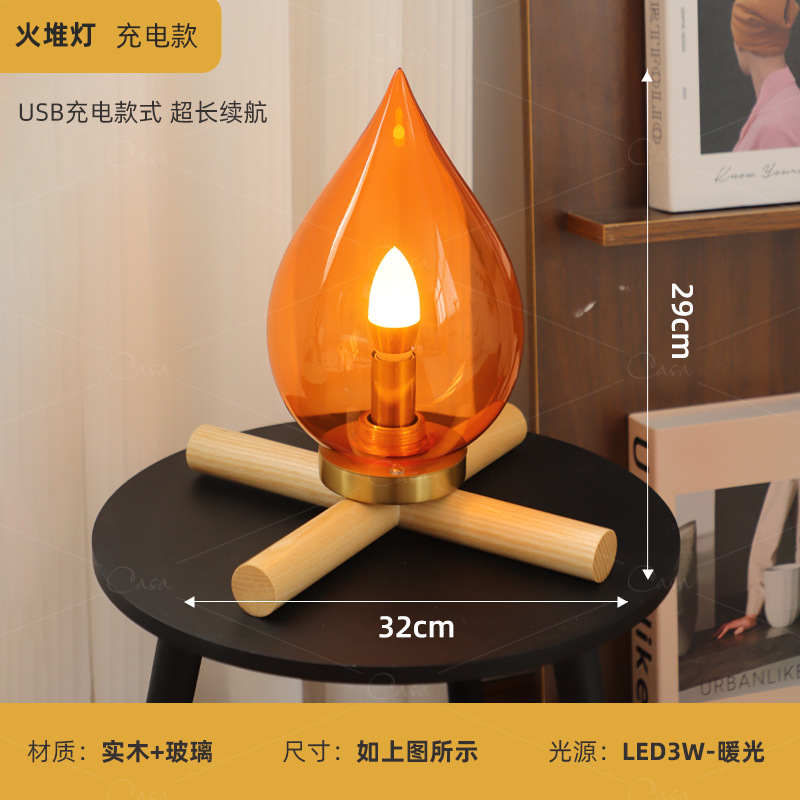 [불 더미 램프] 침대 옆 복고풍 장식 테이블 램프 디자이너 크리 에이 티브 분위기 램프 침실 거실 야간 조명