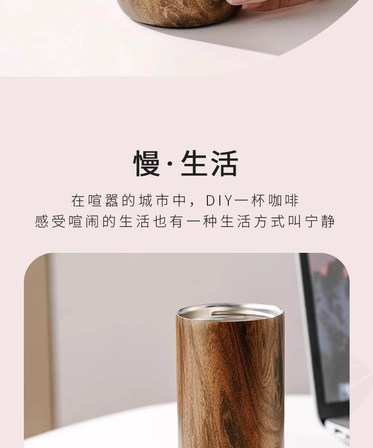 • 우드 그레인 커피 컵-400ml (세라믹 코팅 라이너)