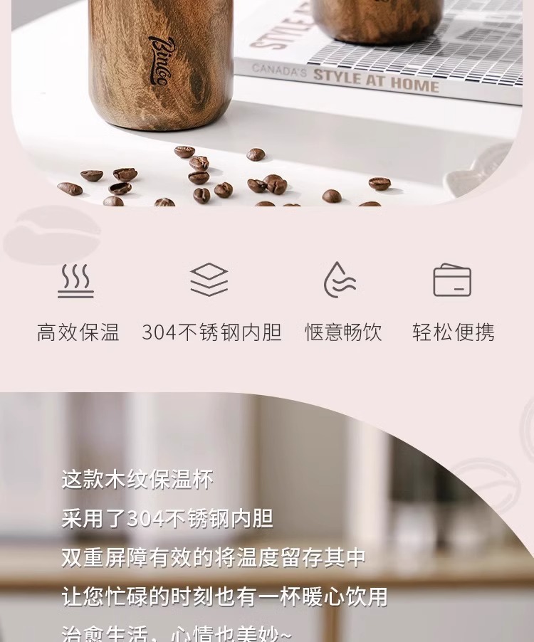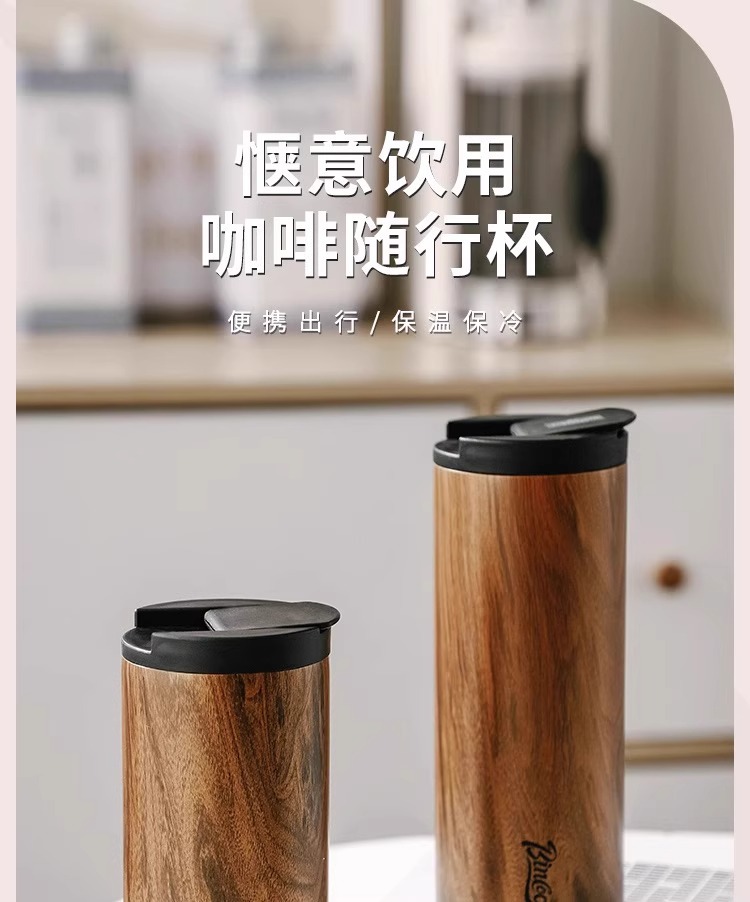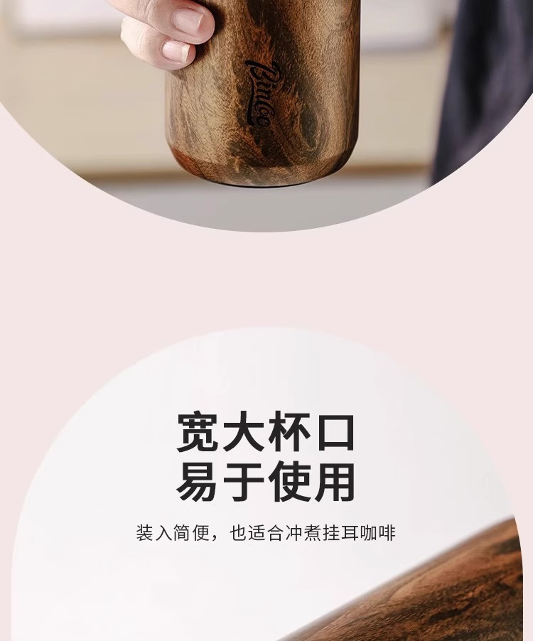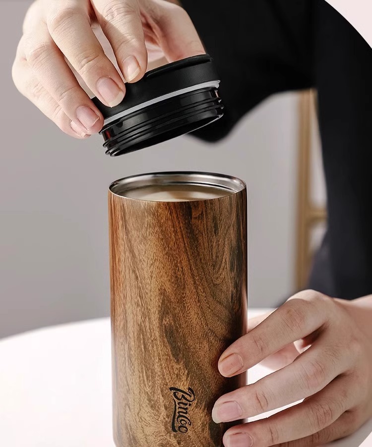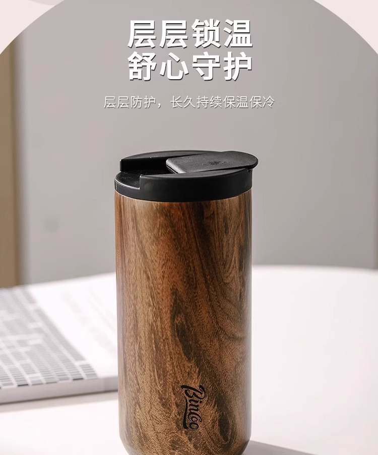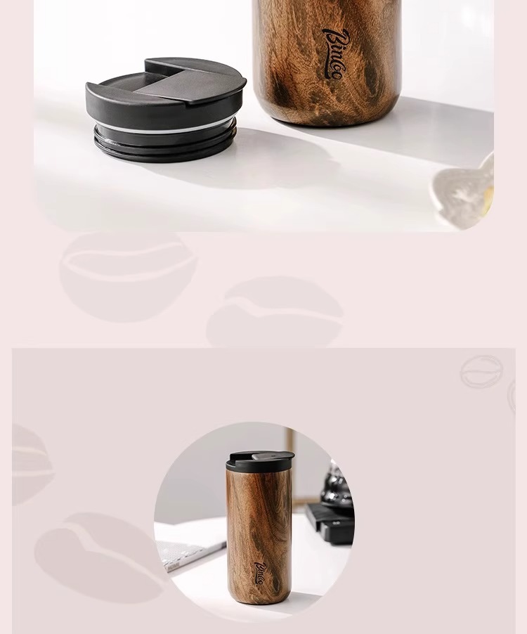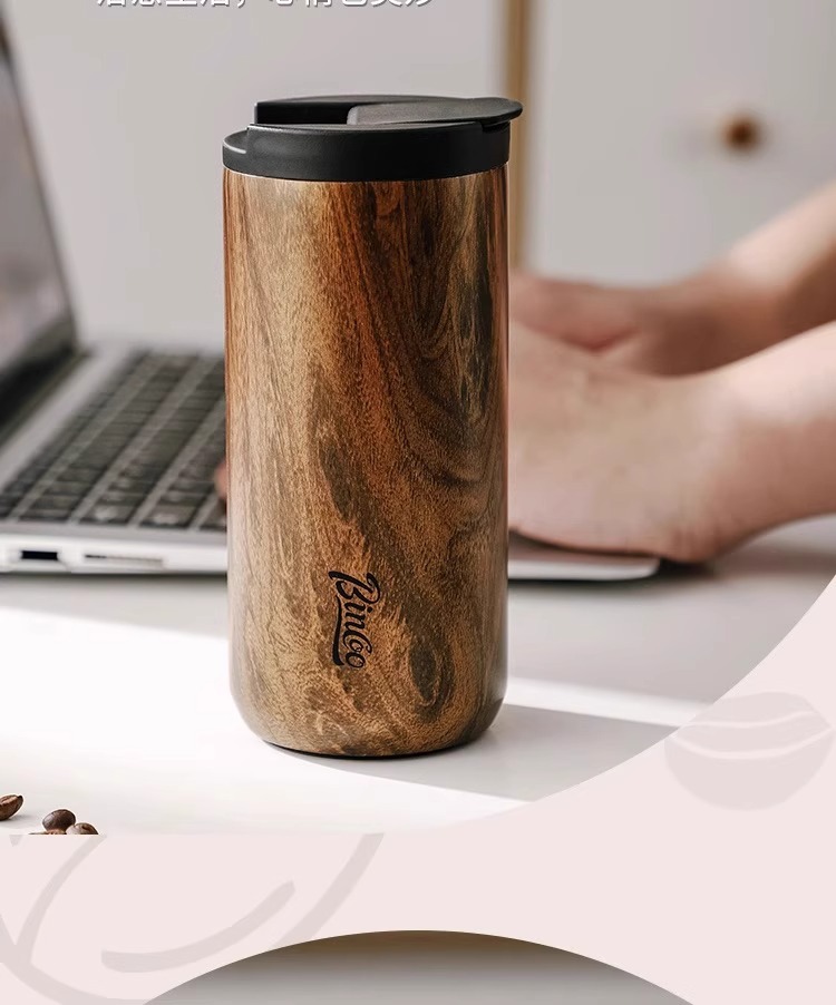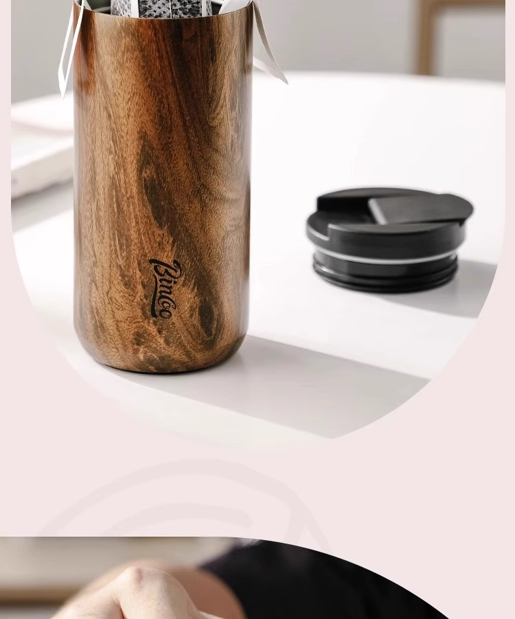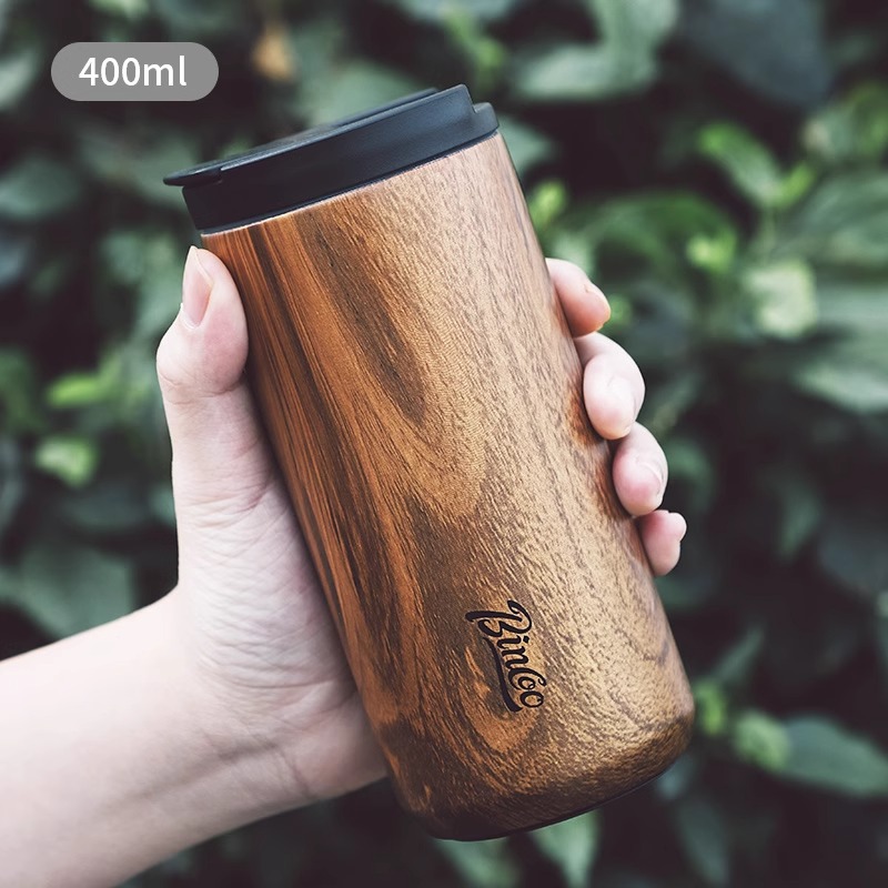 Bincoo 빈티지 커피 컵 우드 그레인 새로운 스타일 보온병 컵 라이트 럭셔리 절묘한 남자 휴대용 동반자 컵 마시는 컵