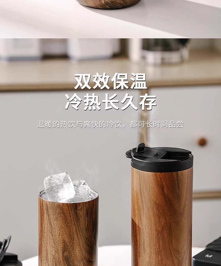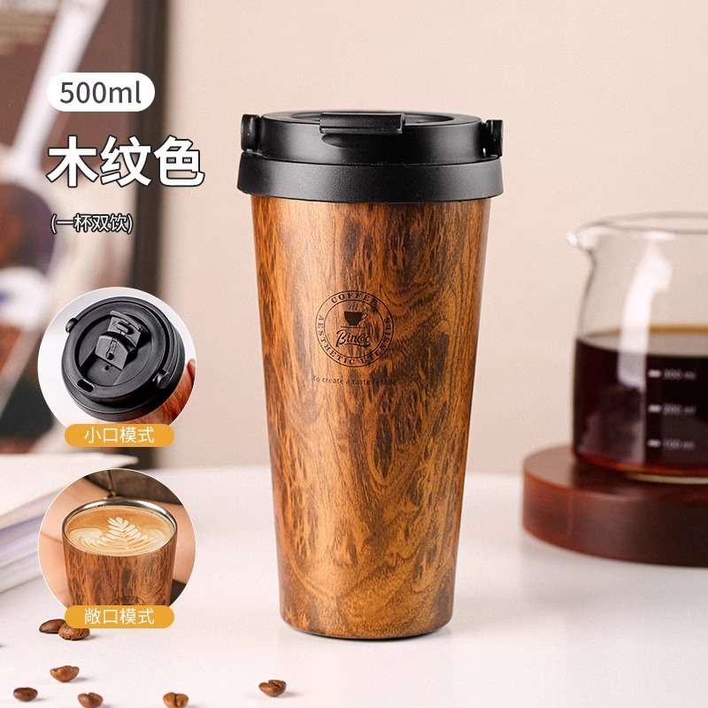 • 우드 그레인 커피 컵-500ml (세라믹 코팅 라이너)