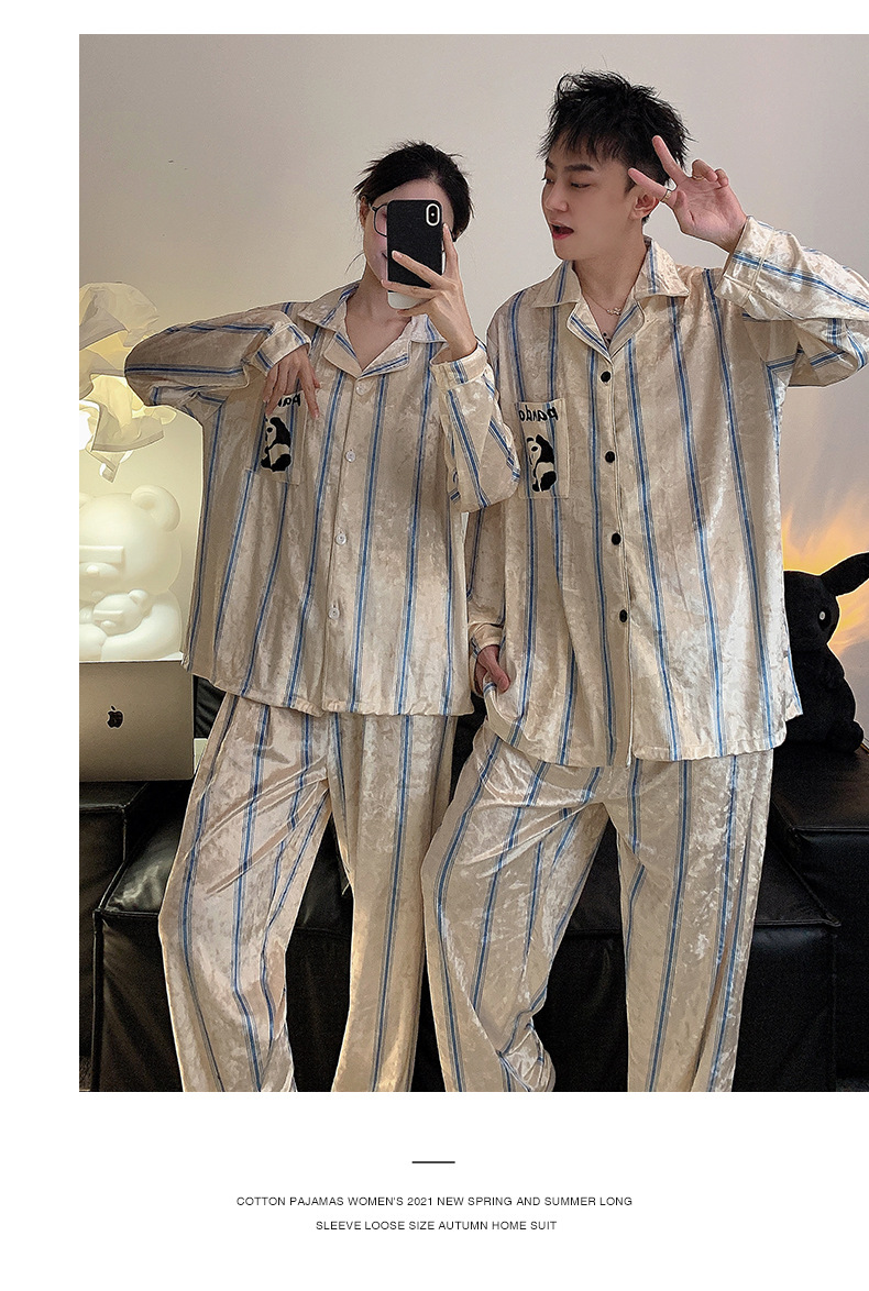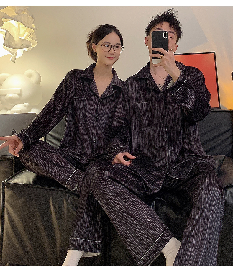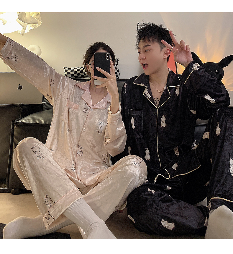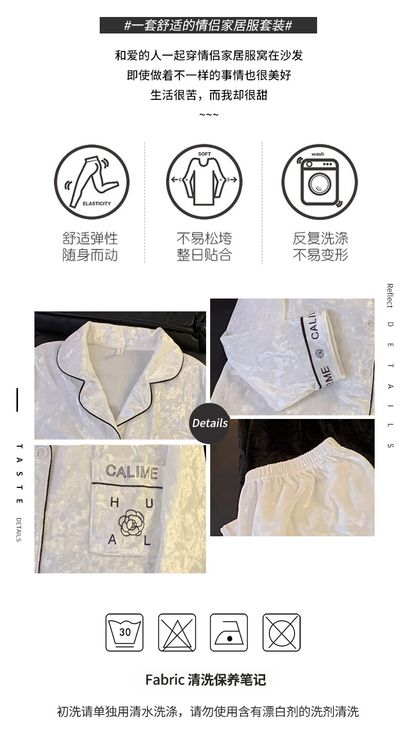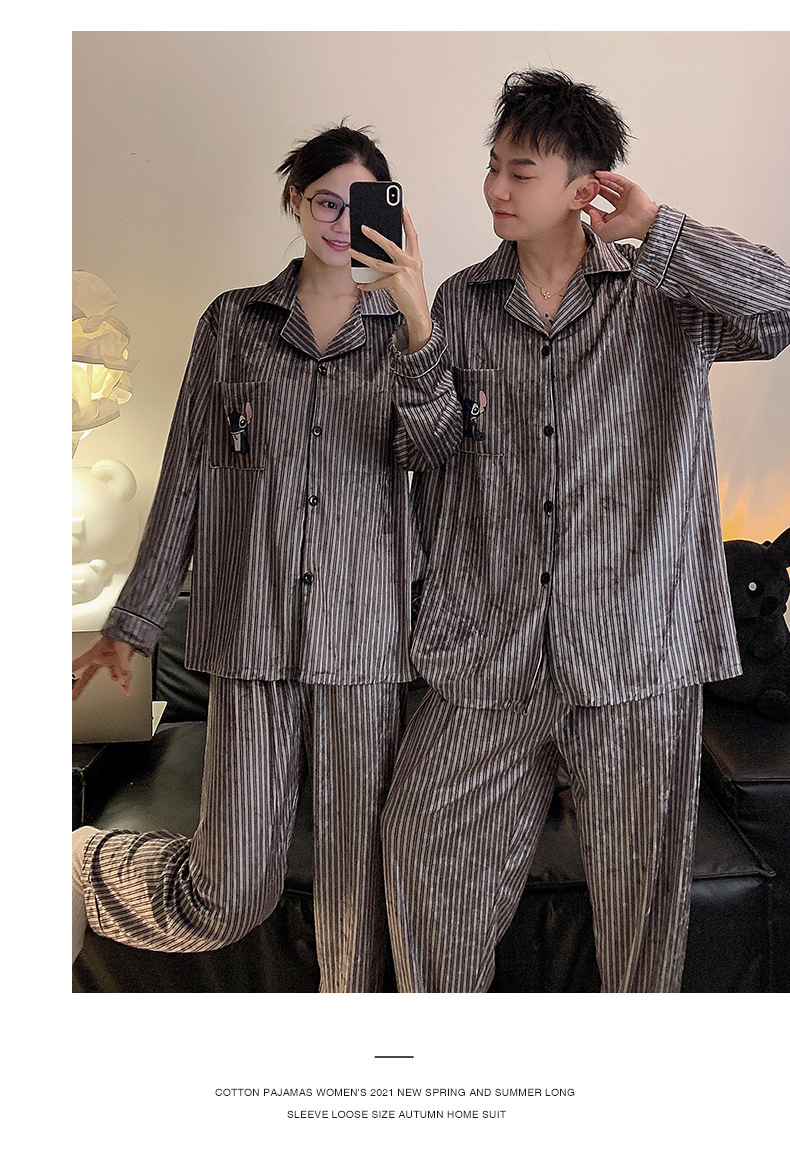 커플 잠옷 봄과 가을 황금 벨벳 긴 소매 여성의 하이 엔드 동백 2023 새로운 남자 겨울 홈 옷스토어 가기