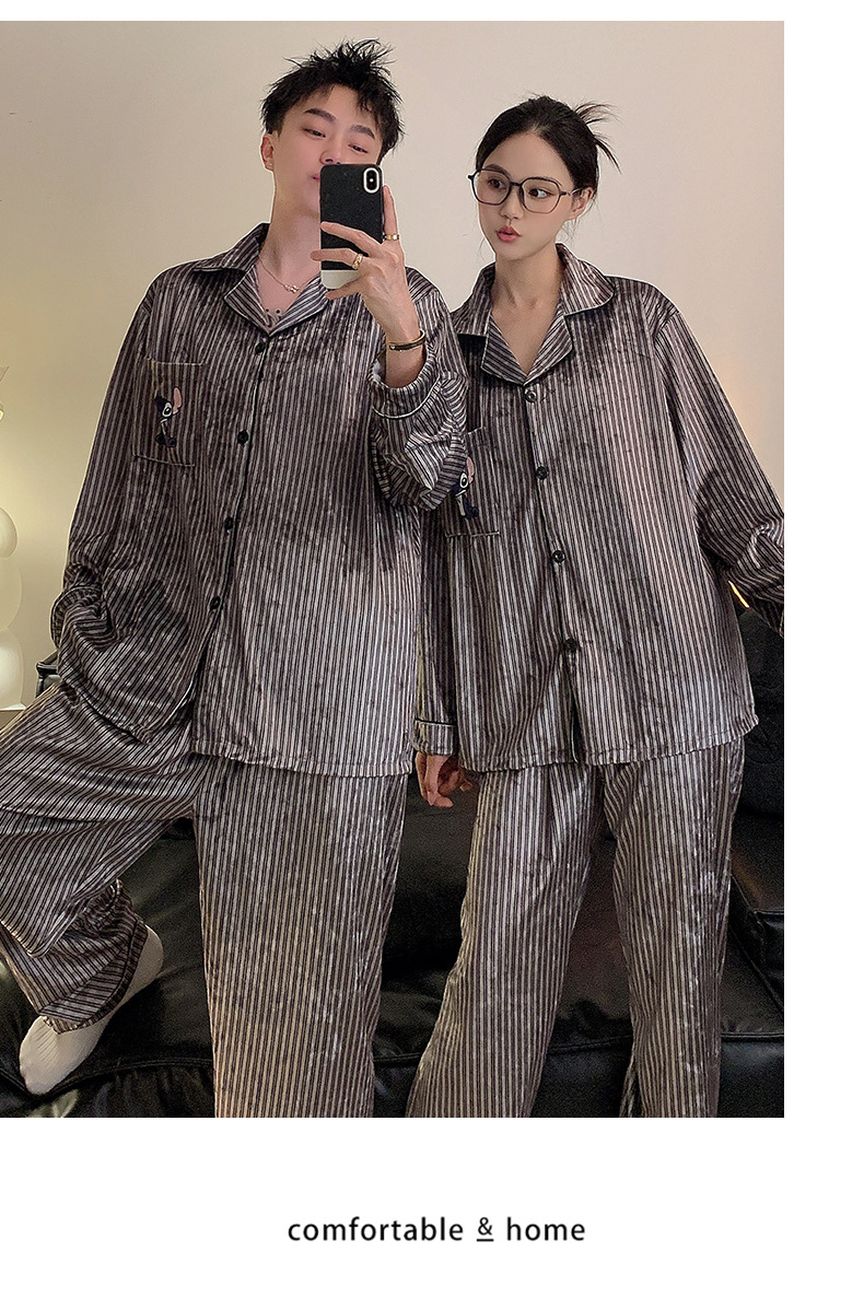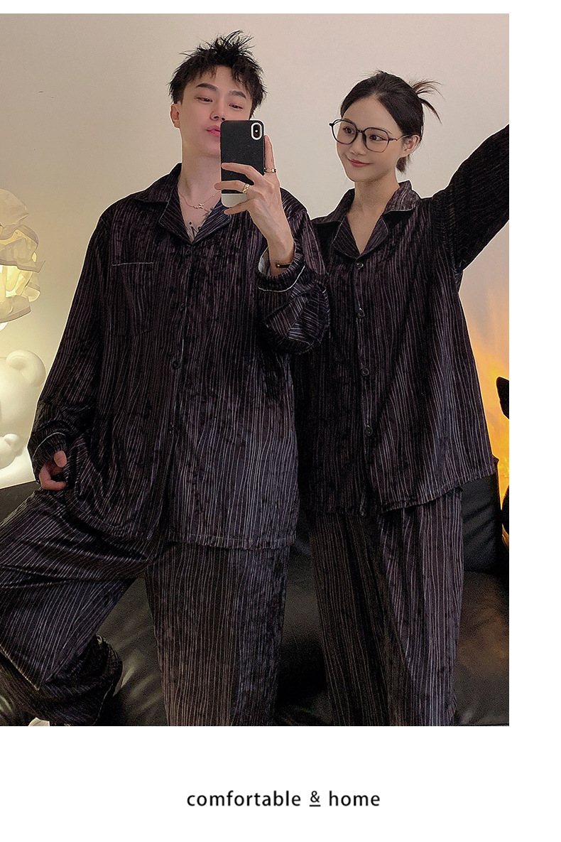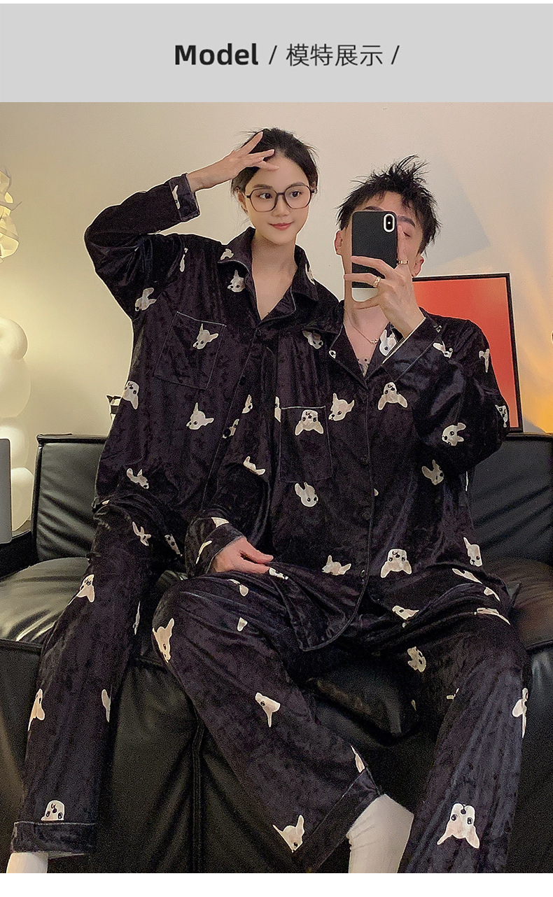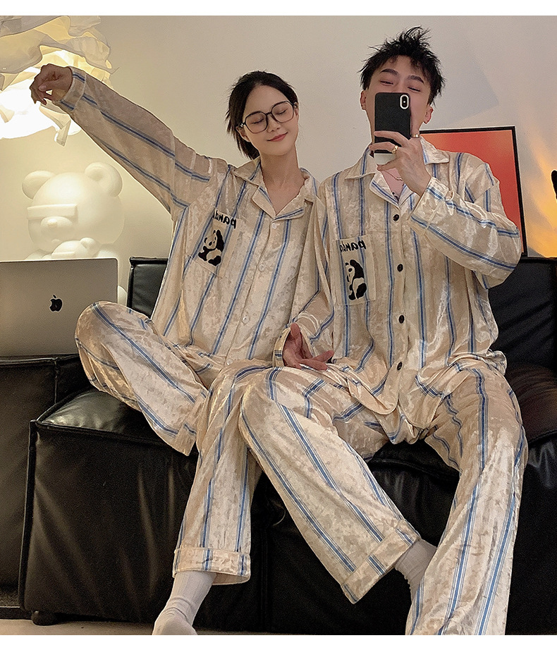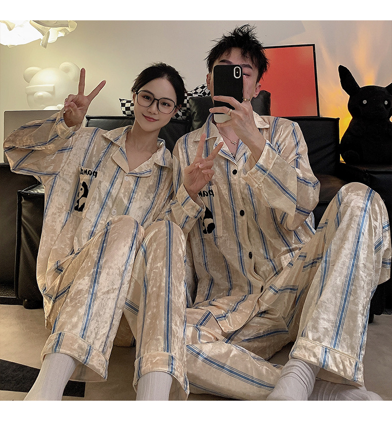 커플 잠옷 봄과 가을 황금 벨벳 긴 소매 여성의 하이 엔드 동백 2023 새로운 남자 겨울 홈 옷스토어 가기
