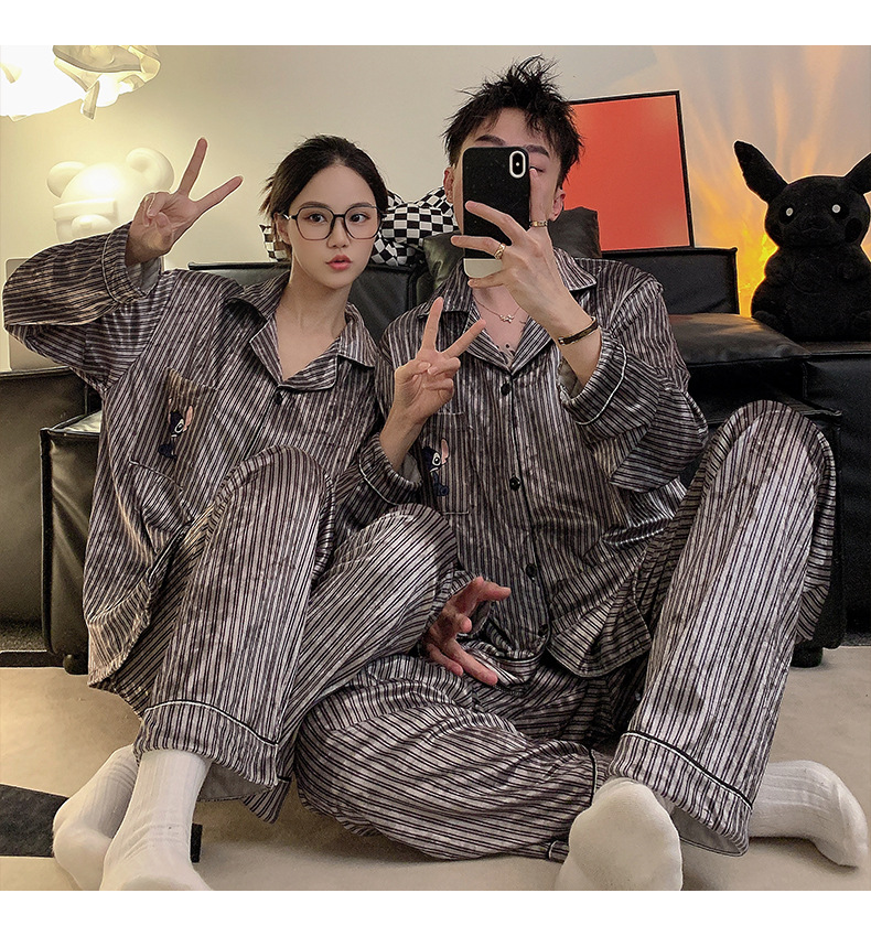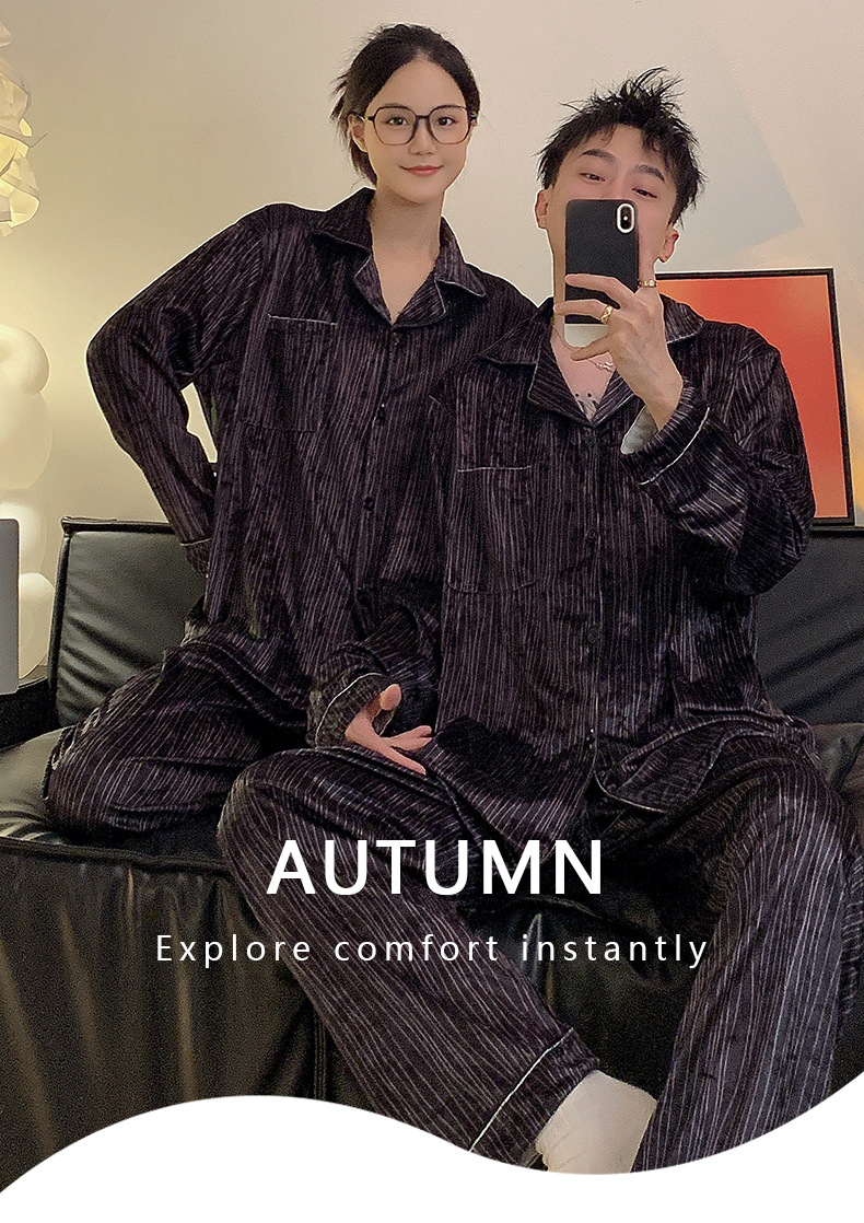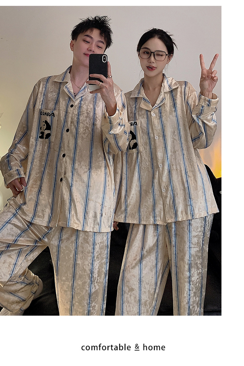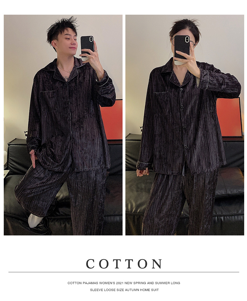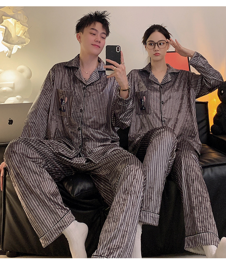 커플 잠옷 봄과 가을 황금 벨벳 긴 소매 여성의 하이 엔드 동백 2023 새로운 남자 겨울 홈 옷스토어 가기