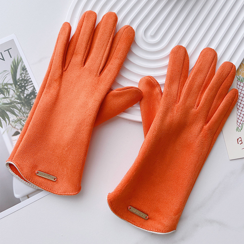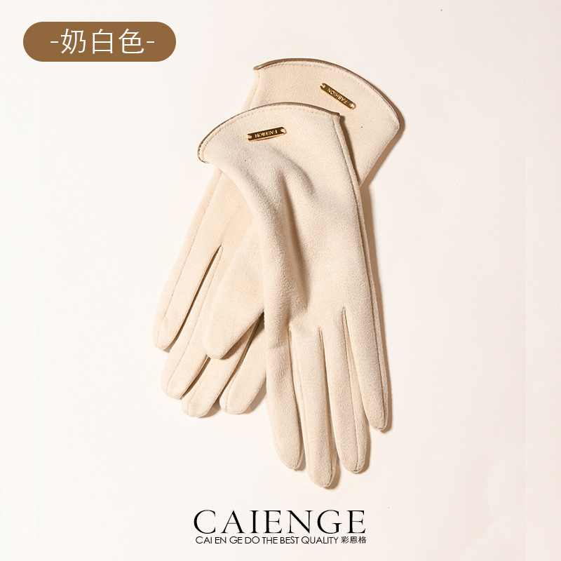 겨울 여성의 귀여운 스웨이드 방풍 운전 장갑 가을과 겨울 기모 따뜻한 사이클링 오픈 손가락 터치 스크린스토어 가기