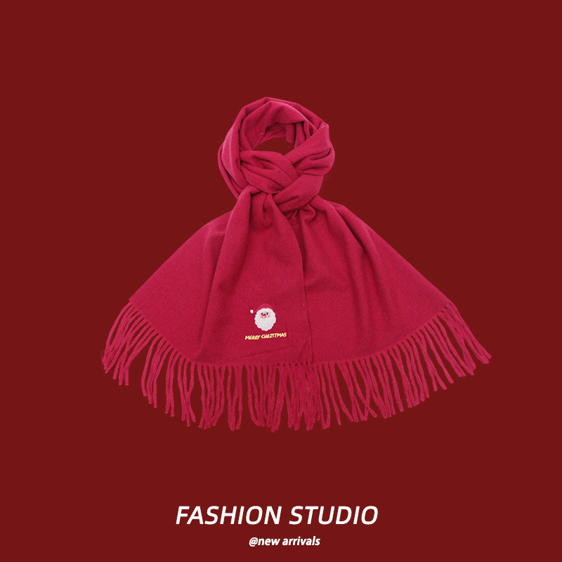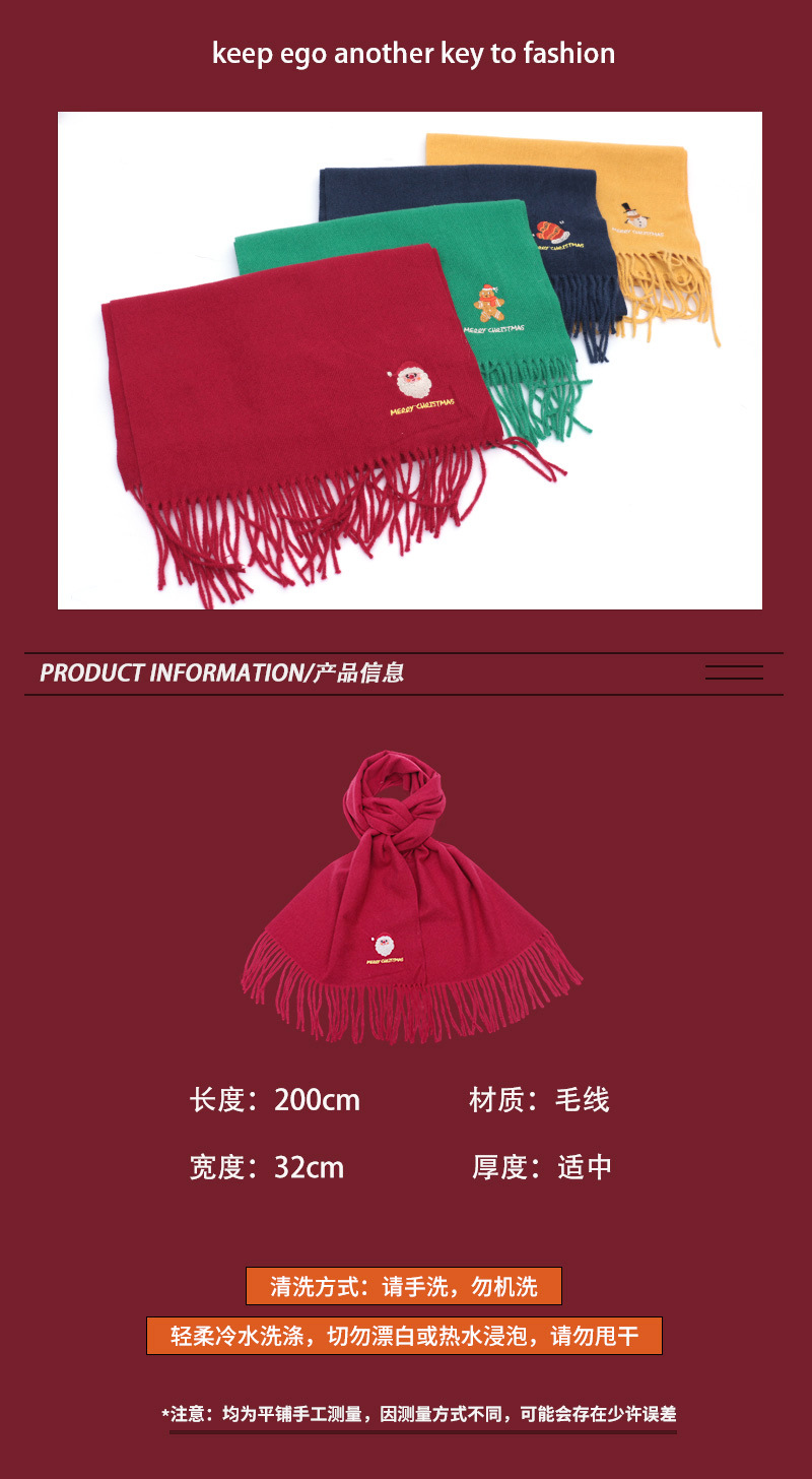 겨울 캐주얼 따뜻한 통기성 스카프 산타 클로스 독특한 자수 솔리드 컬러 올 매치 냉간 목 보호 스카프