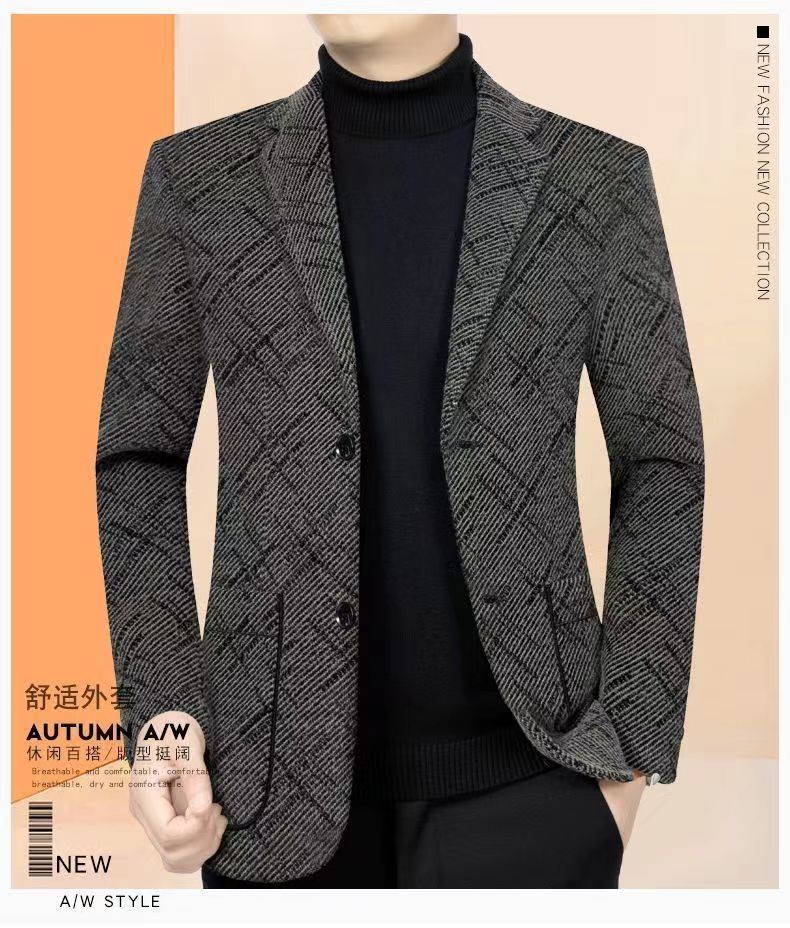 무거운 두꺼운 세트 남성 재킷 가을과 겨울 중년 남성의 새로운 캐주얼 세트 모직 두꺼운 아빠 재킷스토어 가기
