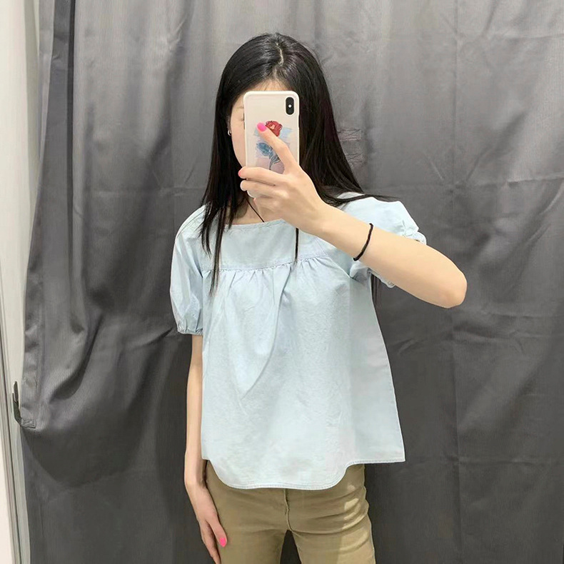 Youjia Tongxing 2023 여름 새로운 아동복 소녀 캐주얼 Pleated Washed Puff 슬리브 셔츠 탑 S458081스토어 가기