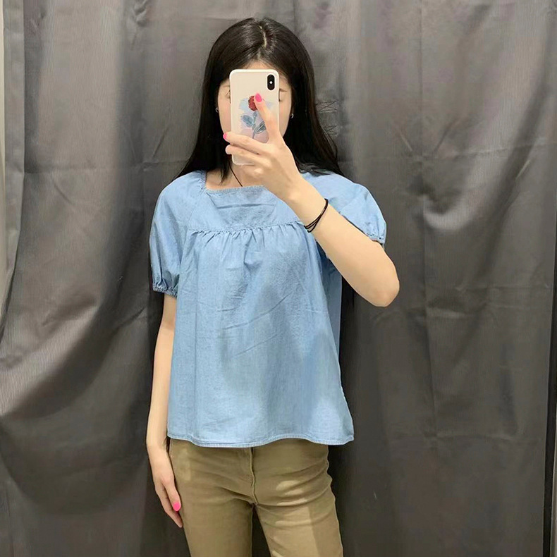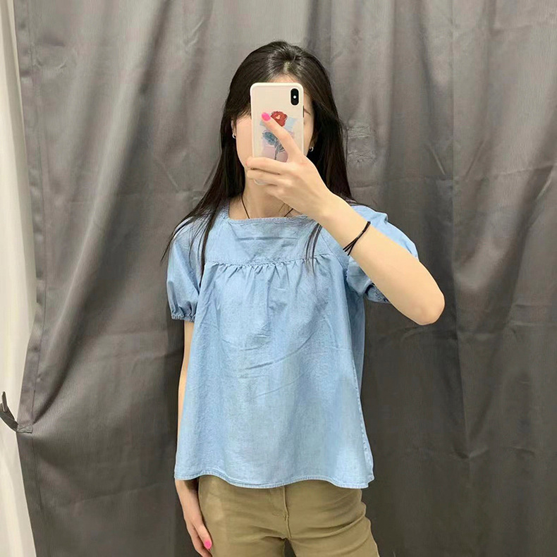 Youjia Tongxing 2023 여름 새로운 아동복 소녀 캐주얼 Pleated Washed Puff 슬리브 셔츠 탑 S458081