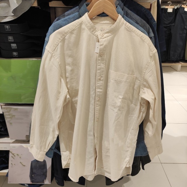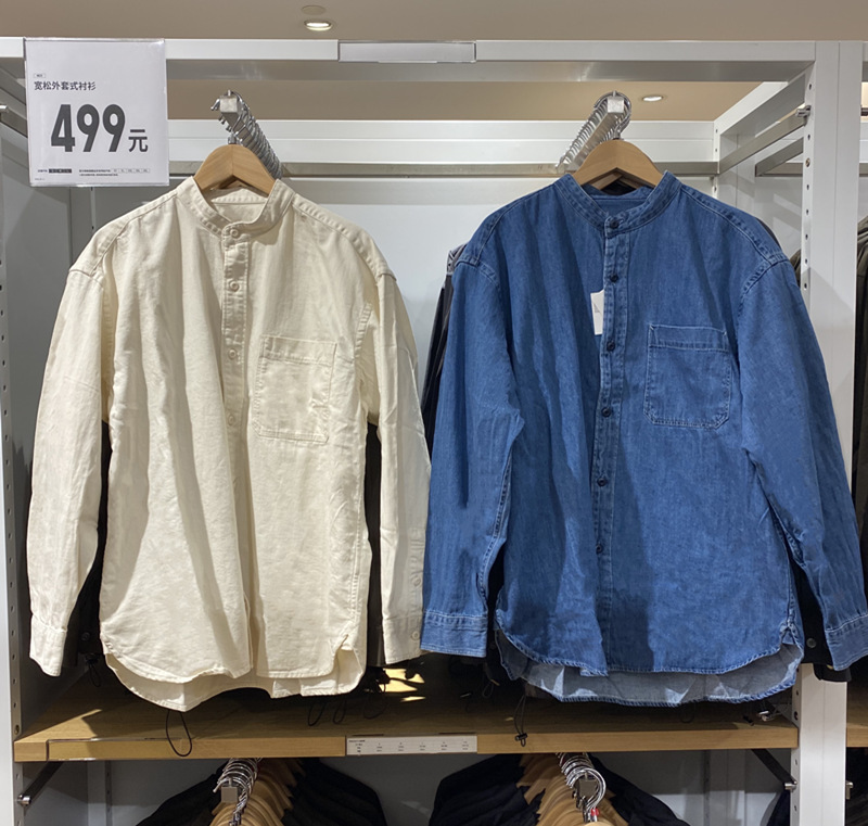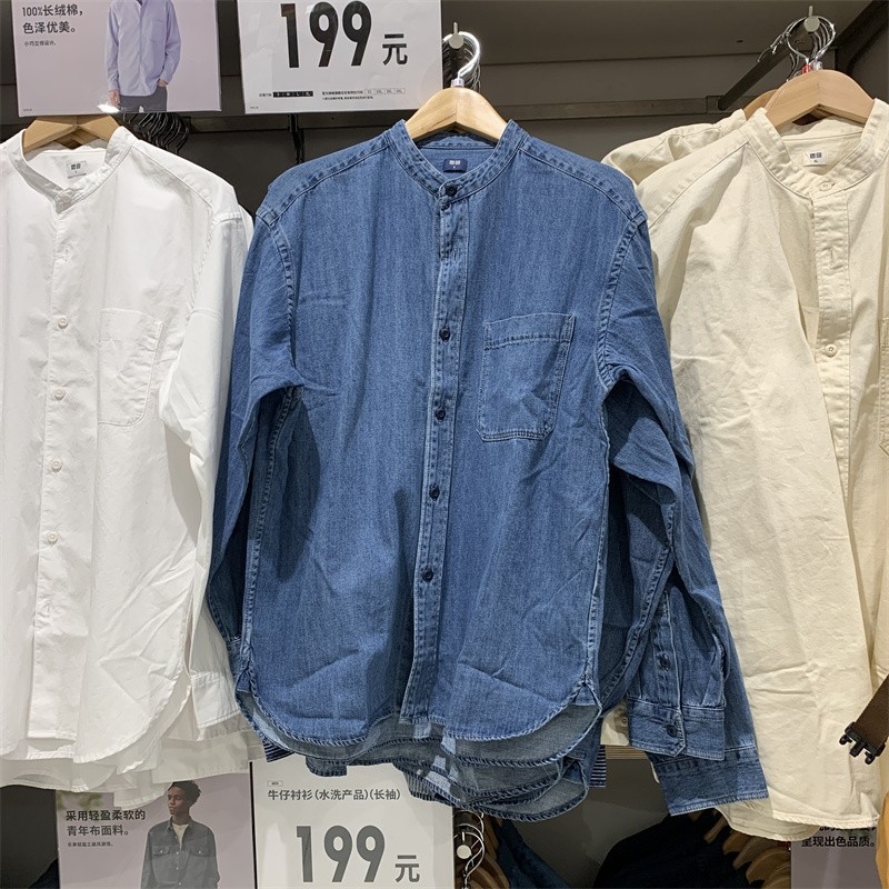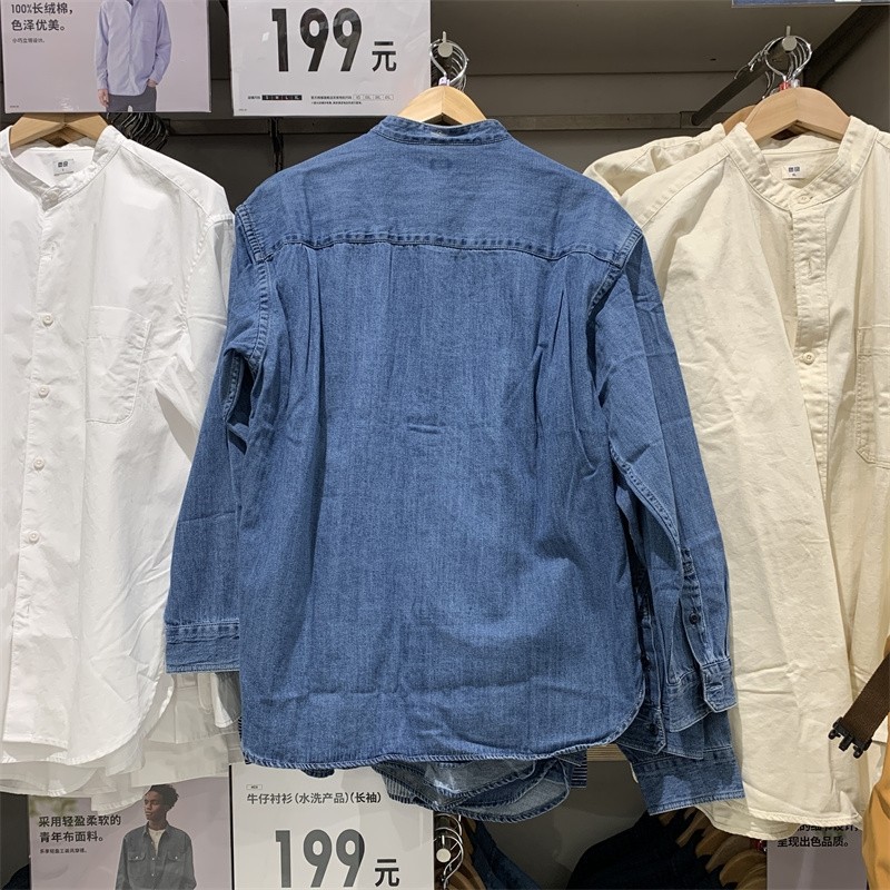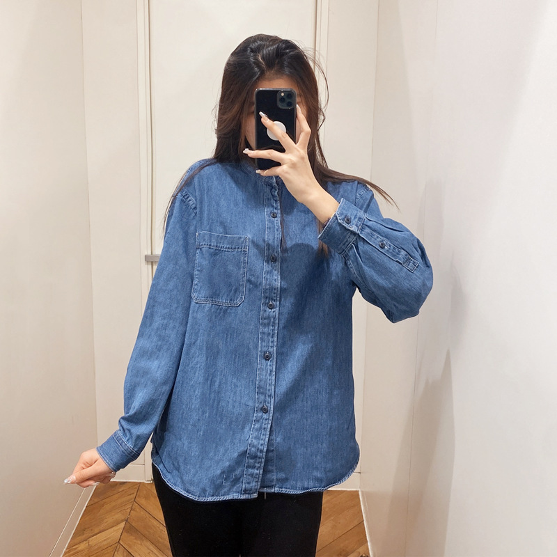 피팅 룸 2022 봄 새로운 여성 데님 느슨한 칼라 셔츠 세척 제품 긴 소매 탑 444639
