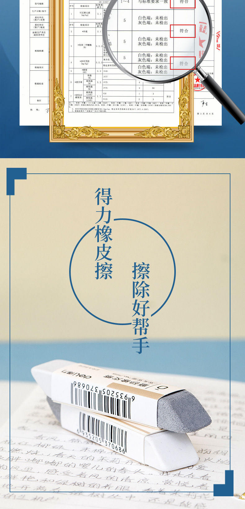 델리 71115 프로스트 지우개 더블 헤드 이중 목적 지우기 볼펜 중립 펜 학생 지우개