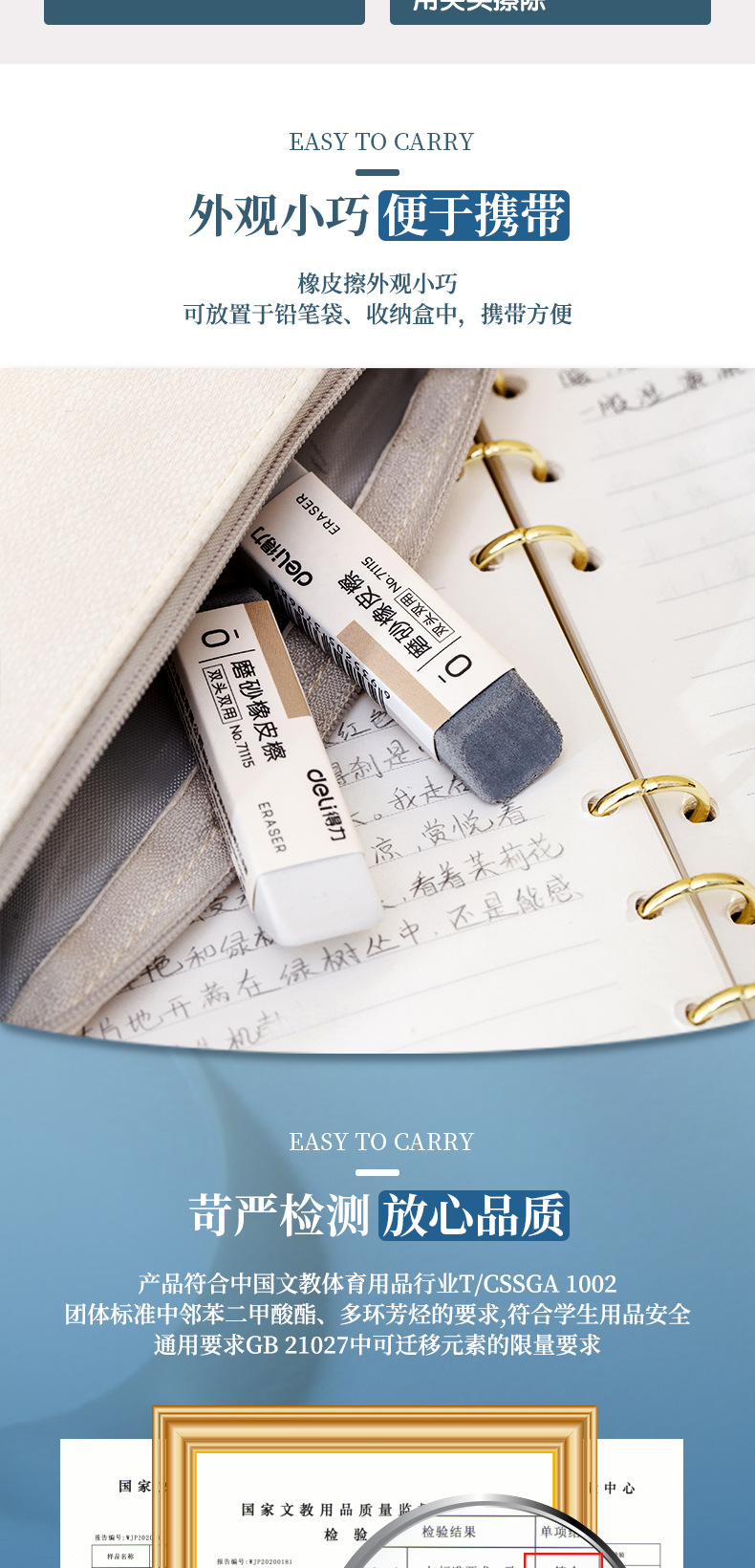 델리 71115 프로스트 지우개 더블 헤드 이중 목적 지우기 볼펜 중립 펜 학생 지우개스토어 가기