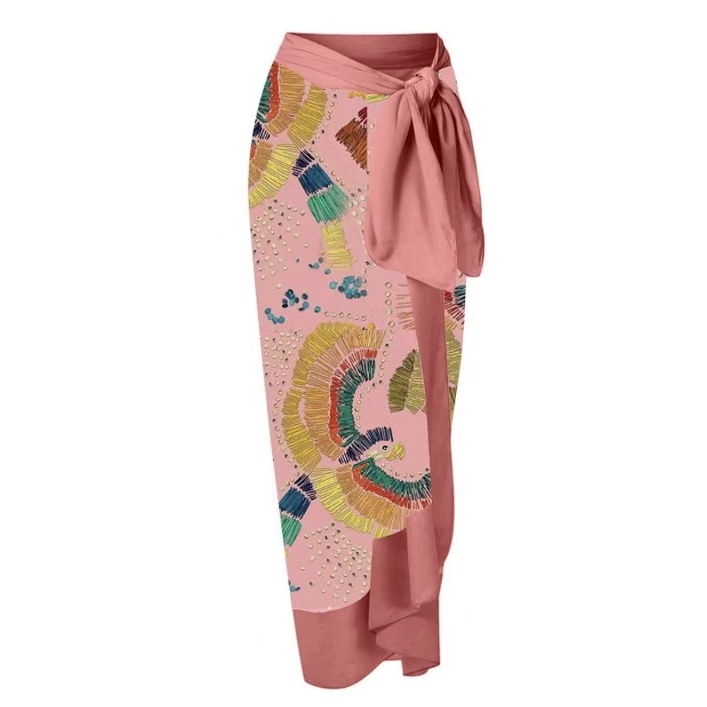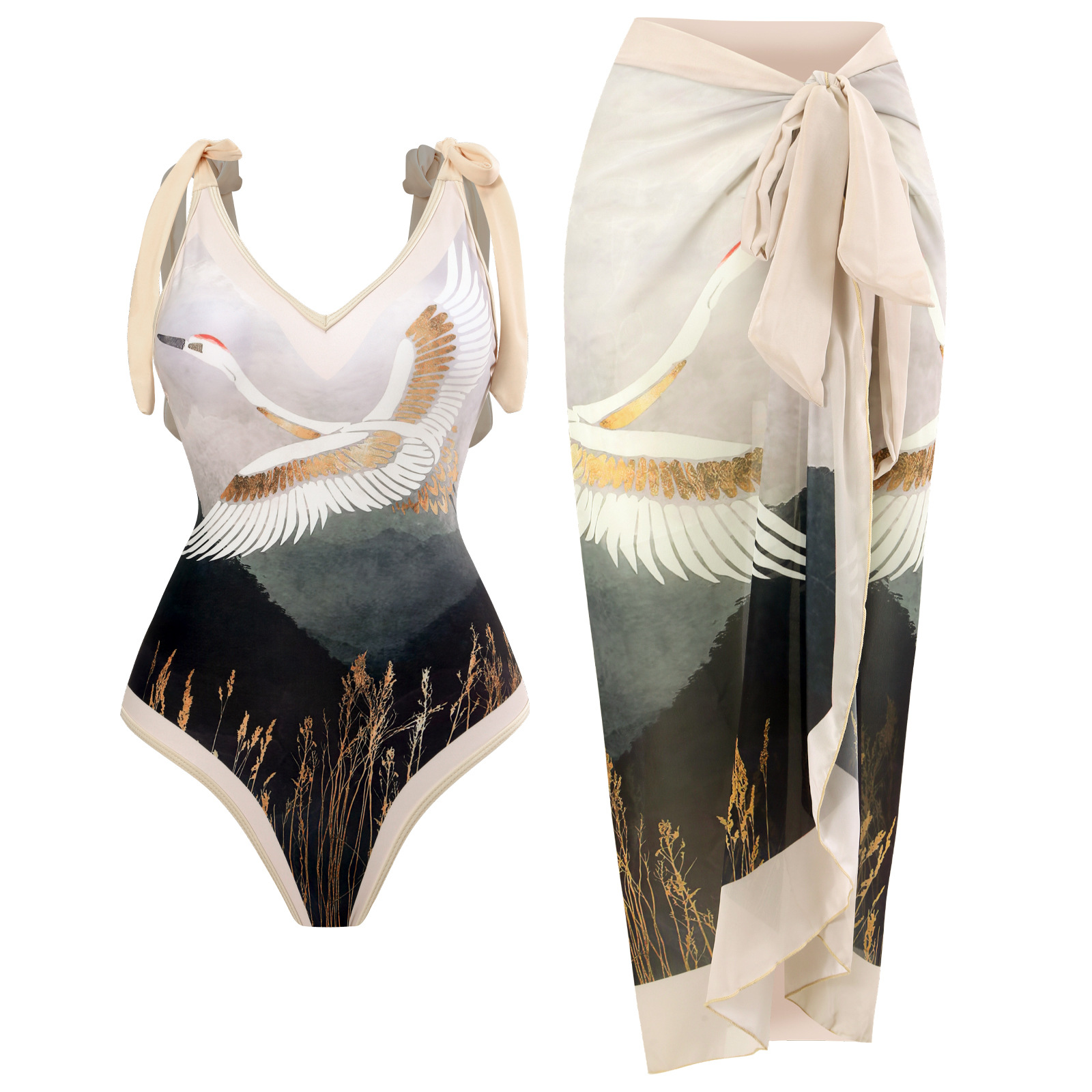 [유럽과 미국의 해변 리조트 스타일 수영복 여성] 원피스 멀티 컬러 태양 보호 거즈 스커트 세트 아마존 온천 수영 세트
