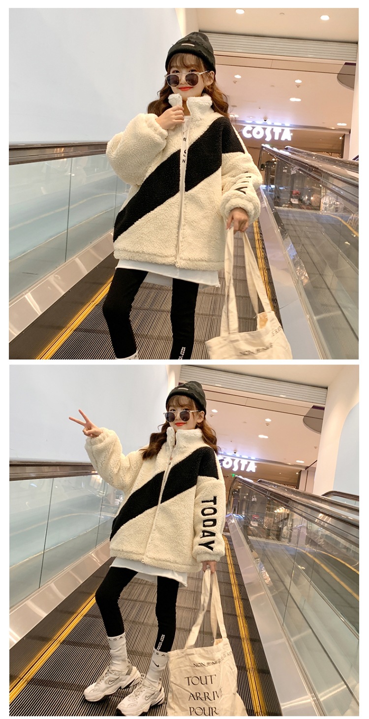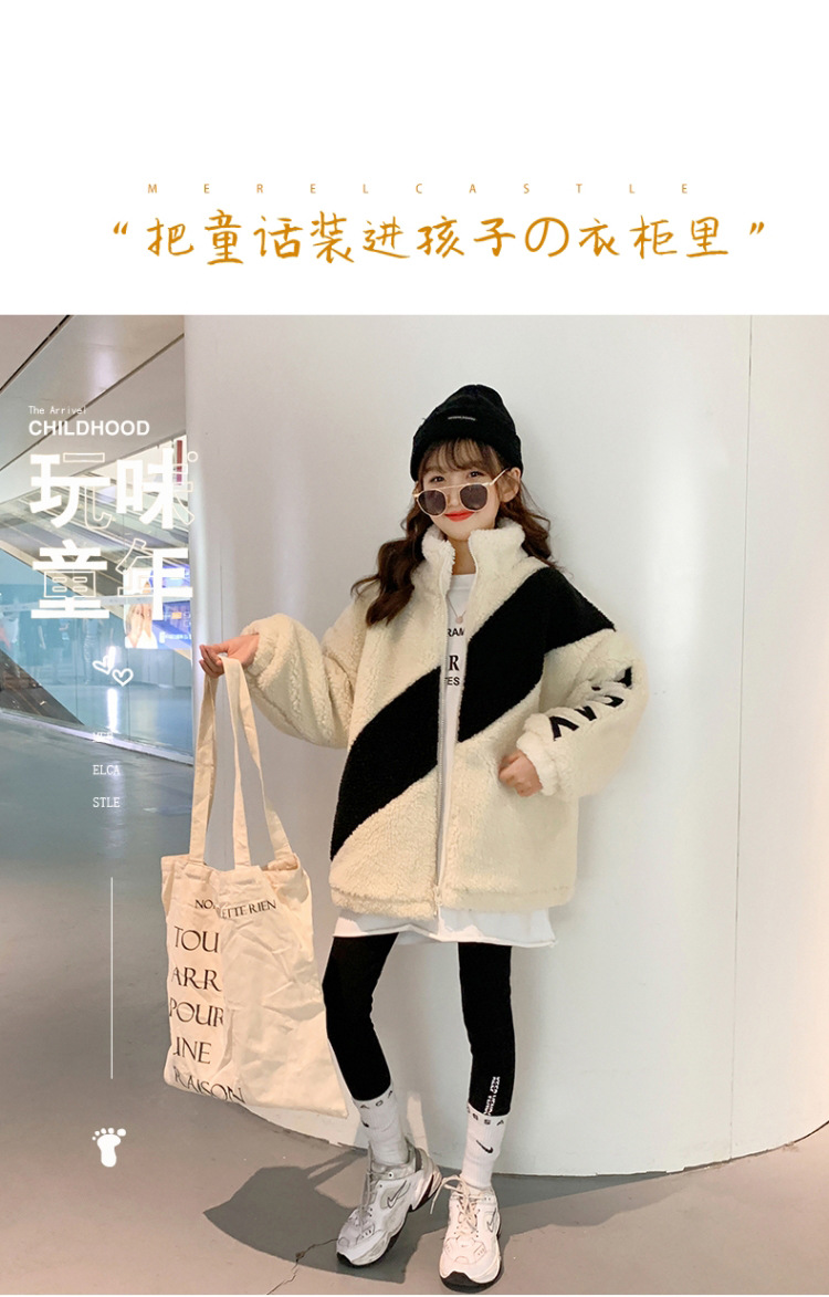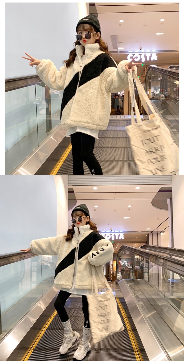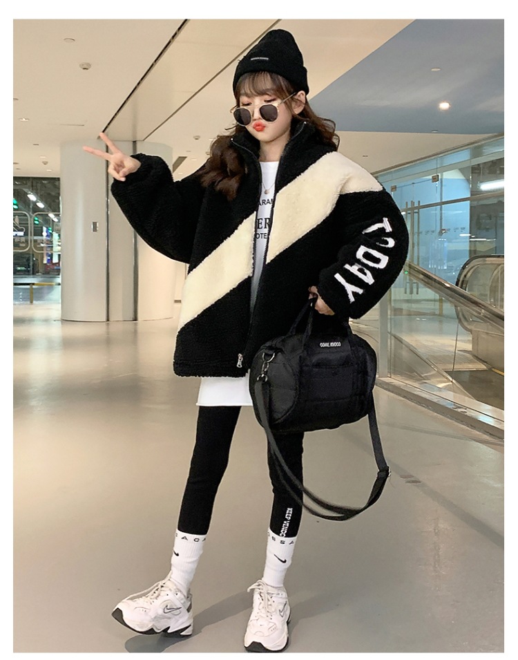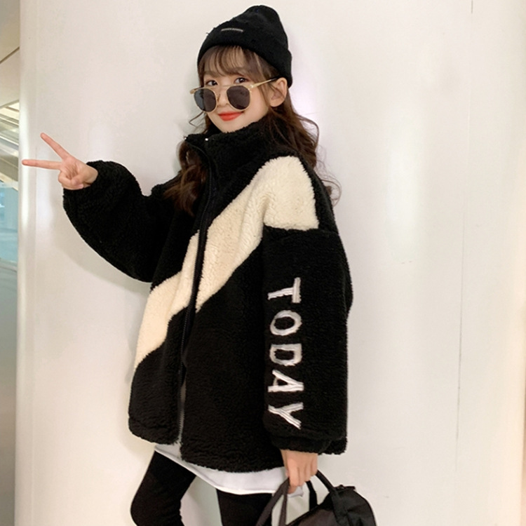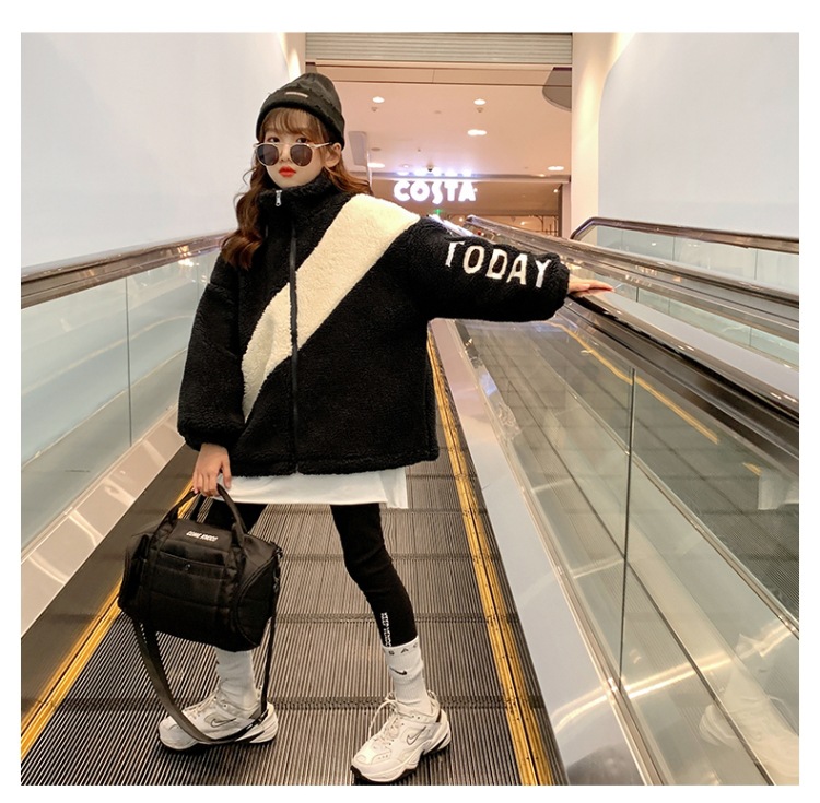 겨울 소녀 코트 지퍼 2023 새로운 서양식 중형 및 대형 어린이 두꺼운 양모 탑 어린이 따뜻한 스웨터스토어 가기