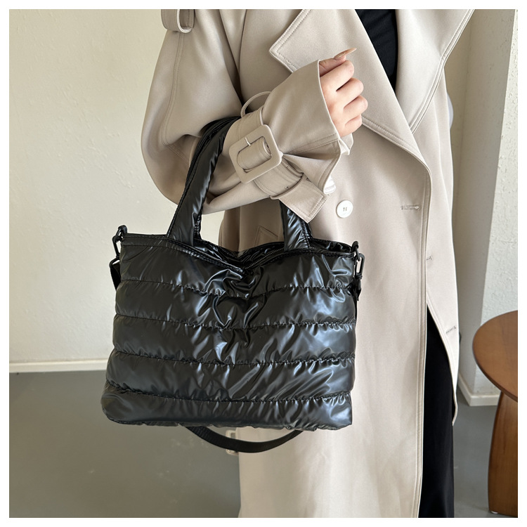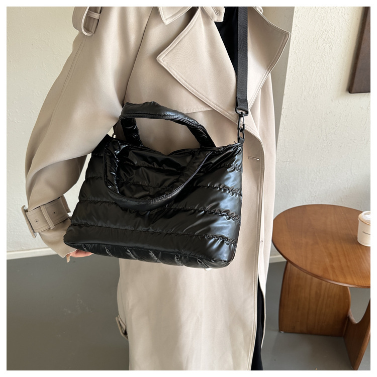 면 패딩 재킷 여성용 가방 2023 가을 및 겨울 새로운 도착 자수 공간 면화 어깨 핸드백 유행 밝은 얼굴 여성용 크로스 바디 백