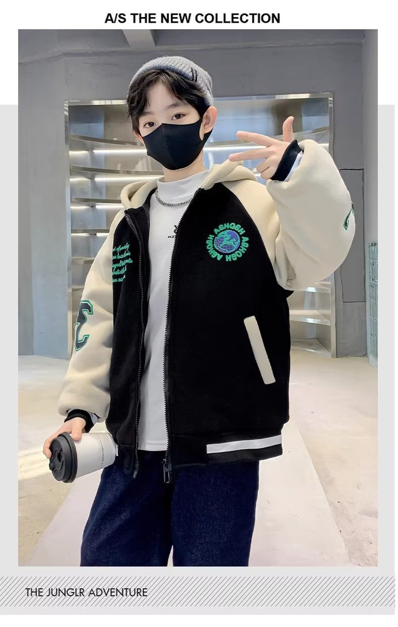 두꺼운 소년 겨울 재킷 2023 새로운 가을, 겨울 플러스 벨벳 중대형 어린이 소년 야구 재킷 아동 의류