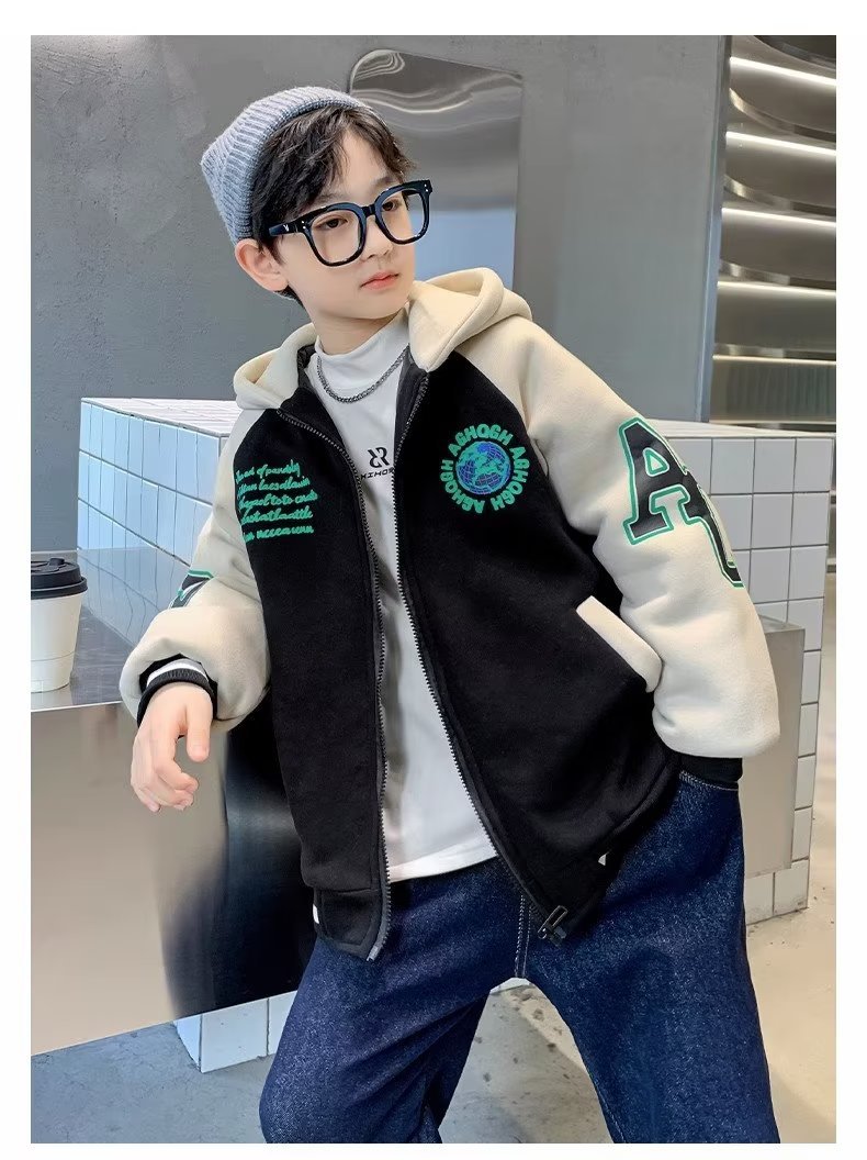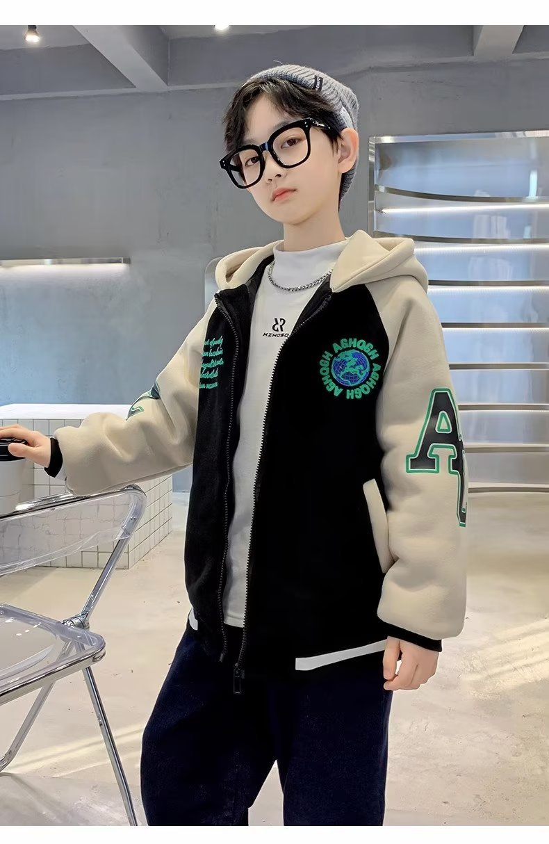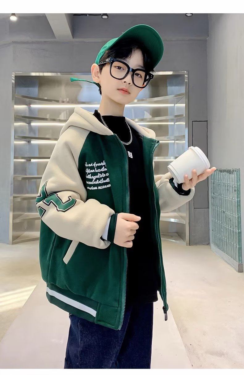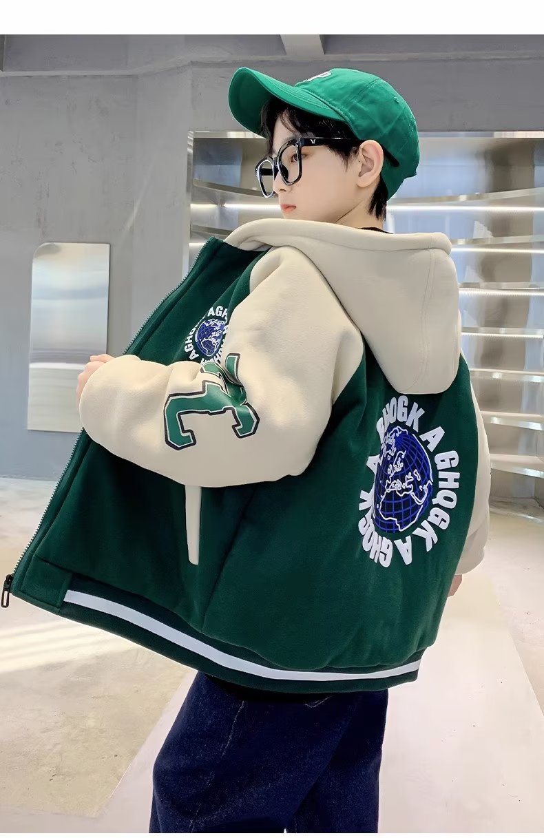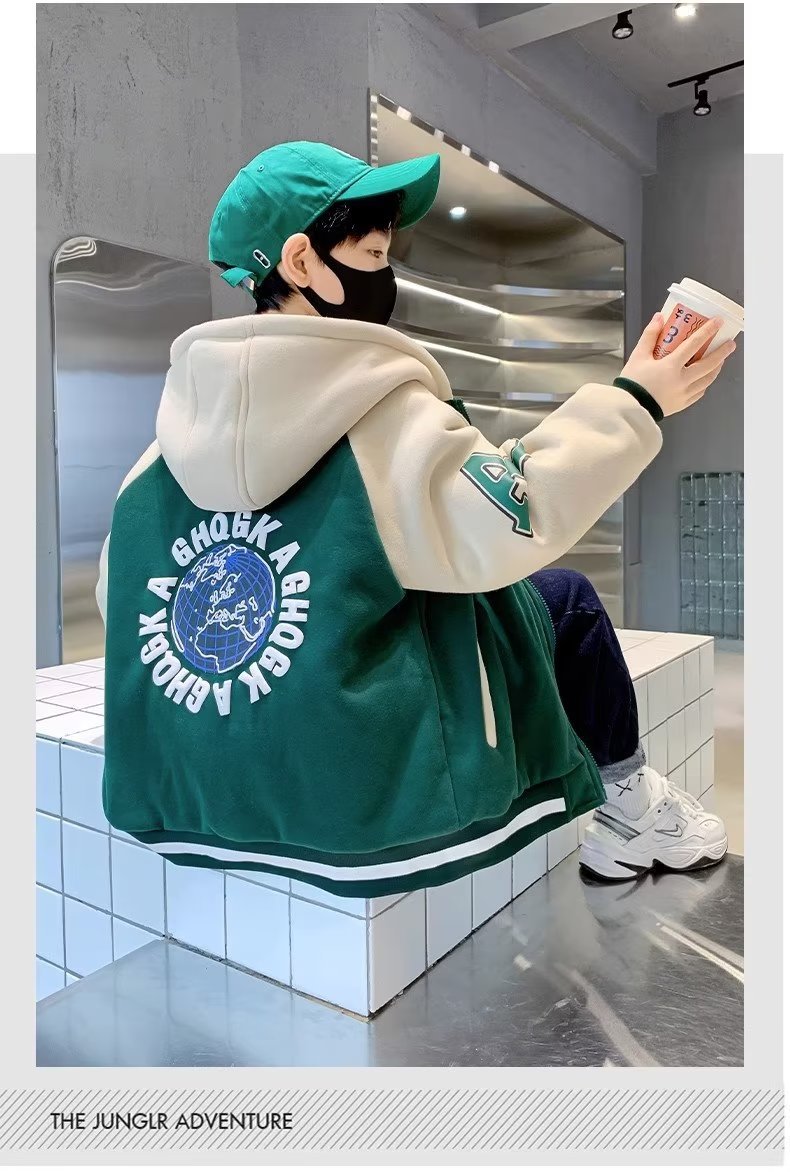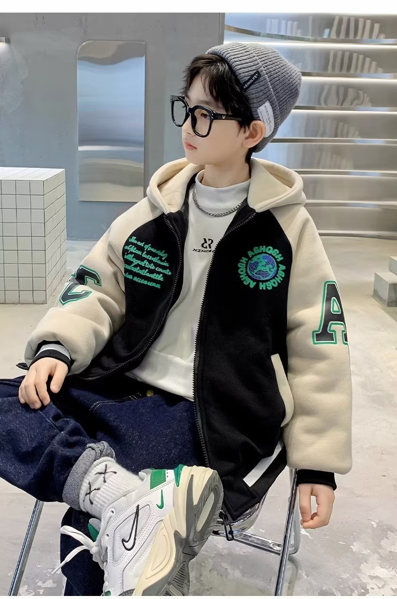 두꺼운 소년 겨울 재킷 2023 새로운 가을, 겨울 플러스 벨벳 중대형 어린이 소년 야구 재킷 아동 의류스토어 가기
