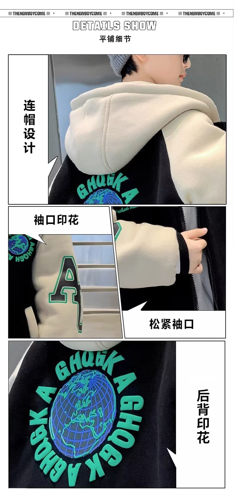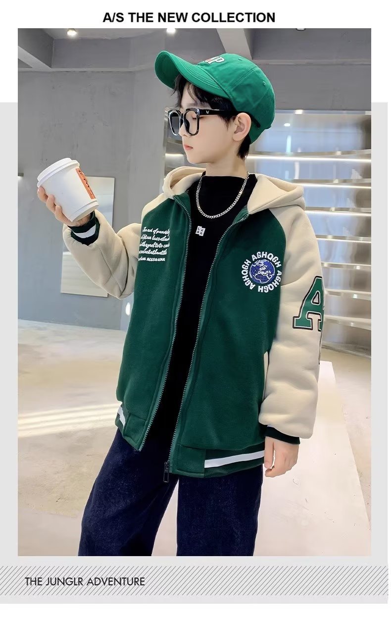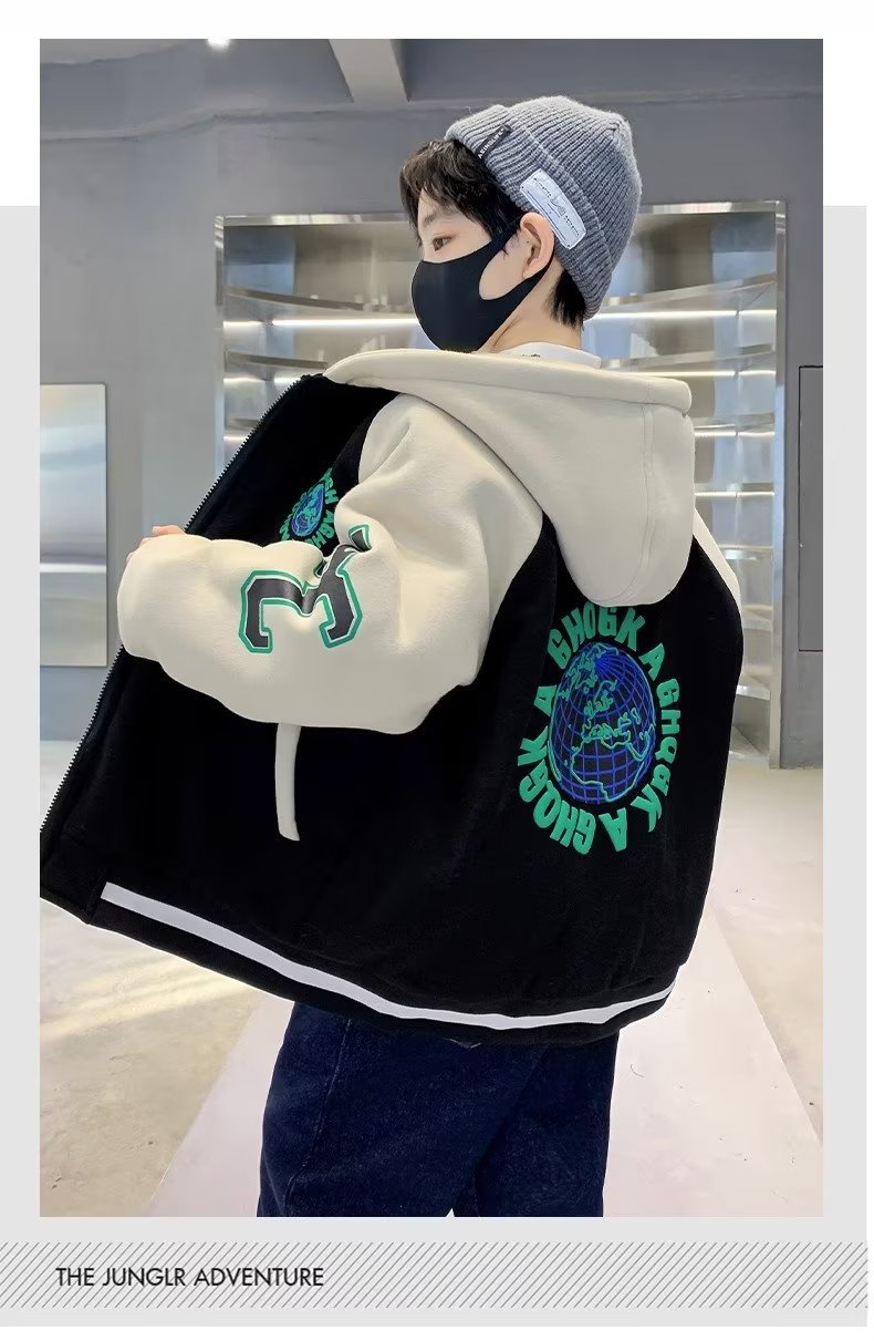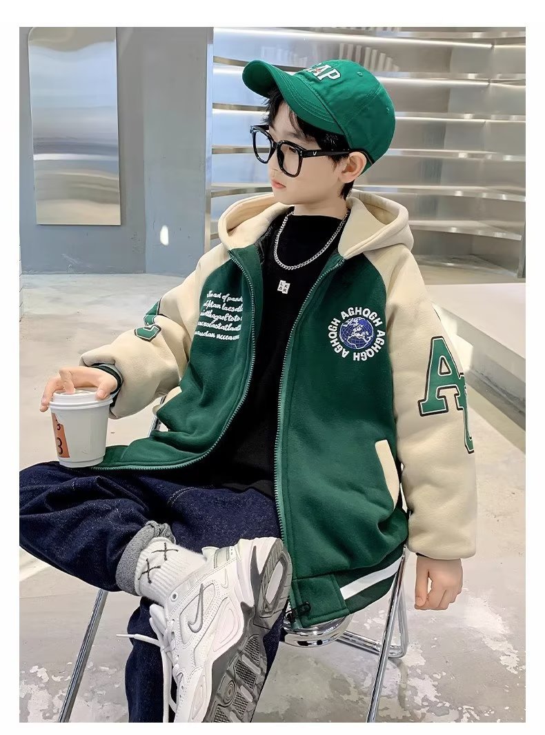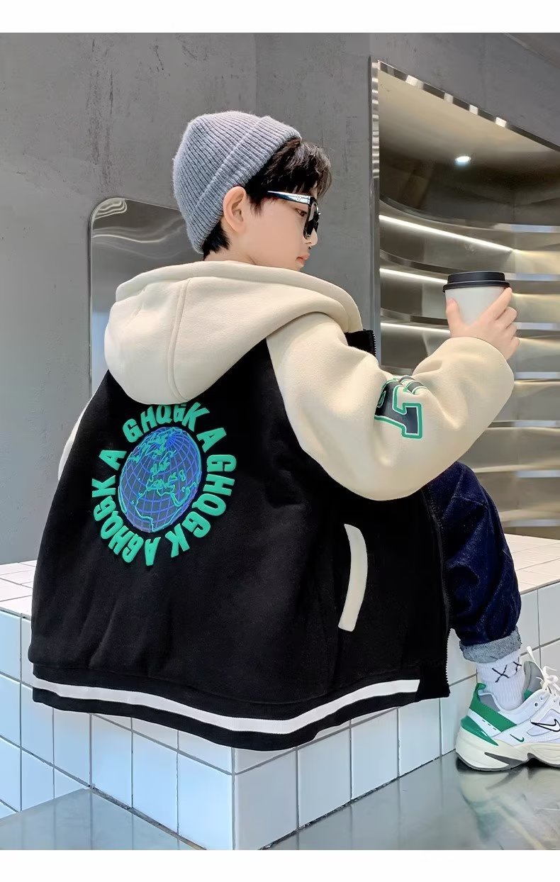 두꺼운 소년 겨울 재킷 2023 새로운 가을, 겨울 플러스 벨벳 중대형 어린이 소년 야구 재킷 아동 의류스토어 가기