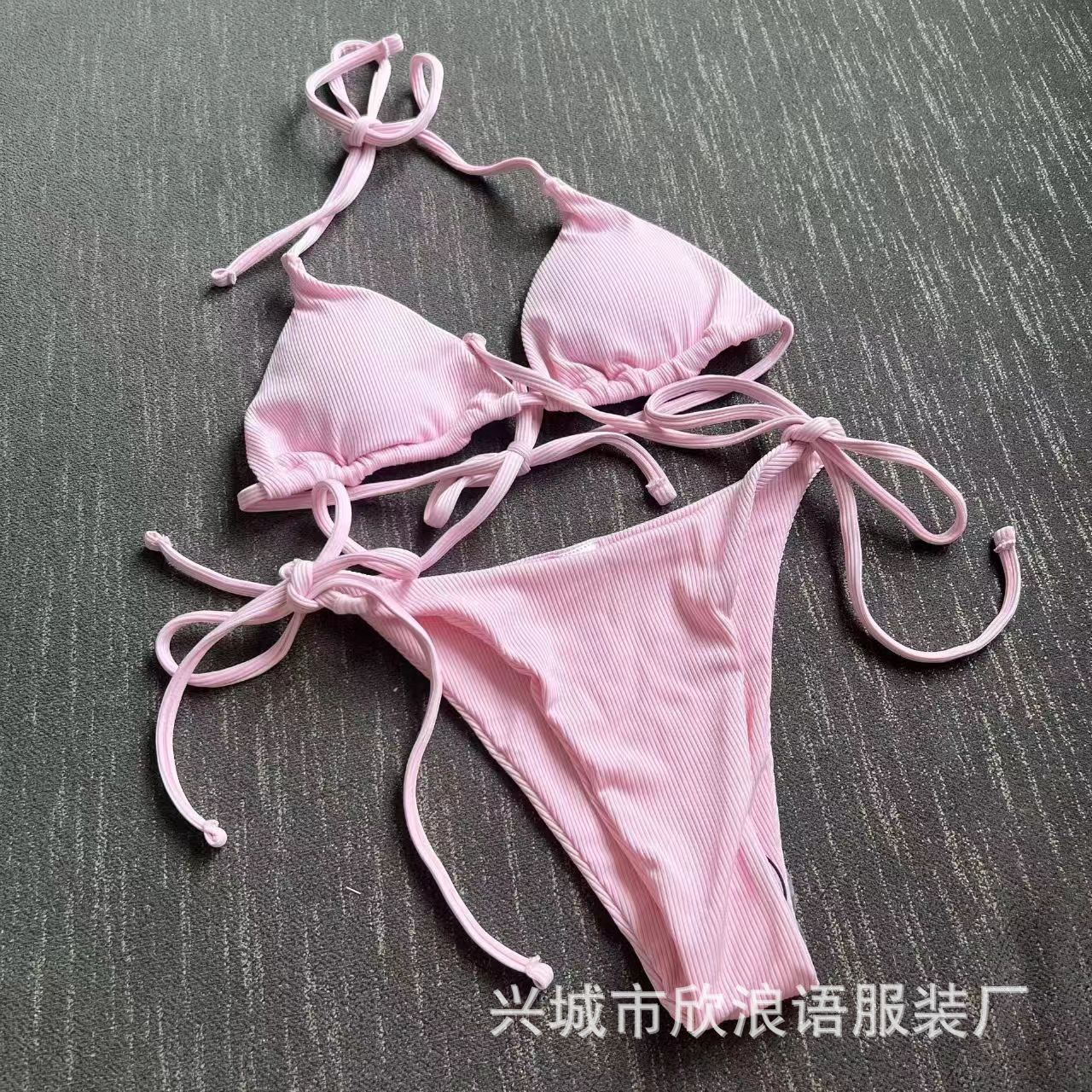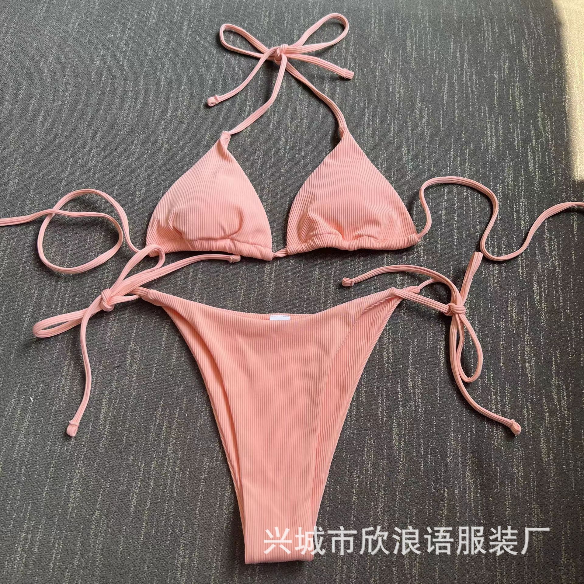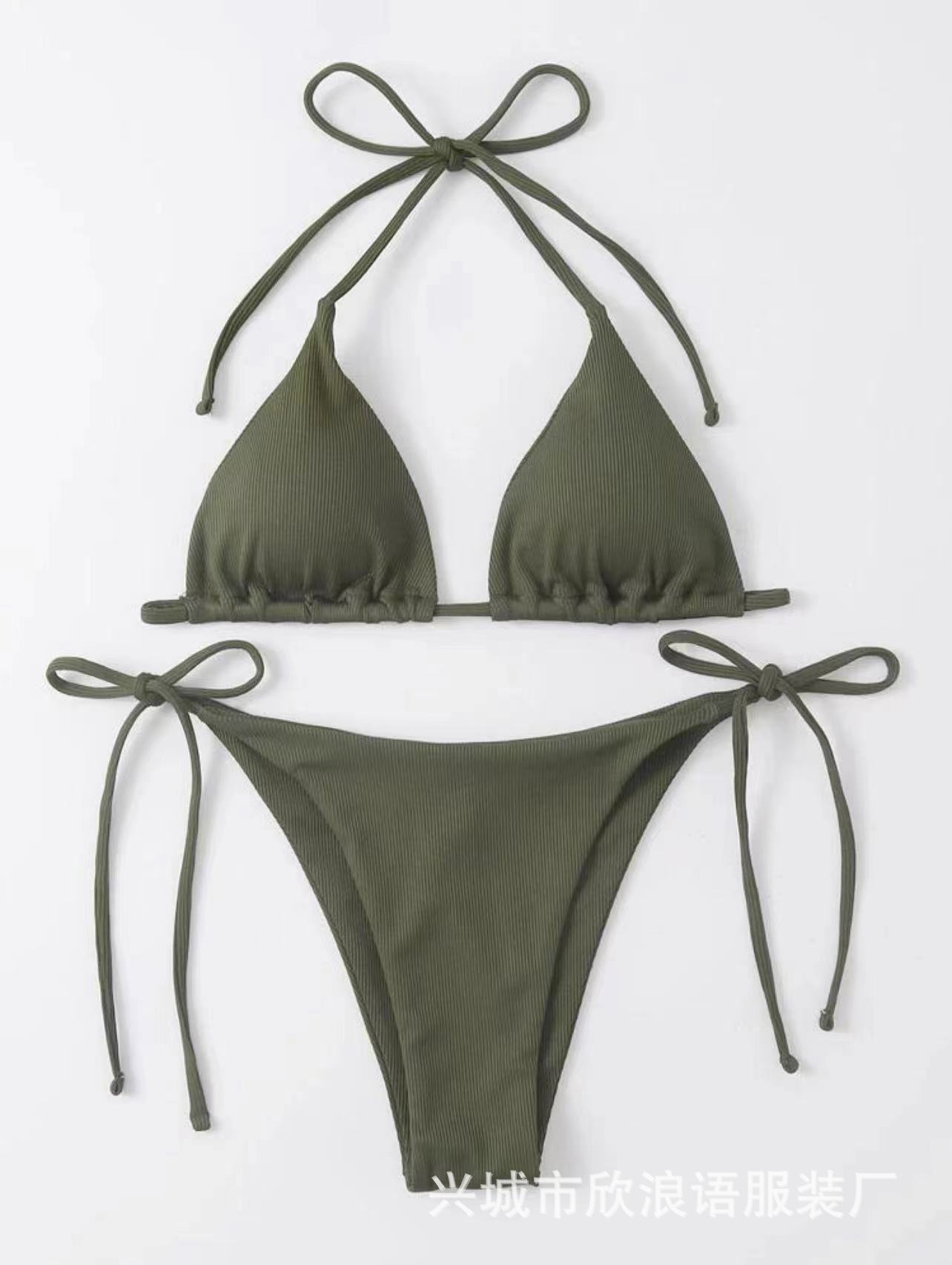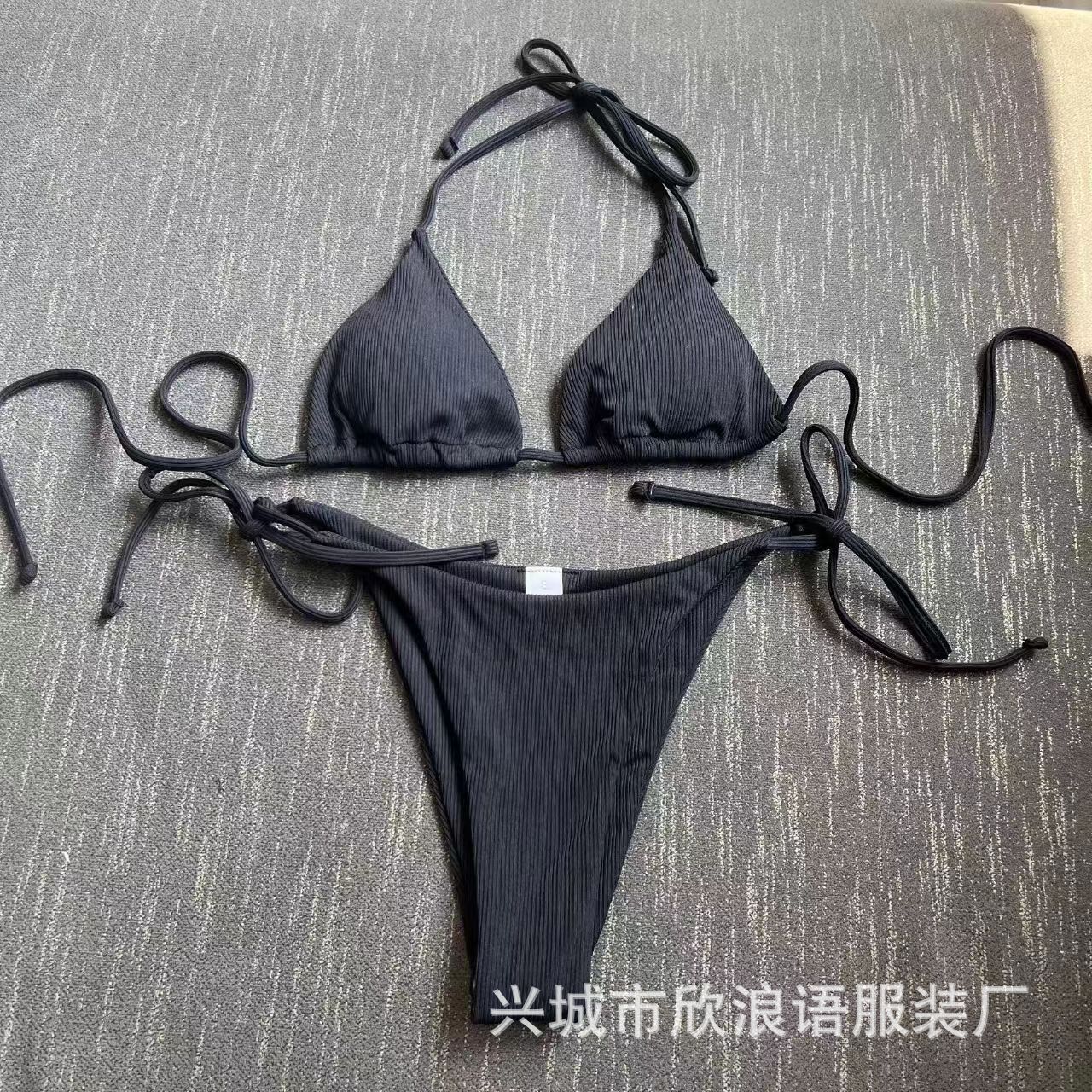 2025 유럽과 미국의 국경 새로운 분할 수영복 졸라 매는 끈 스트랩 스트라이프 수영복 대외 무역 3점 비키니 비키니