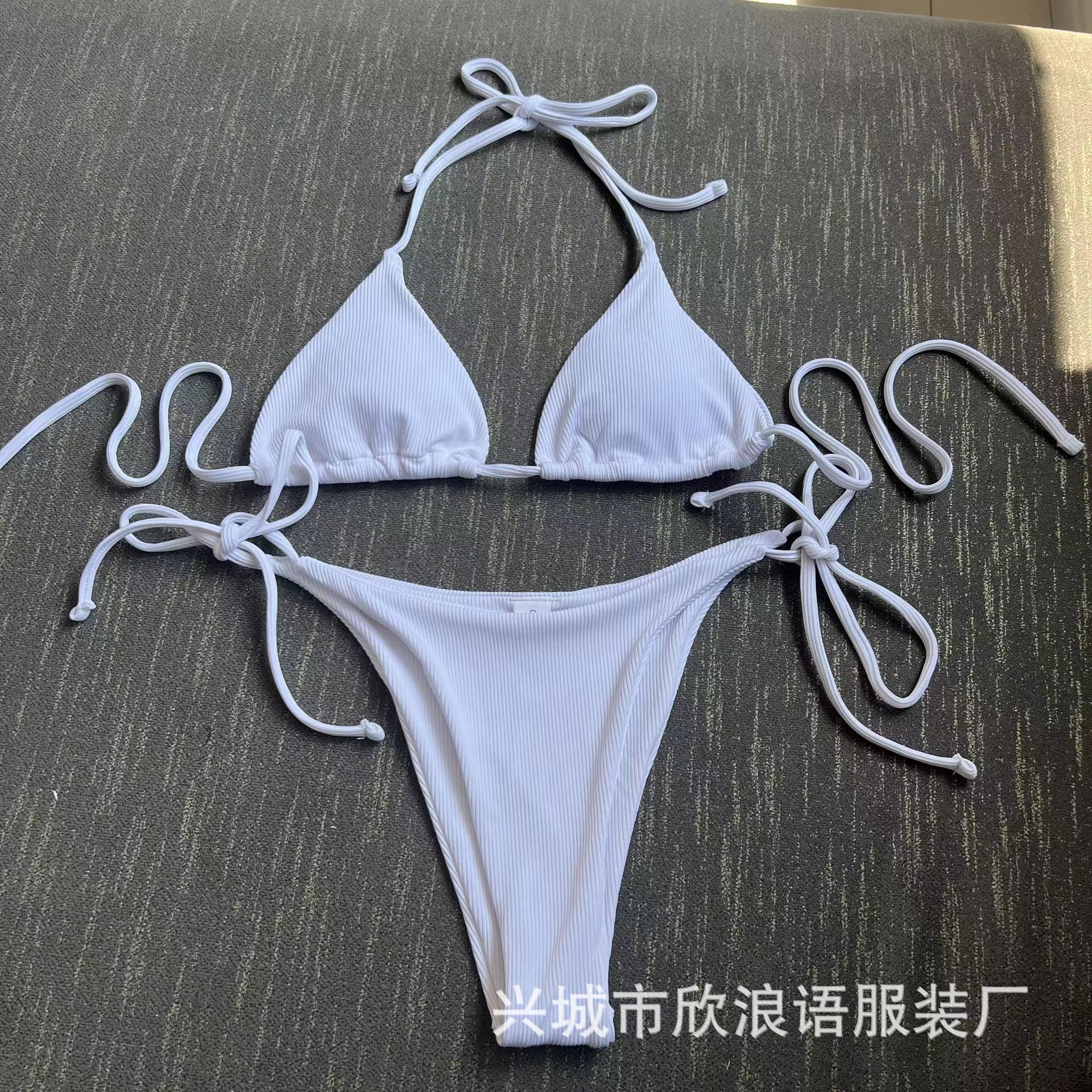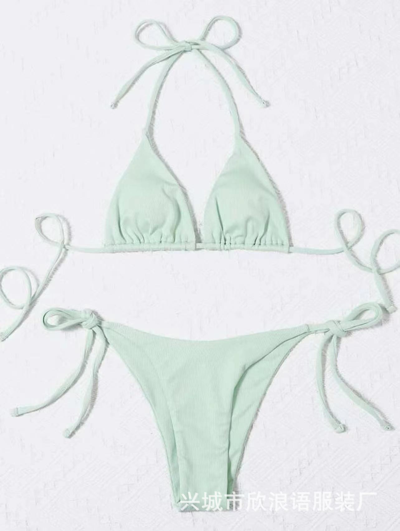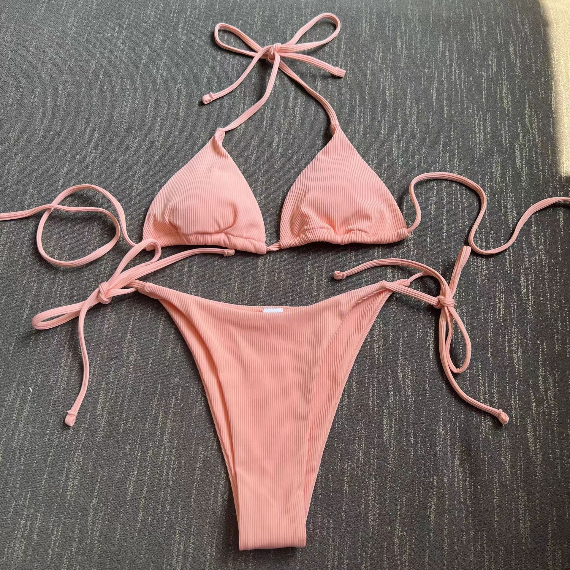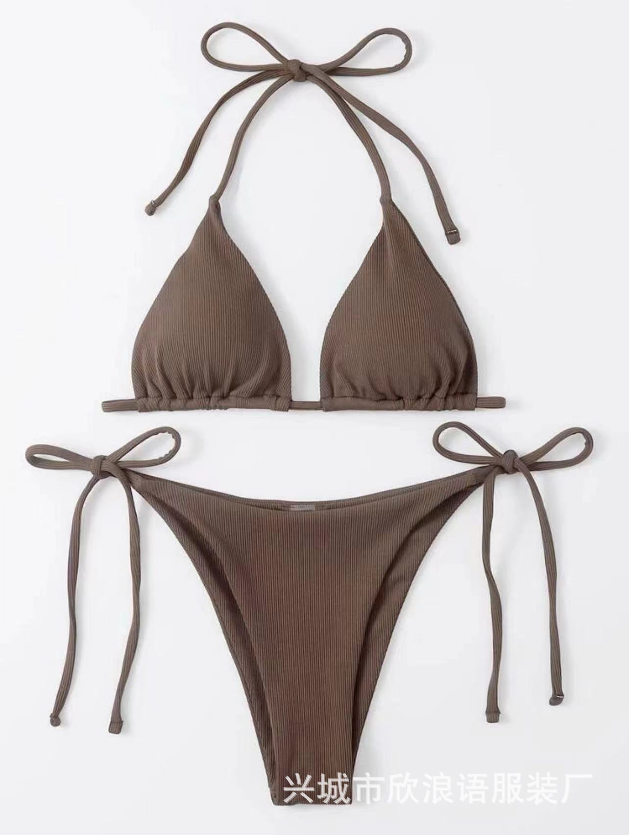 2025 유럽과 미국의 국경 새로운 분할 수영복 졸라 매는 끈 스트랩 스트라이프 수영복 대외 무역 3점 비키니 비키니