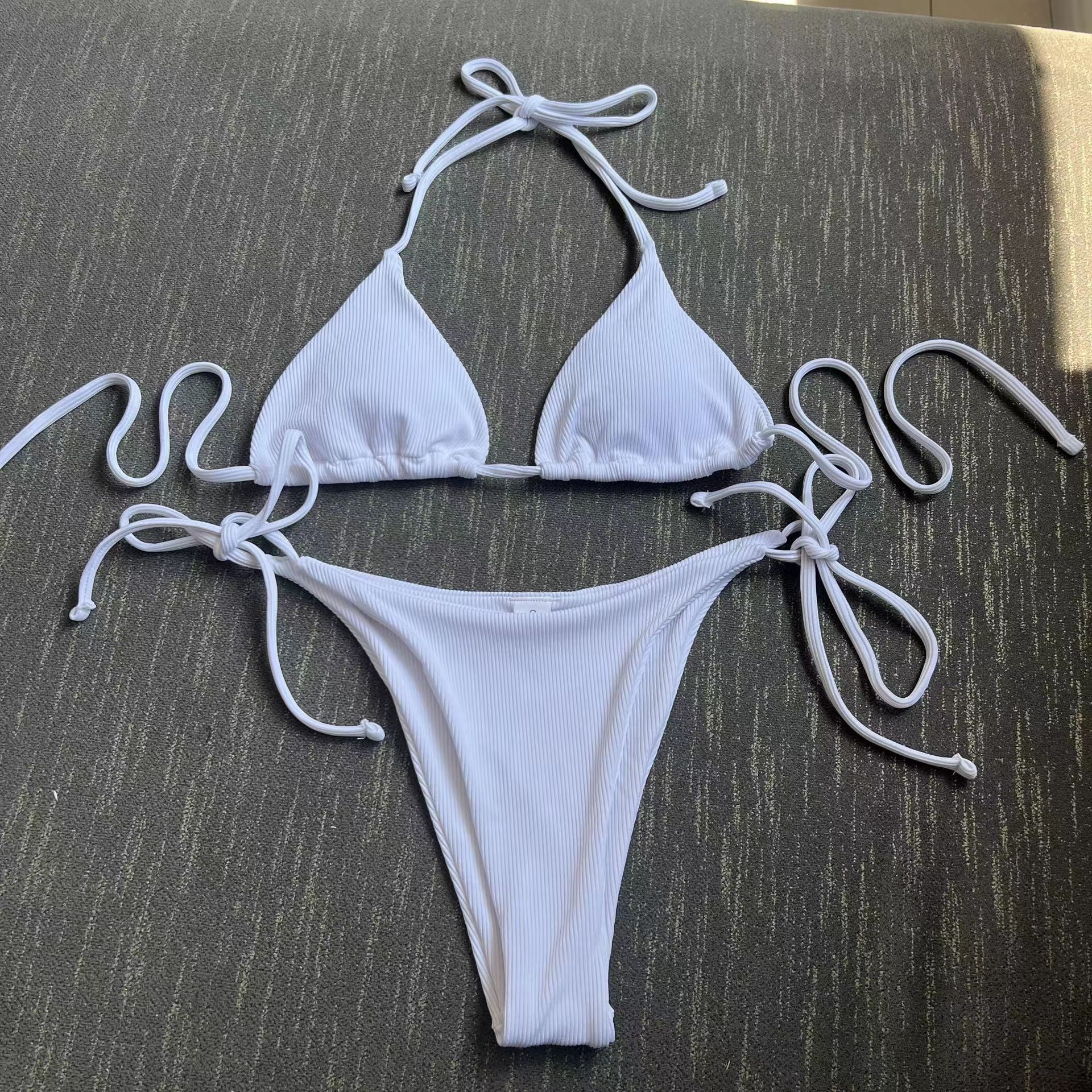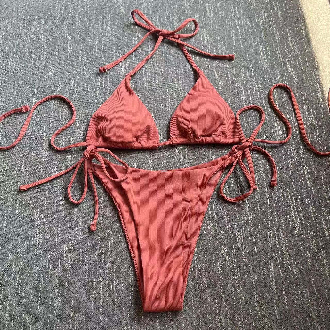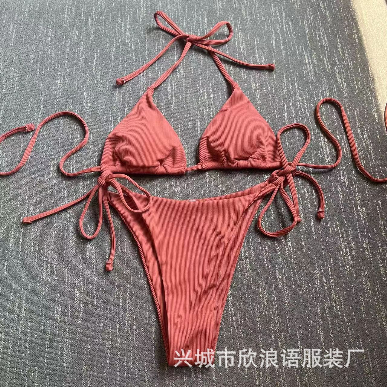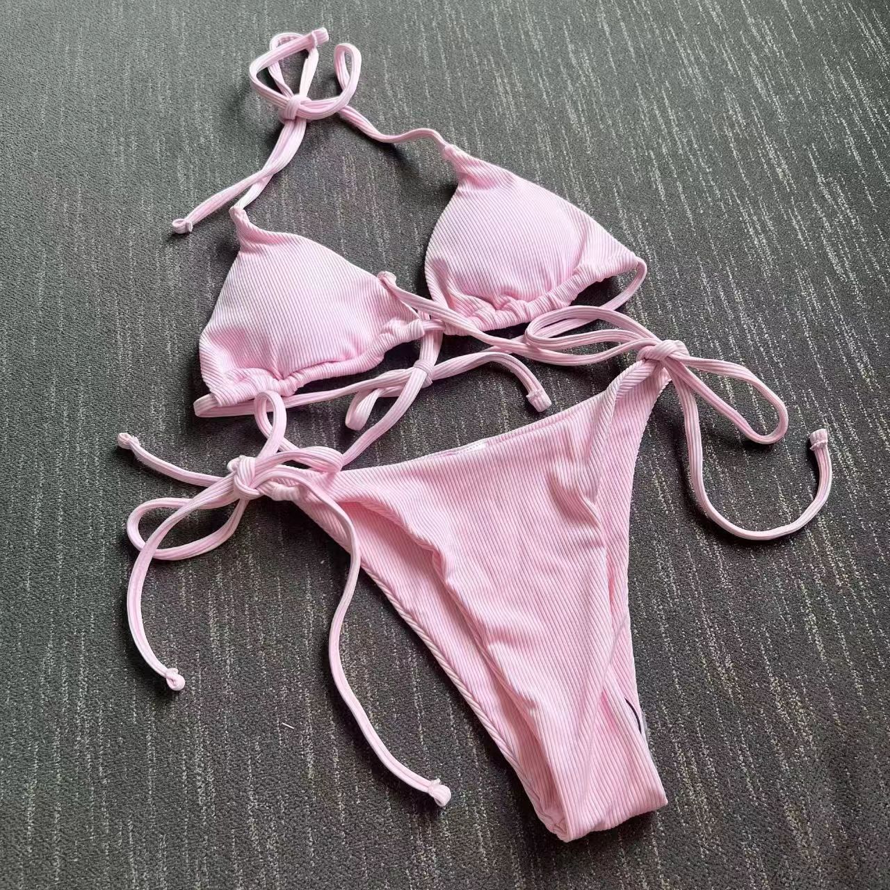 2025 유럽과 미국의 국경 새로운 분할 수영복 졸라 매는 끈 스트랩 스트라이프 수영복 대외 무역 3점 비키니 비키니