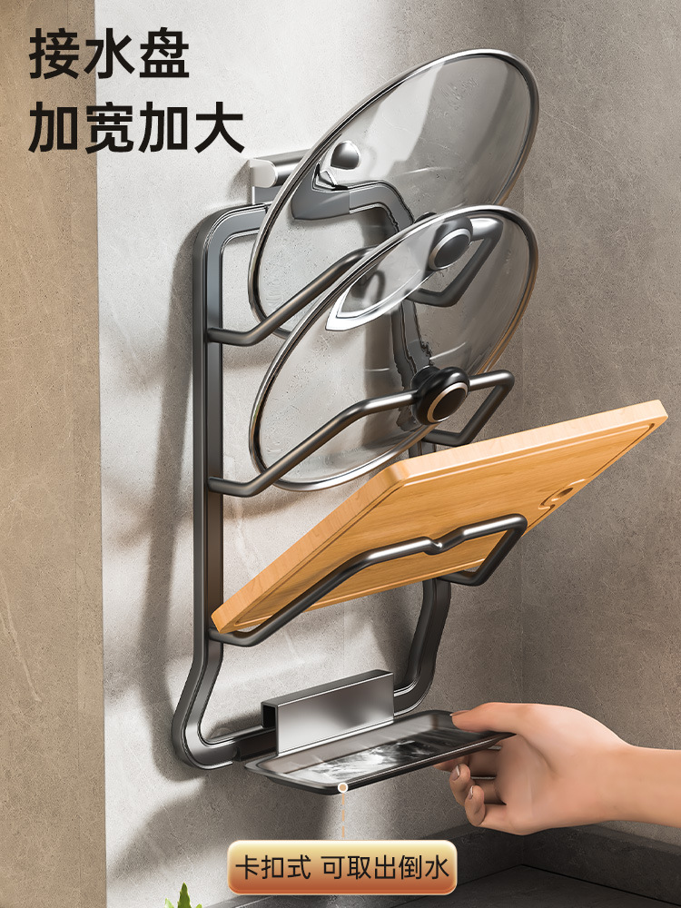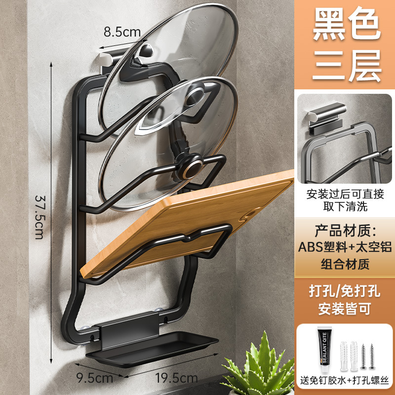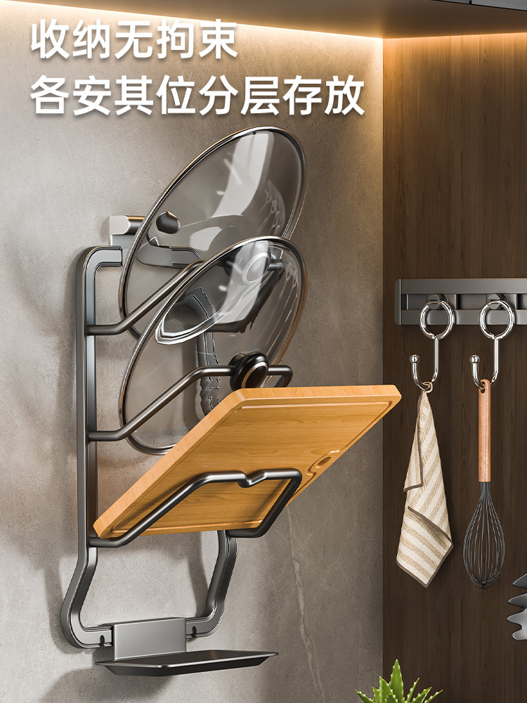 냄비 커버 랙 펀치없는 벽걸이 주방 스토리지 랙 대형 커팅 보드 가정용 스토리지 다층 도마 랙 다기능스토어 가기