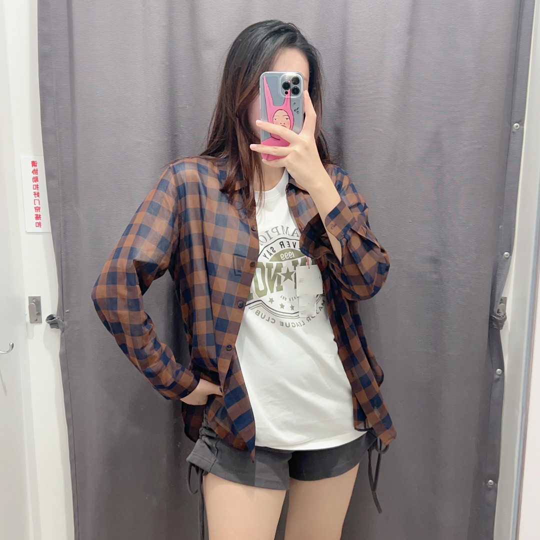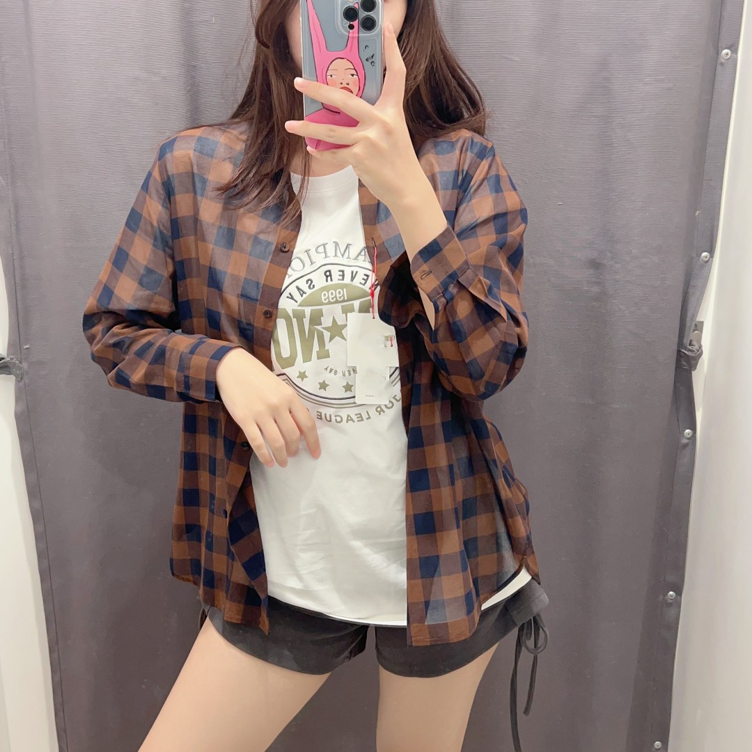 피팅 룸 봄과 가을 여성면 격자 무늬 얇은 셔츠 긴팔 캐주얼 올 매치 체크 무늬 셔츠 463562스토어 가기