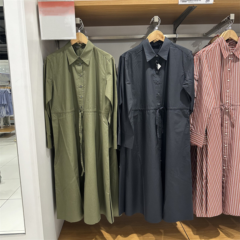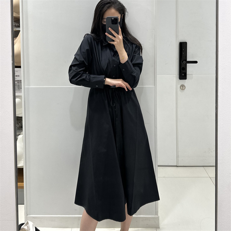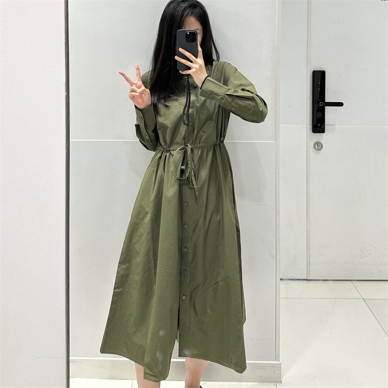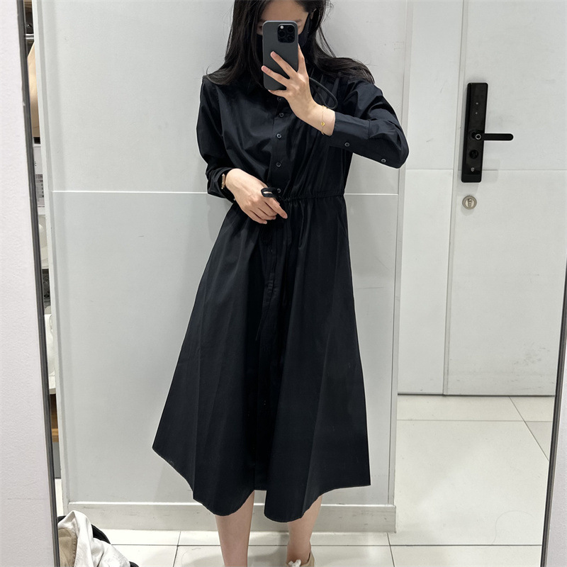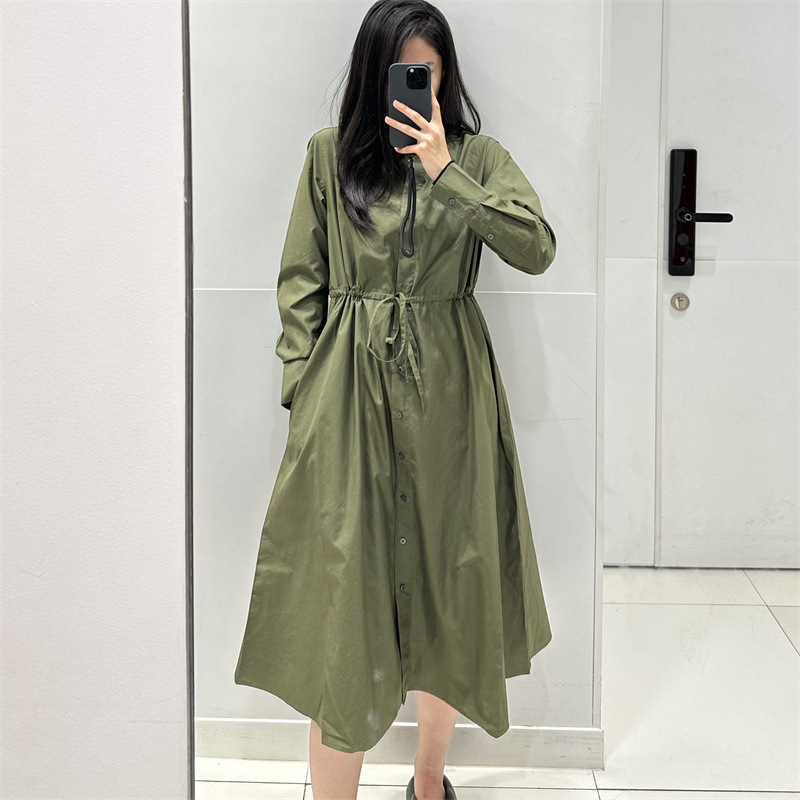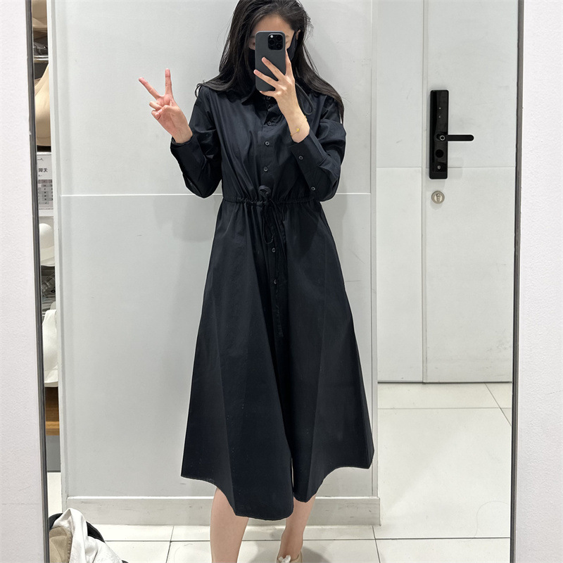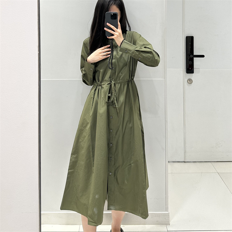 피팅 룸 가을 여성용 코튼 드로우 스트링 타이트 허리 셔츠 원피스 긴 소매 긴 얇은 코트 여성용 462596스토어 가기