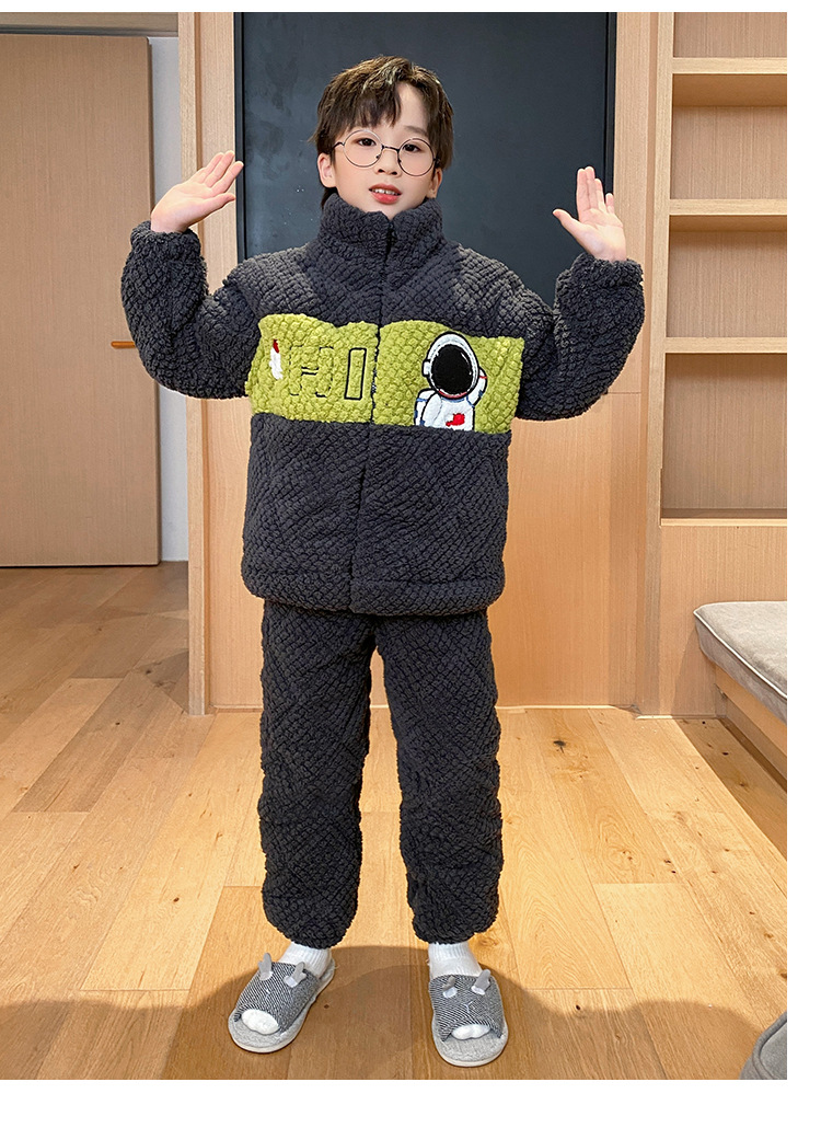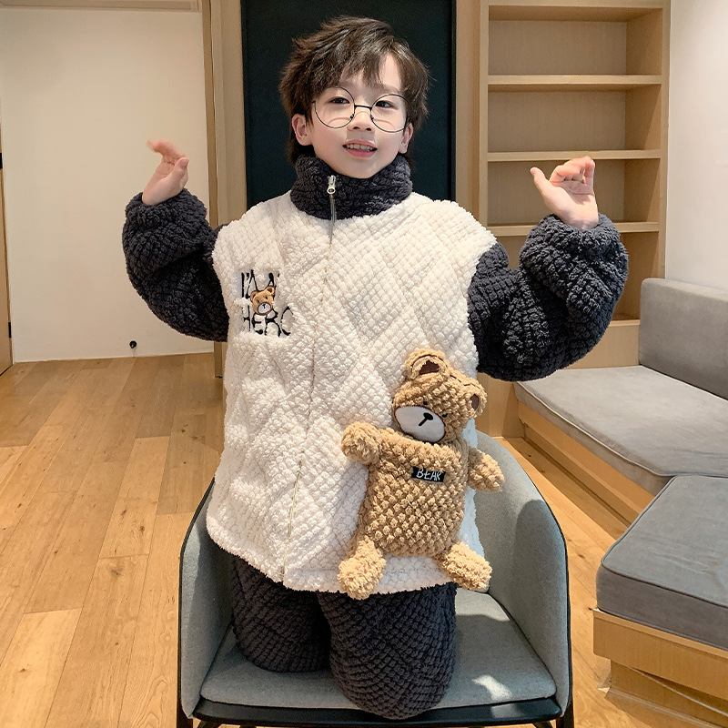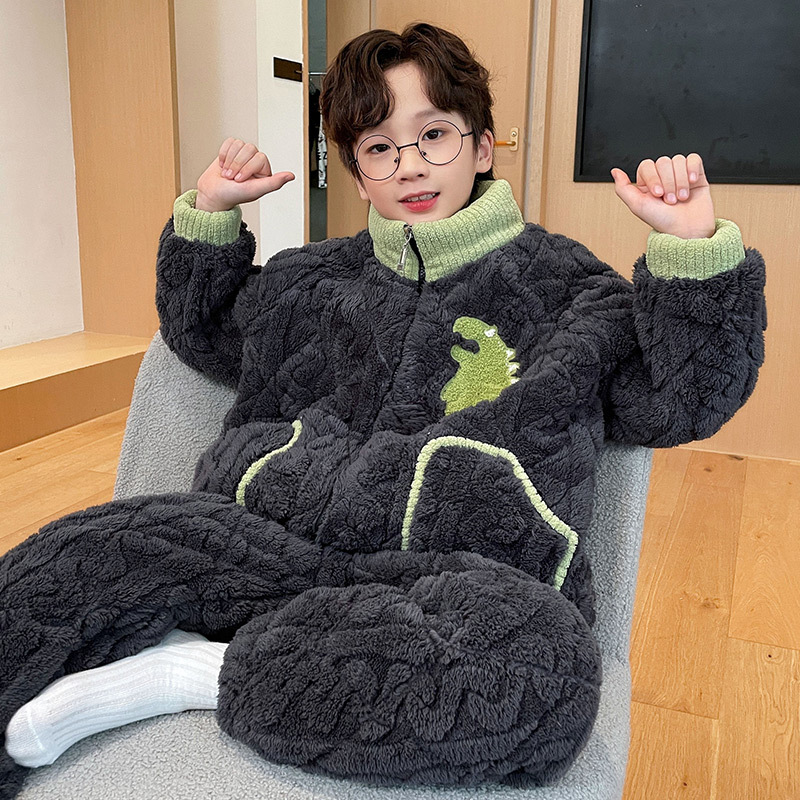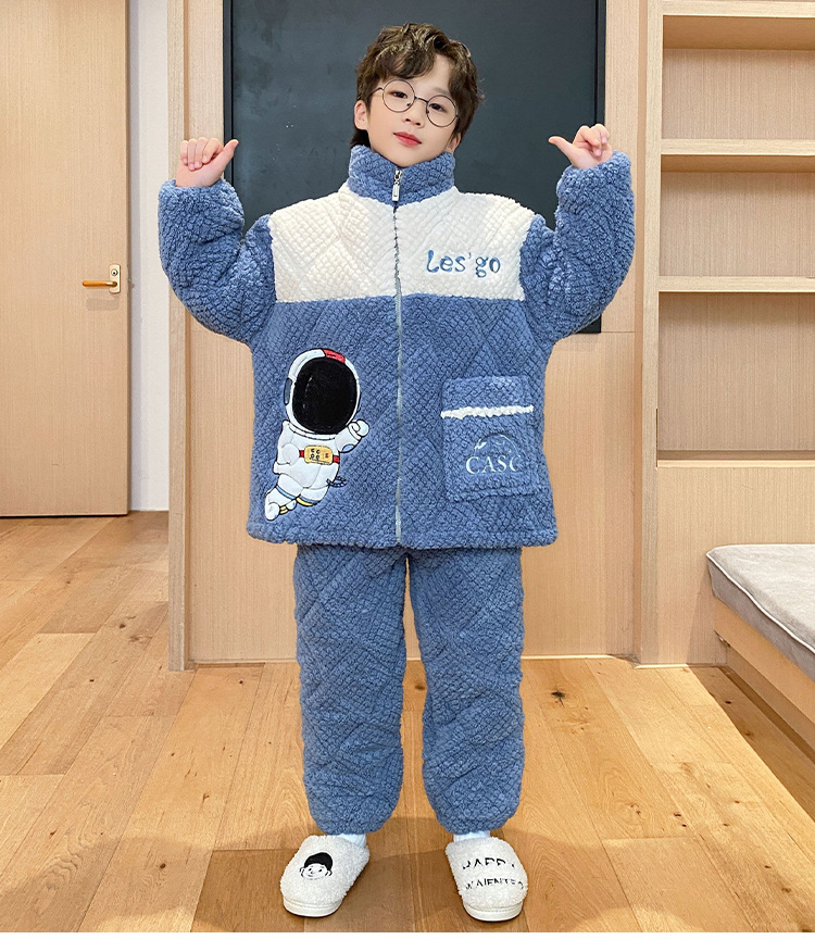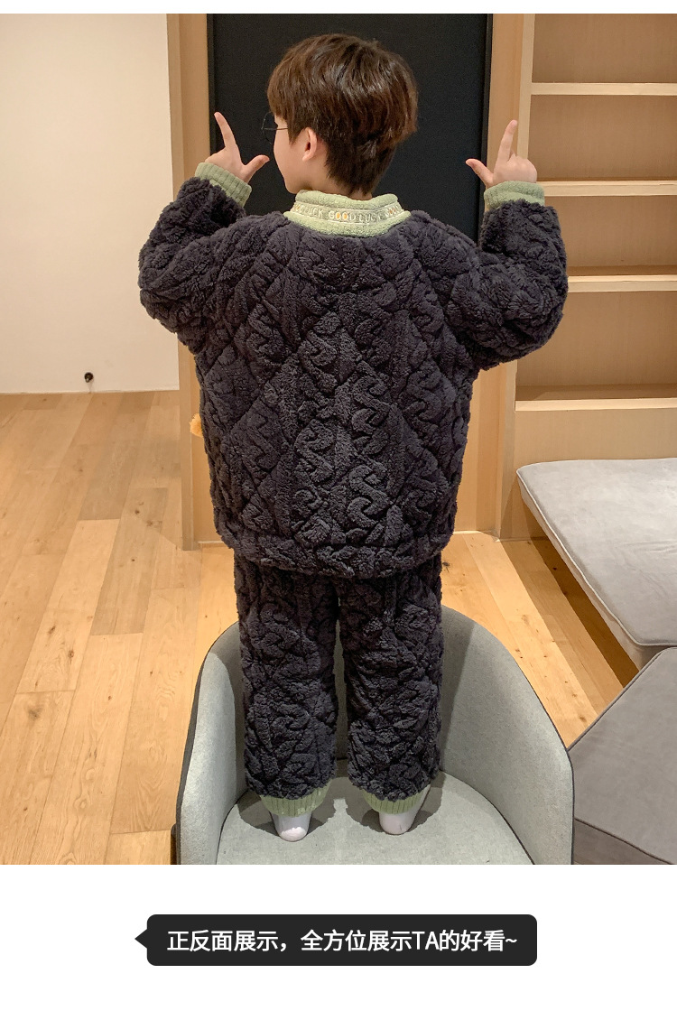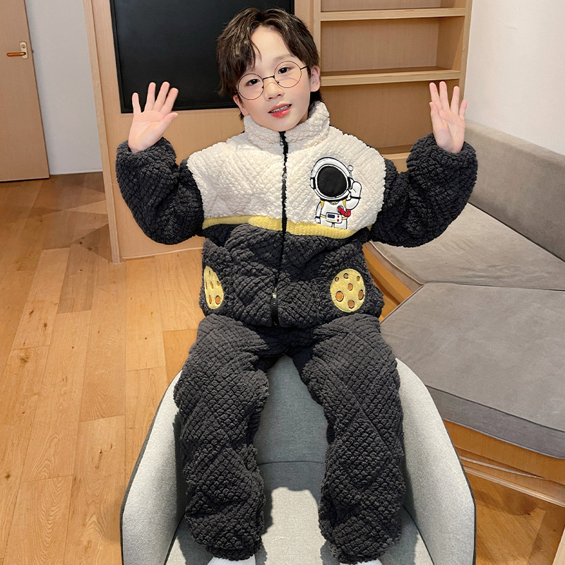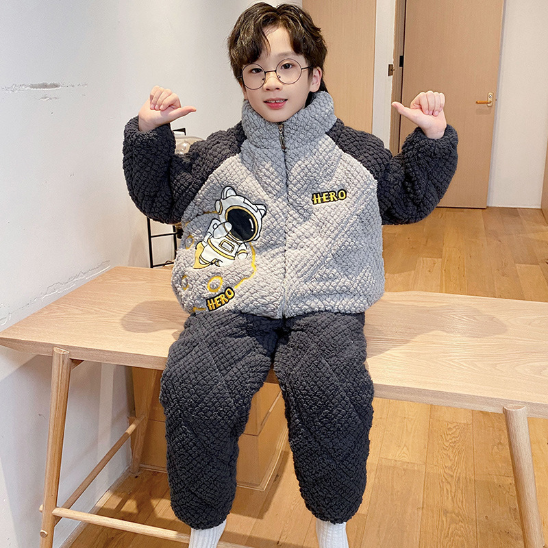어린이 잠옷 소년의 겨울 퀼트 3 층 두껍게 기모 플란넬 소년 중 · 대형 어린이 가정복 세트 겨울