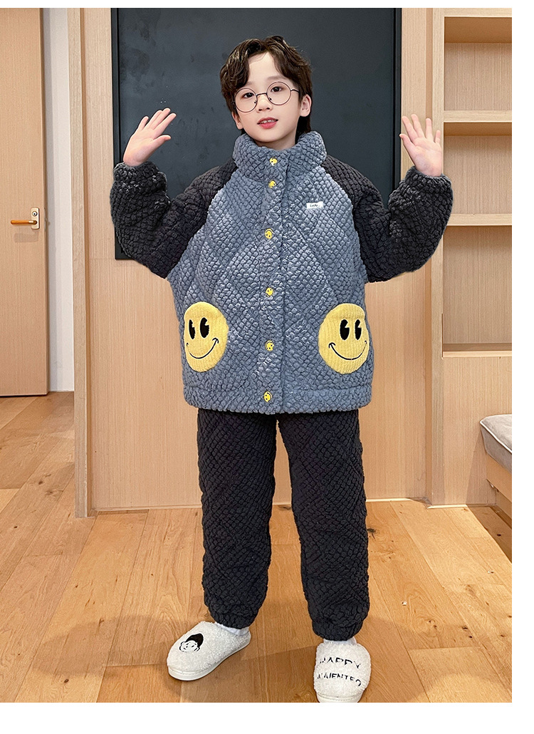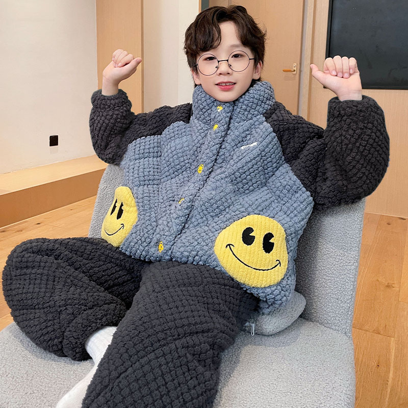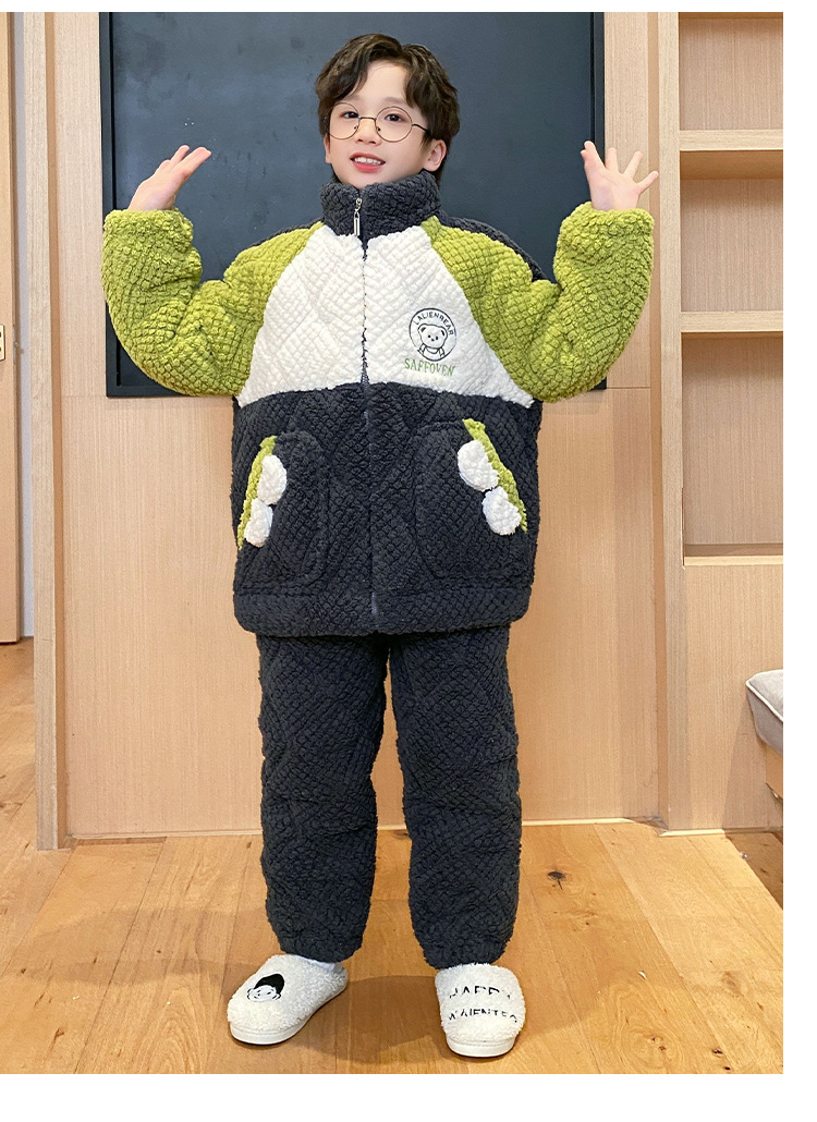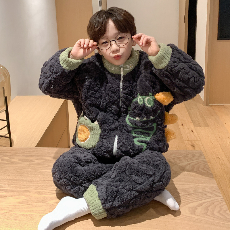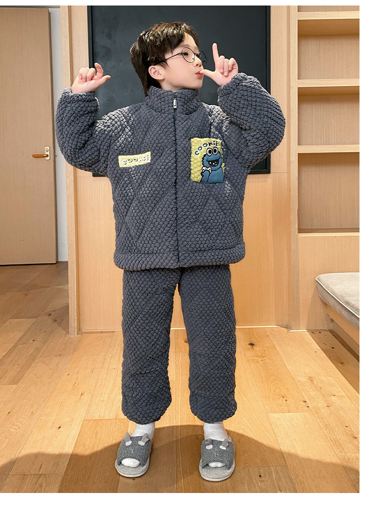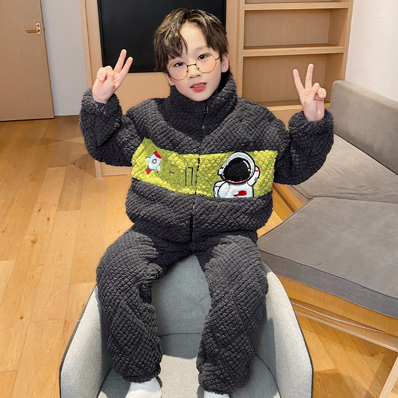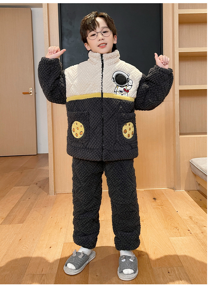 어린이 잠옷 소년의 겨울 퀼트 3 층 두껍게 기모 플란넬 소년 중 · 대형 어린이 가정복 세트 겨울