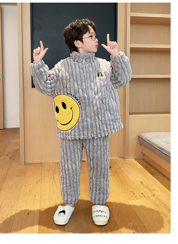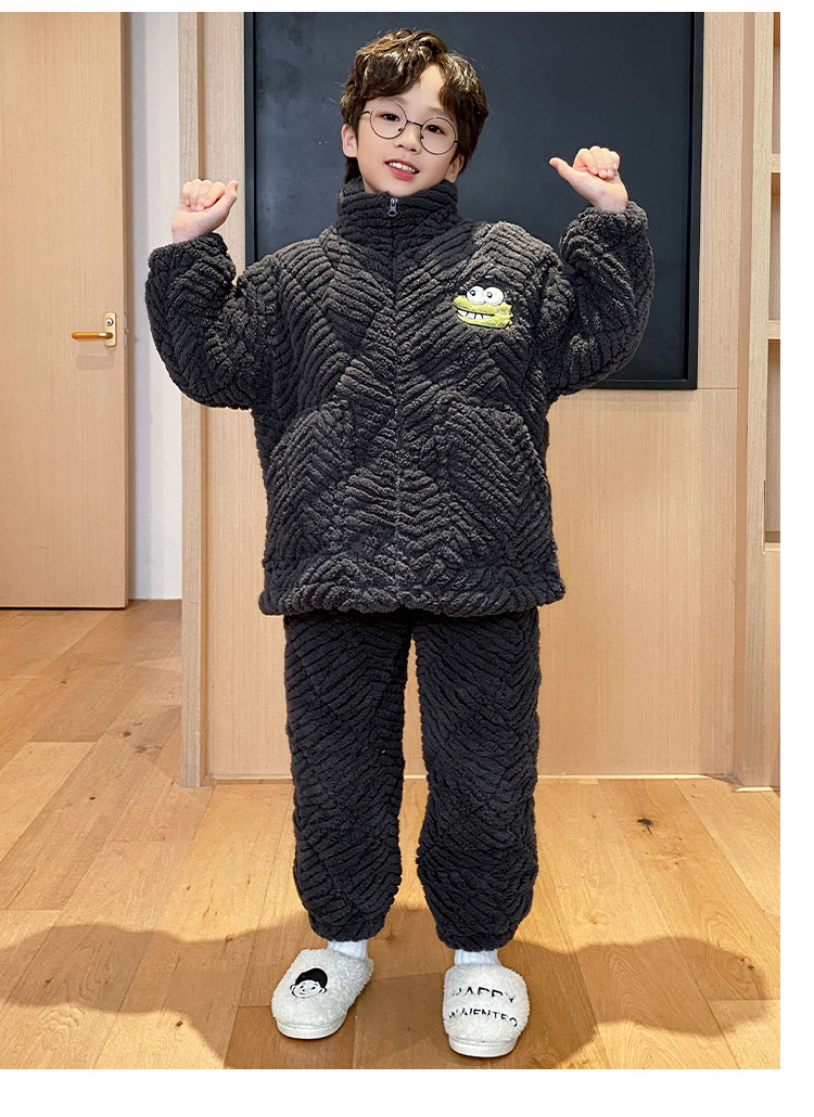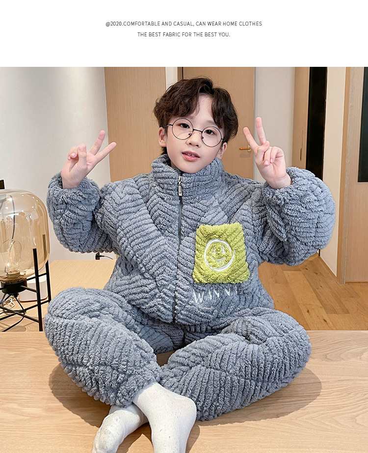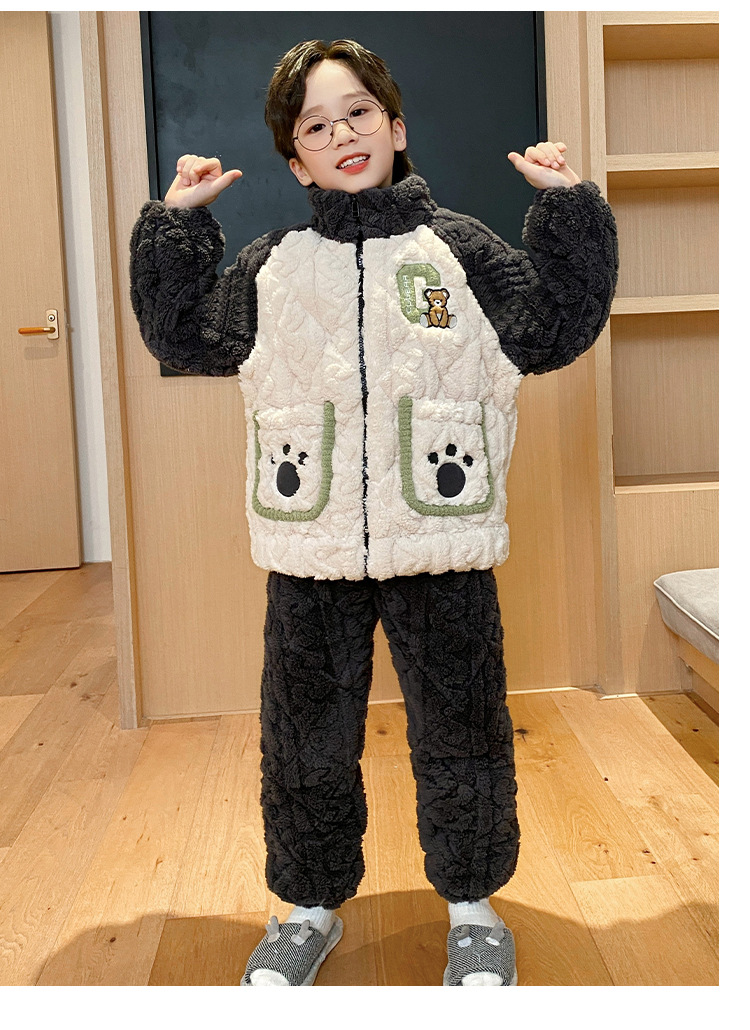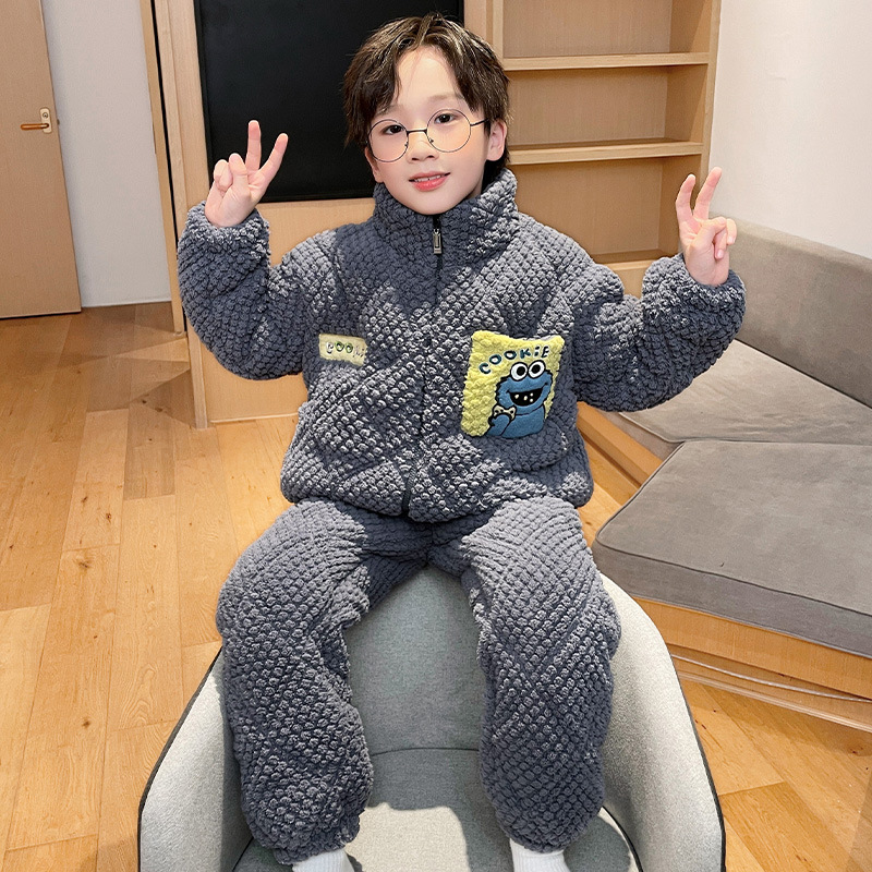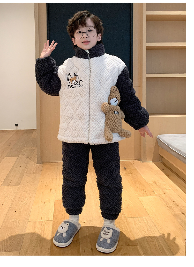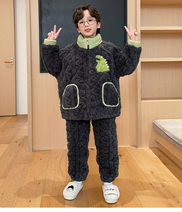 어린이 잠옷 소년의 겨울 퀼트 3 층 두껍게 기모 플란넬 소년 중 · 대형 어린이 가정복 세트 겨울