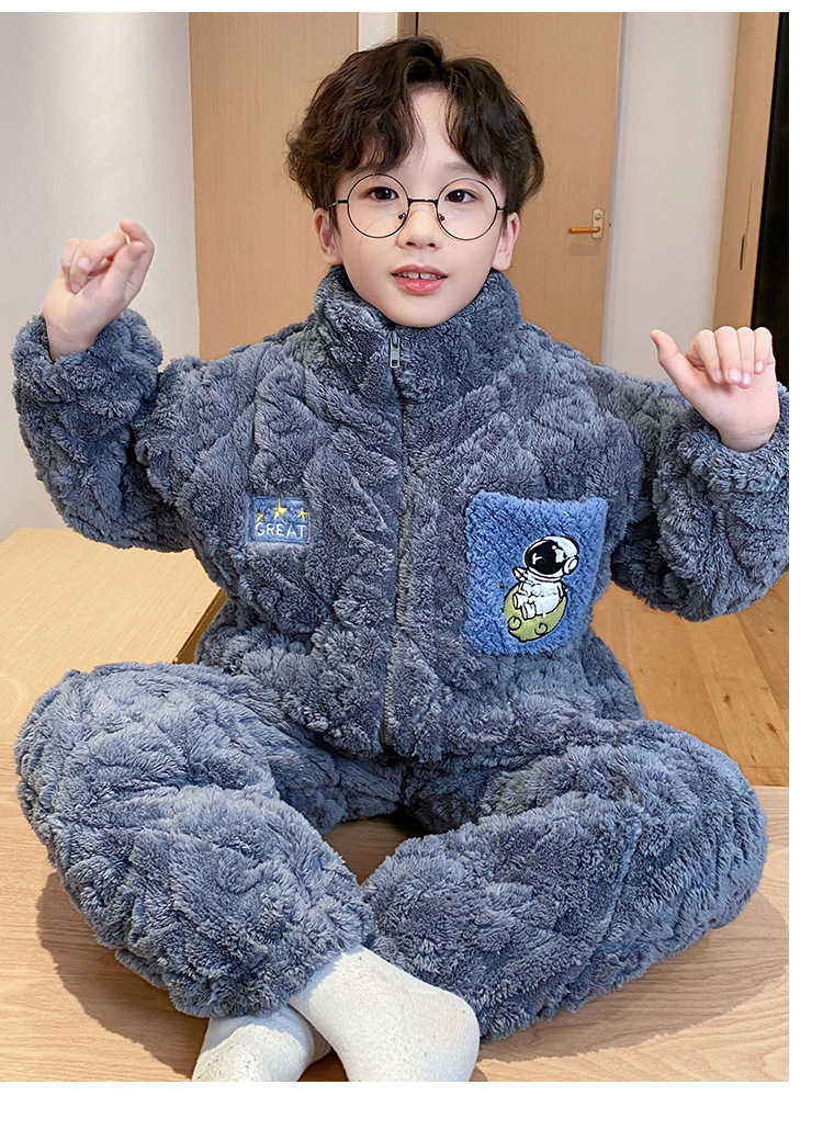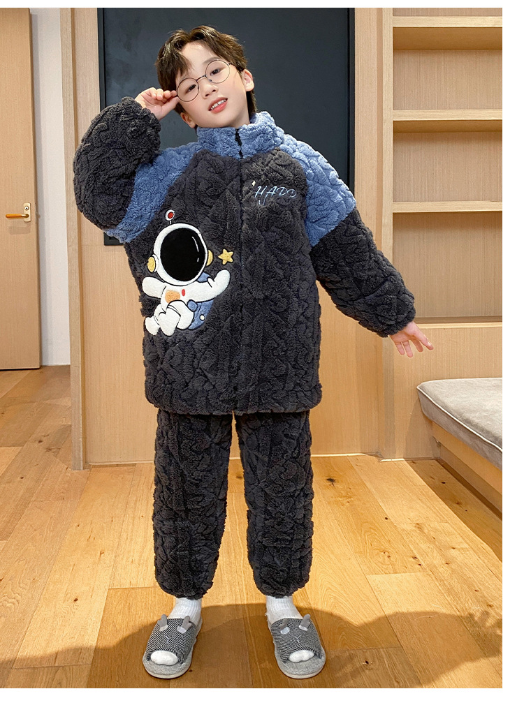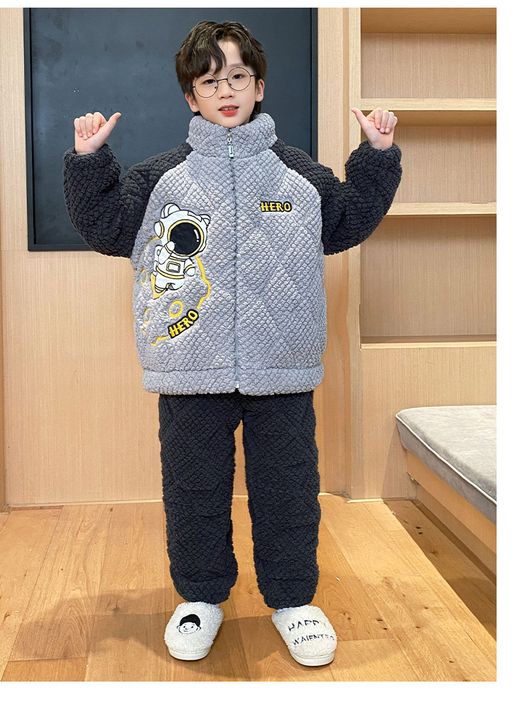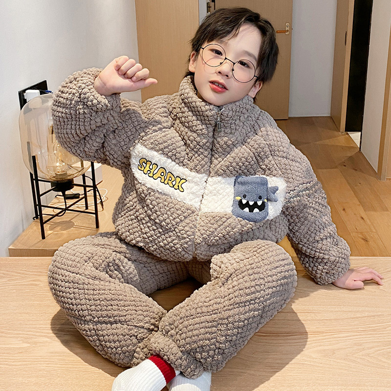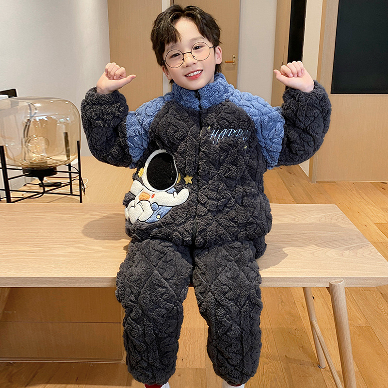 어린이 잠옷 소년의 겨울 퀼트 3 층 두껍게 기모 플란넬 소년 중 · 대형 어린이 가정복 세트 겨울스토어 가기