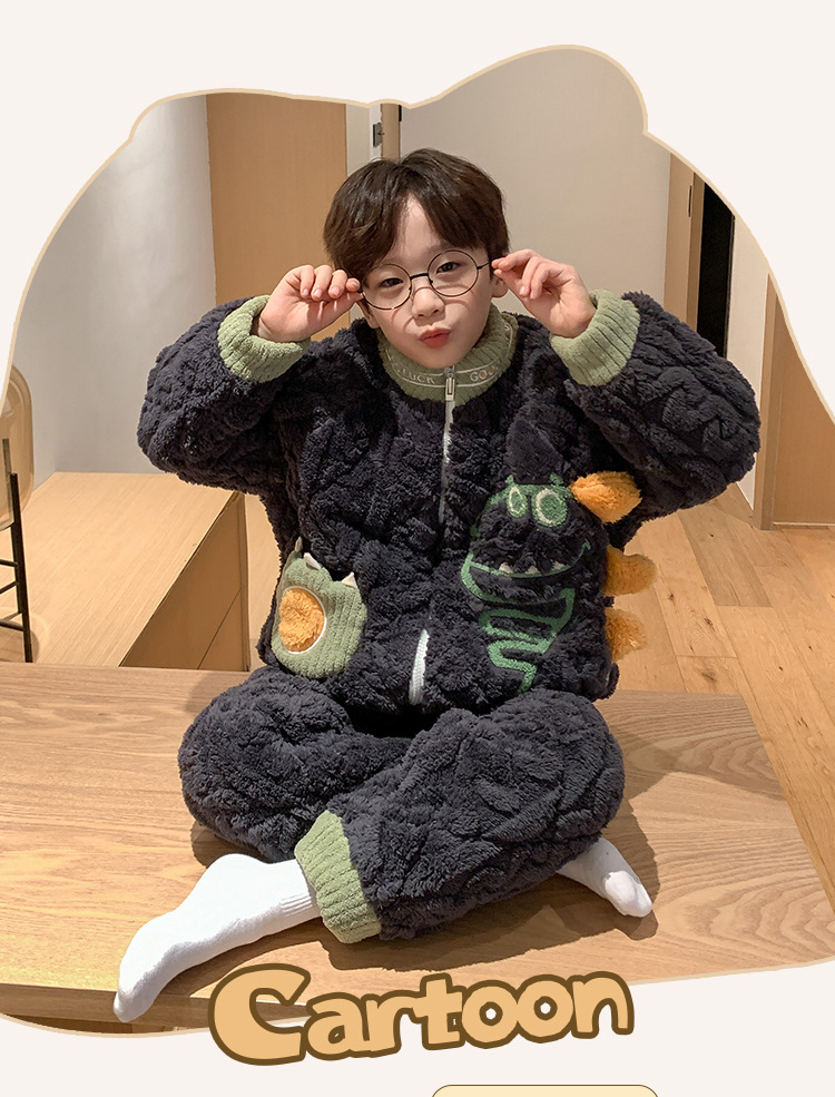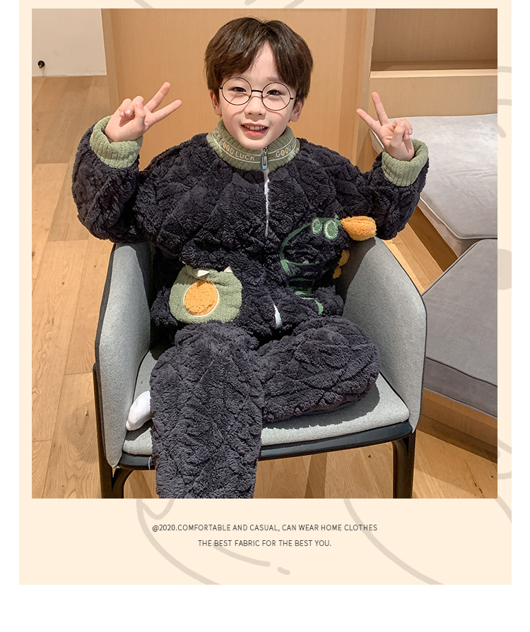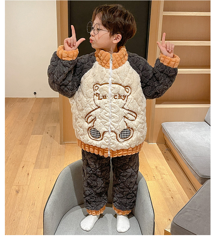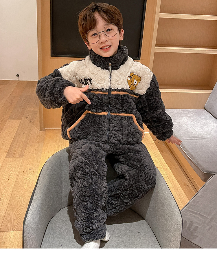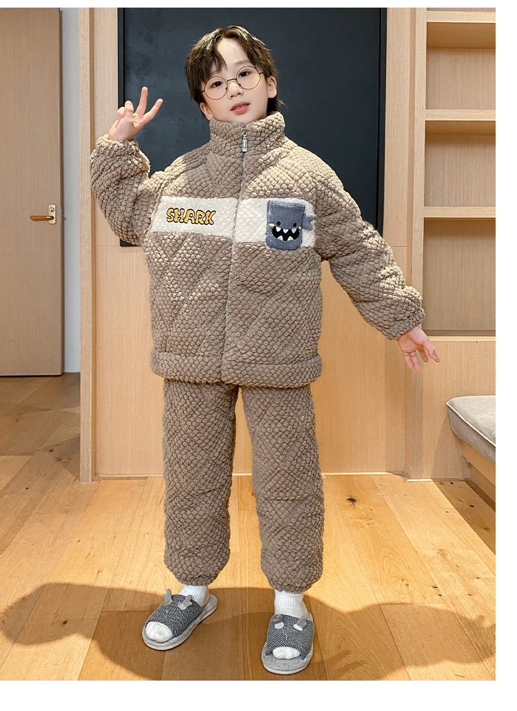 어린이 잠옷 소년의 겨울 퀼트 3 층 두껍게 기모 플란넬 소년 중 · 대형 어린이 가정복 세트 겨울스토어 가기