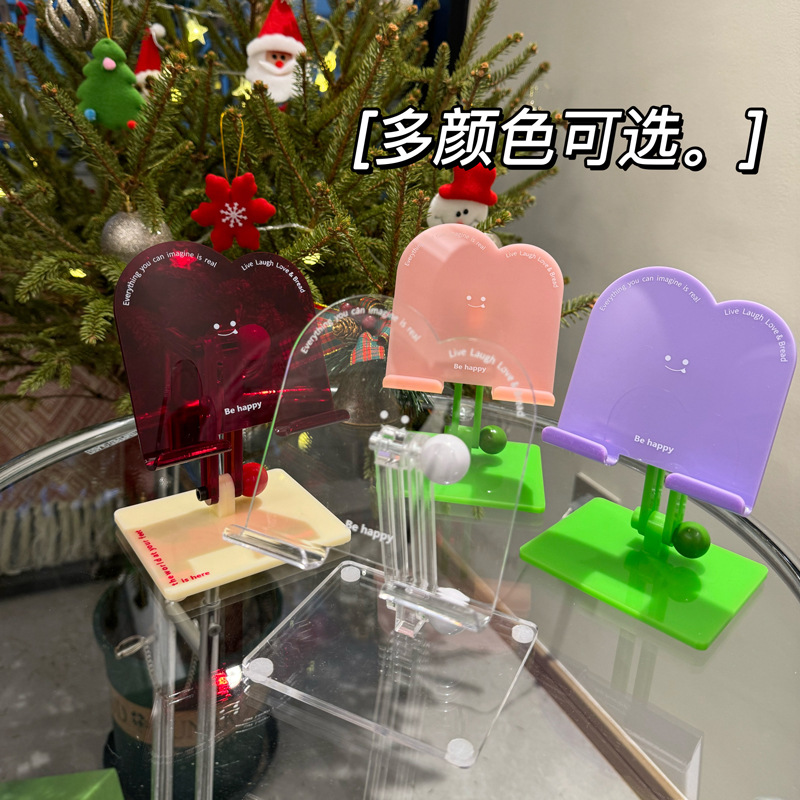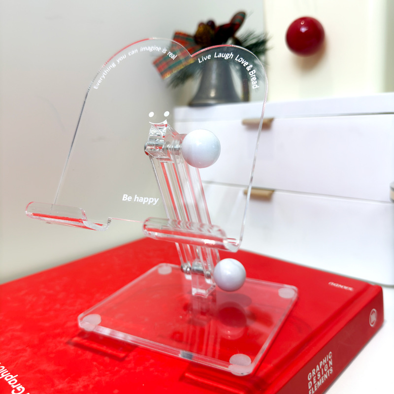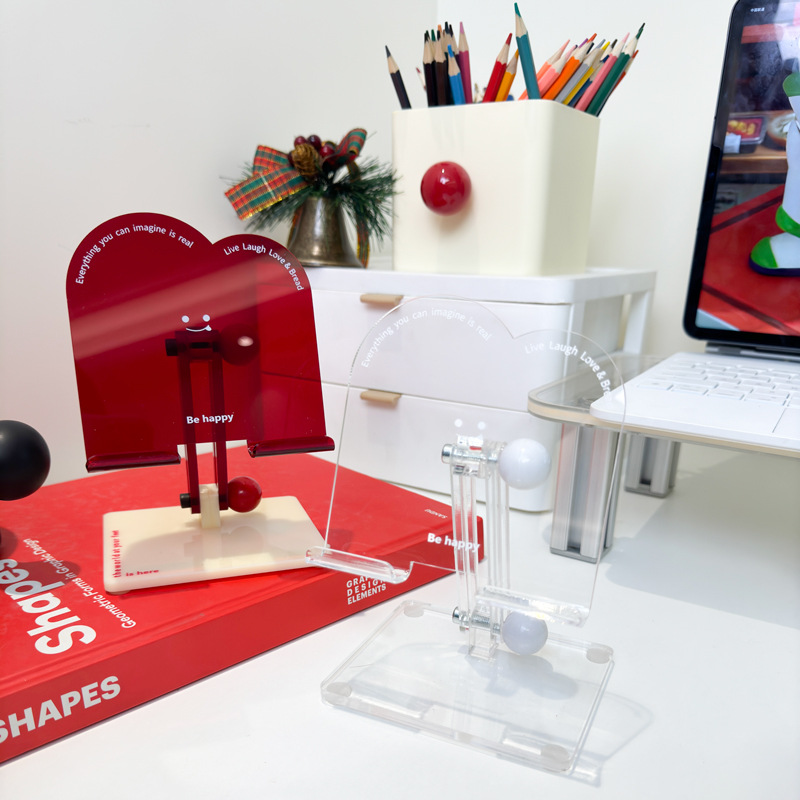2026년 새해 빨간색 아크릴 휴대폰 거치대 맞춤형 투명 태블릿 거치대 귀여운 웃는 얼굴 접이식 거치대