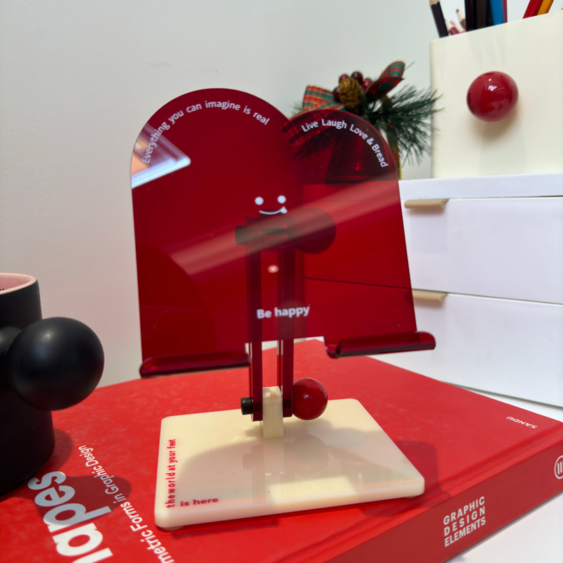 2026년 새해 빨간색 아크릴 휴대폰 거치대 맞춤형 투명 태블릿 거치대 귀여운 웃는 얼굴 접이식 거치대스토어 가기