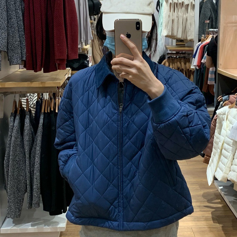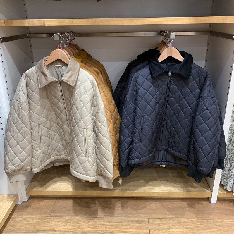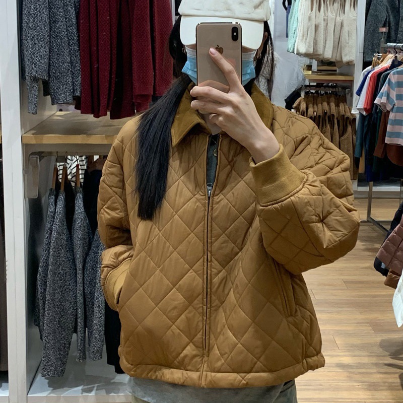 여성 자켓 가을과 겨울 새로운 빈티지 다이아몬드 플레이드 코튼 패딩 재킷 느슨한 따뜻한 재킷 피팅 룸 탑 C461360