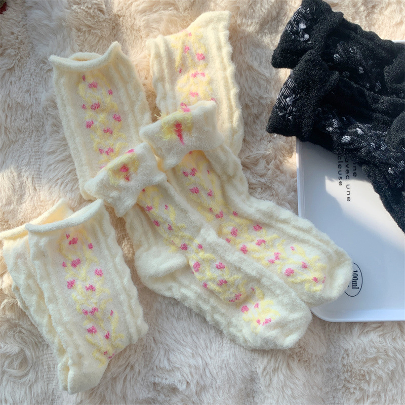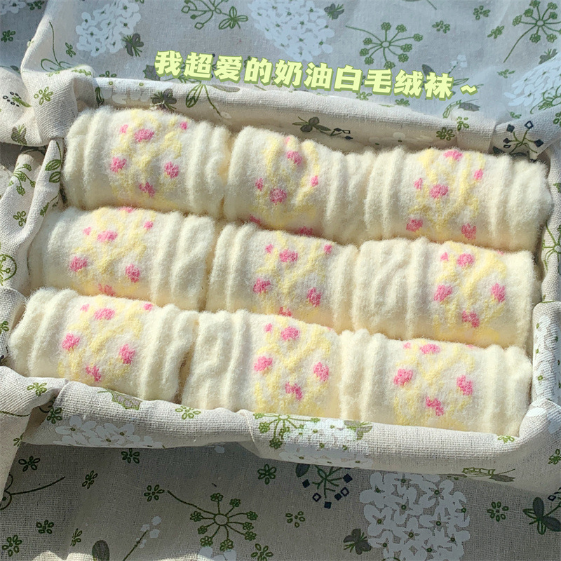 모조 밍크 벨벳 꽃 양말 여성 가을 및 겨울 따뜻한 바닥 양말 빈티지 트위스트 패턴 플러스 벨벳 패딩 튜브 양말스토어 가기