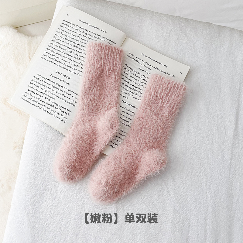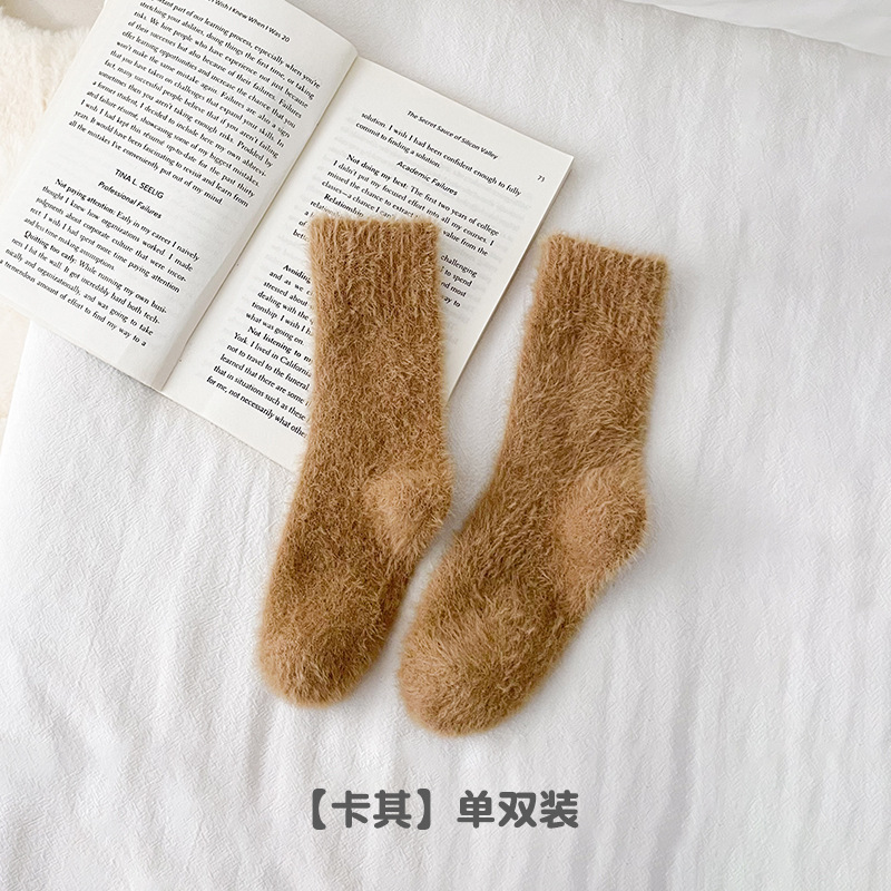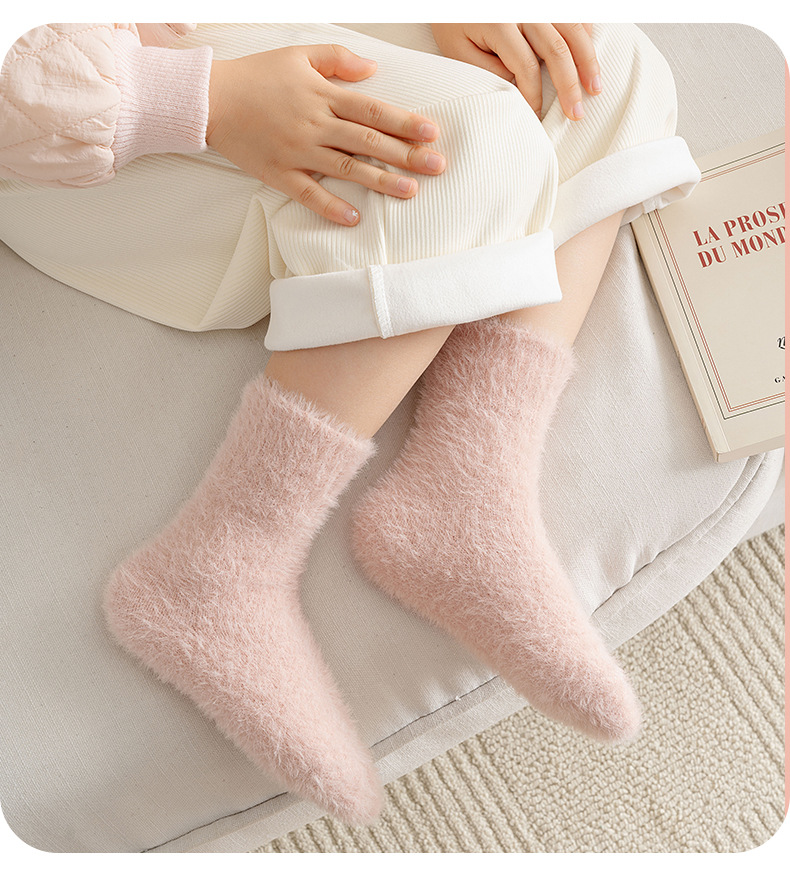 어린이 양말 소녀의 가을과 겨울 두꺼운 테리 양말 단색 기모 아기 긴 겨울 소녀의 따뜻한면 양말스토어 가기