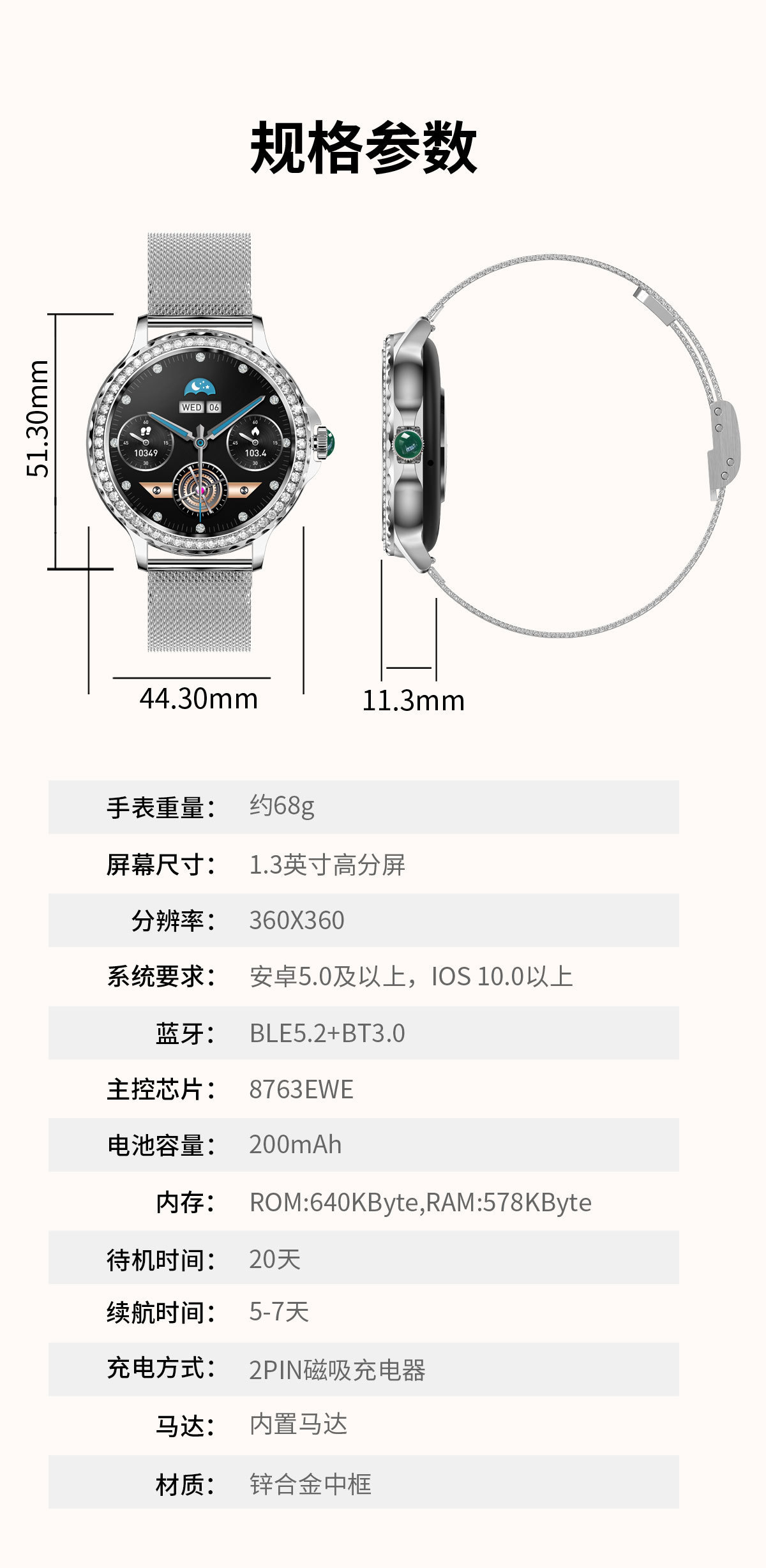 | 屏幕显示 LCD | 1.3" IPS屏 分辨率:360*360 |