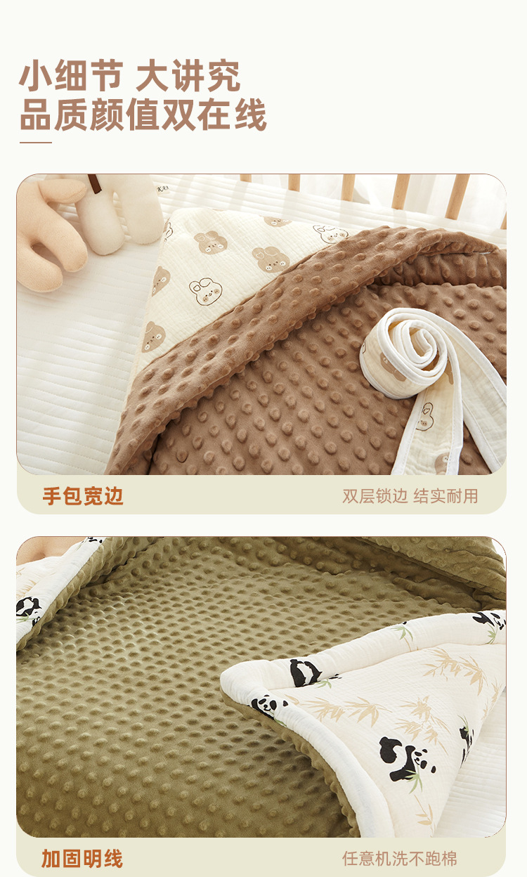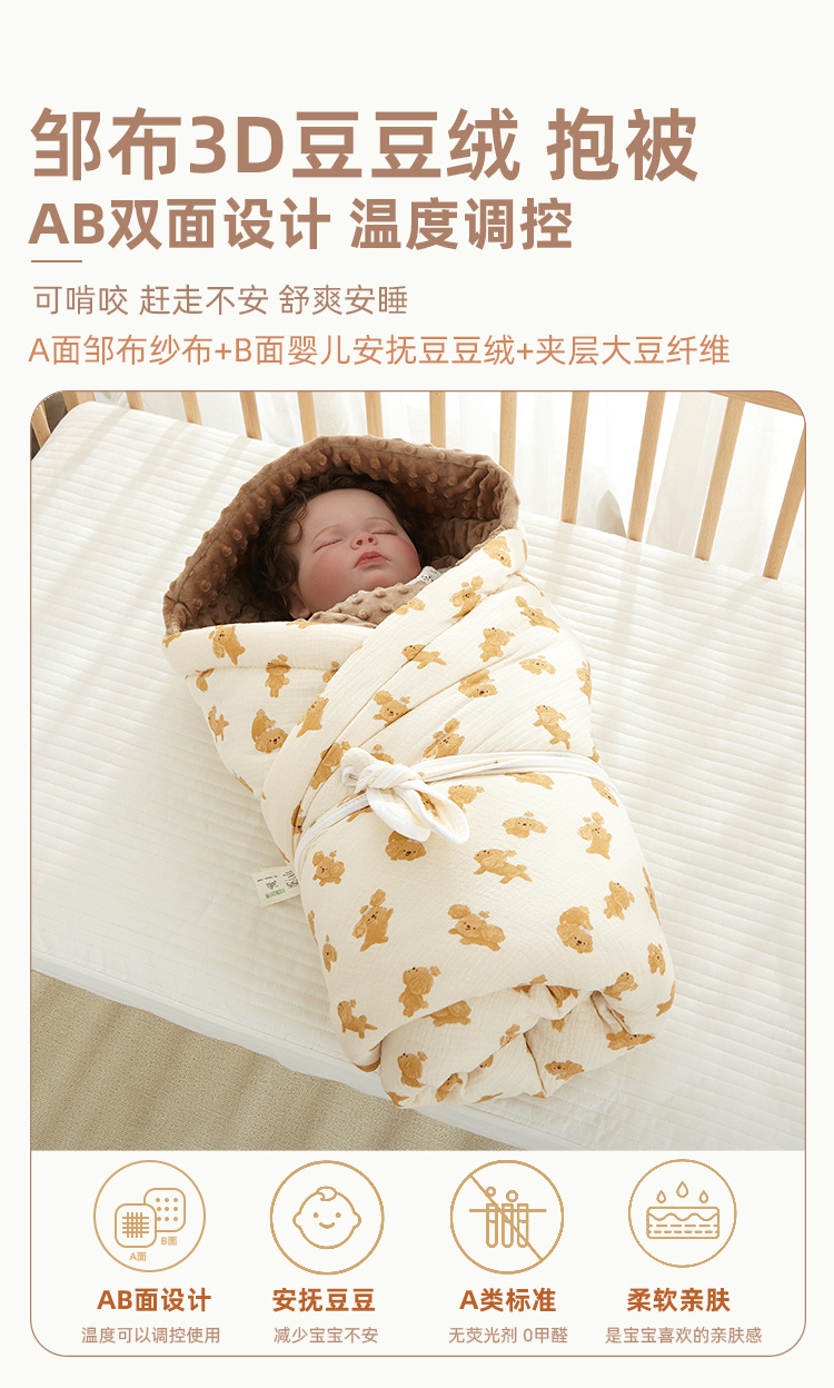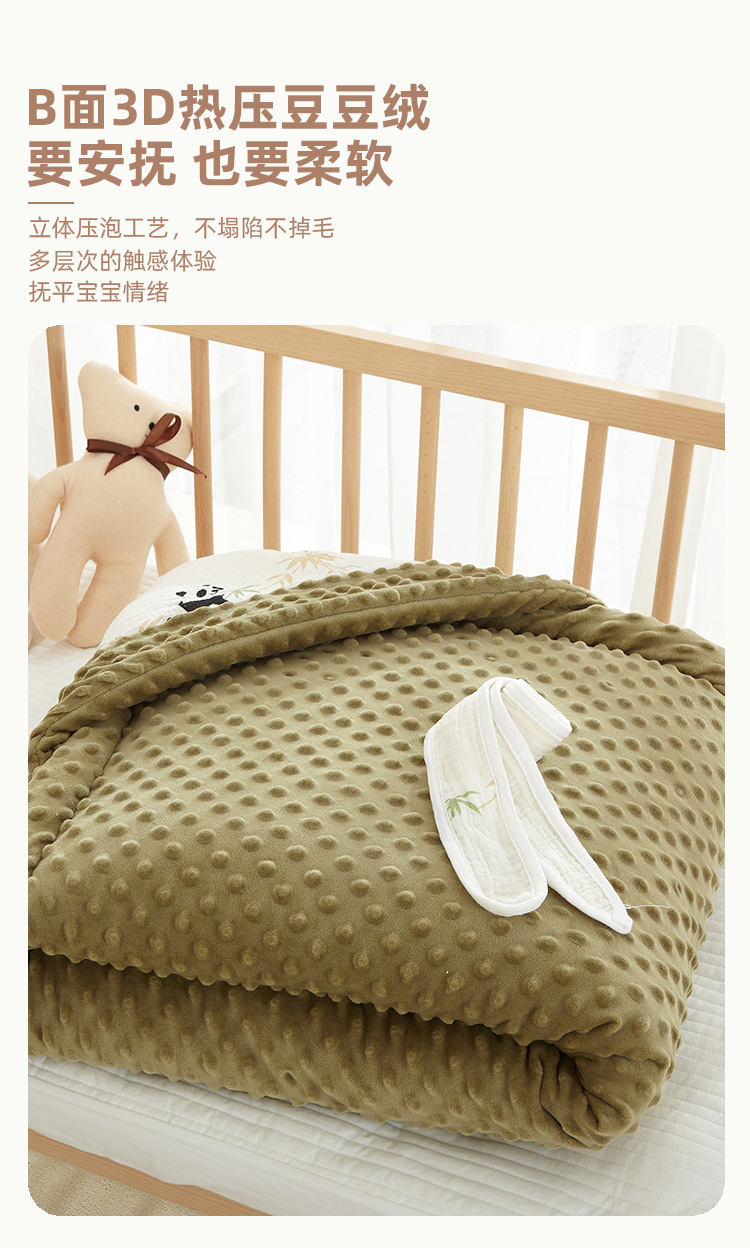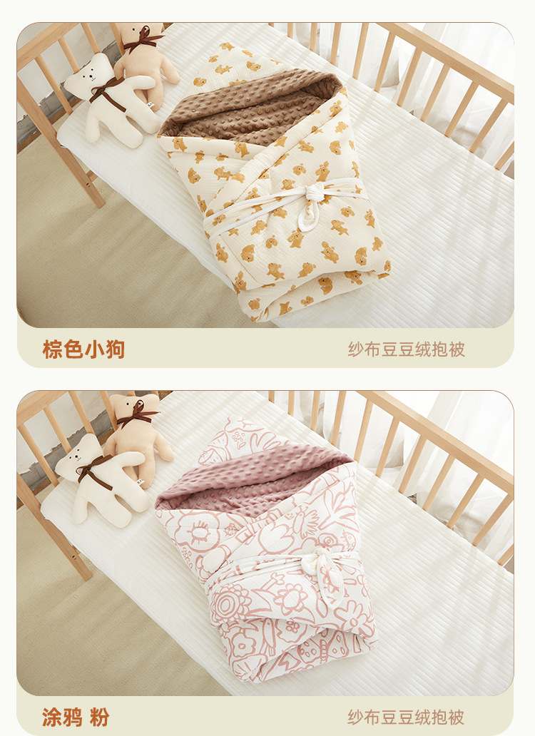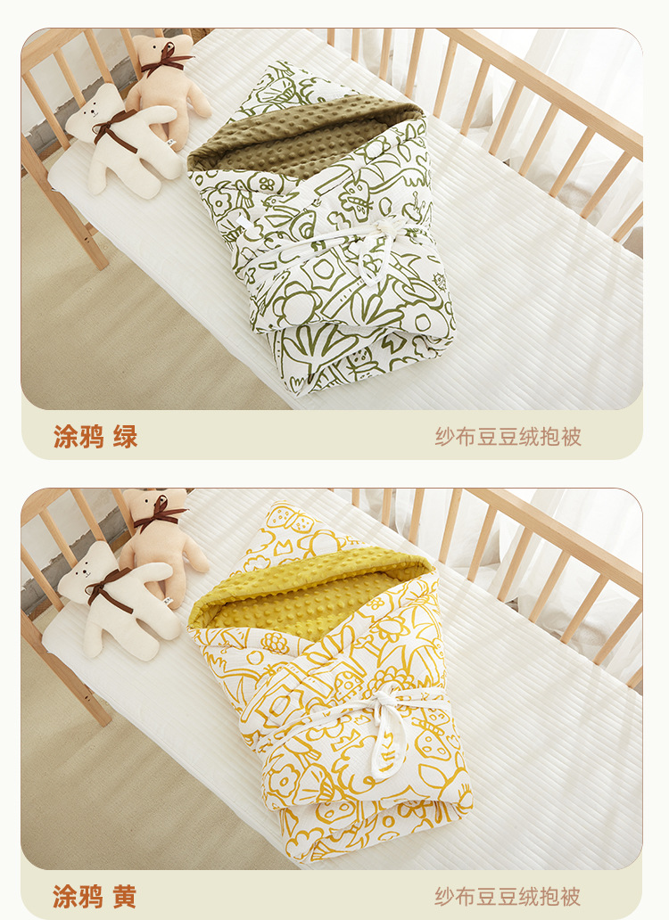 신생아 이불 순수한면 주름 천 콩 벨벳 아기 이불 충격 방지 진정 담요 가을과 겨울면 포장 시트