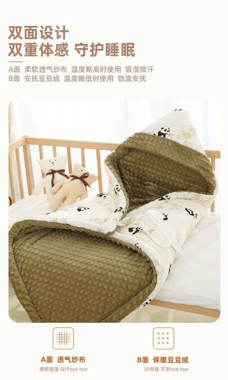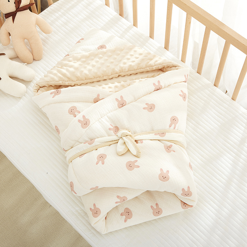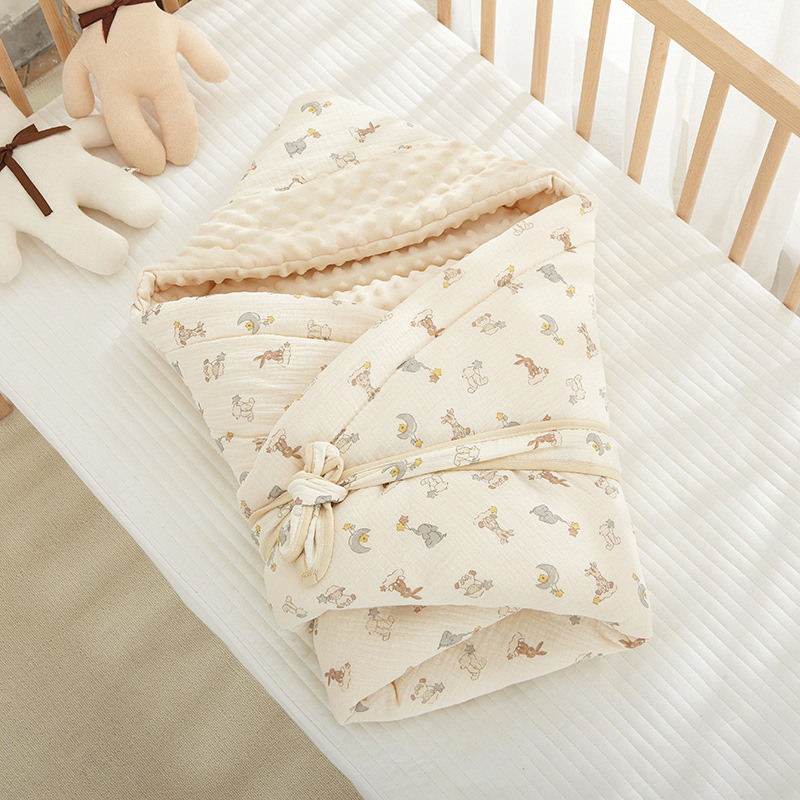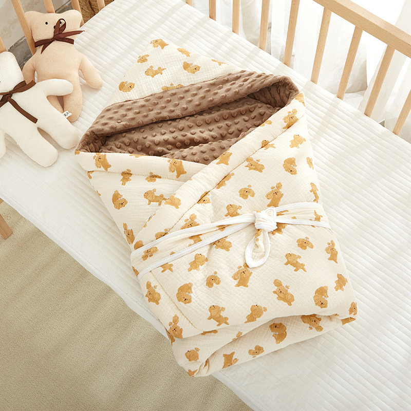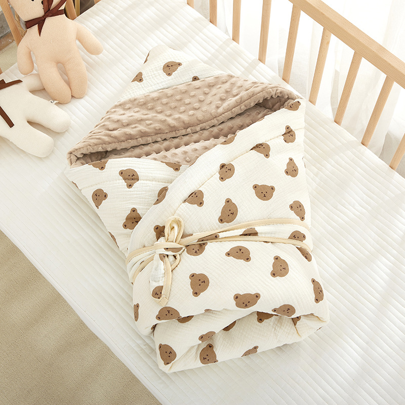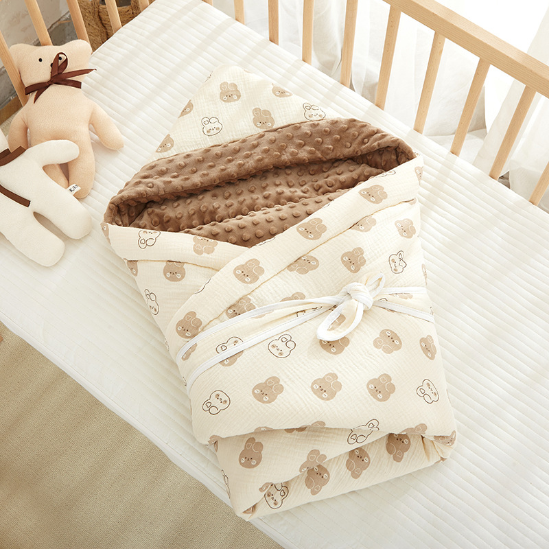 신생아 이불 순수한면 주름 천 콩 벨벳 아기 이불 충격 방지 진정 담요 가을과 겨울면 포장 시트