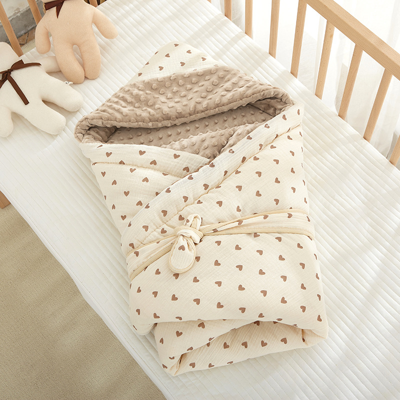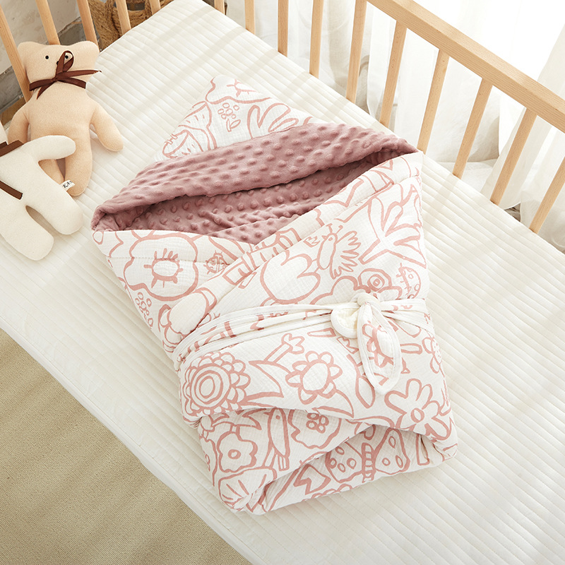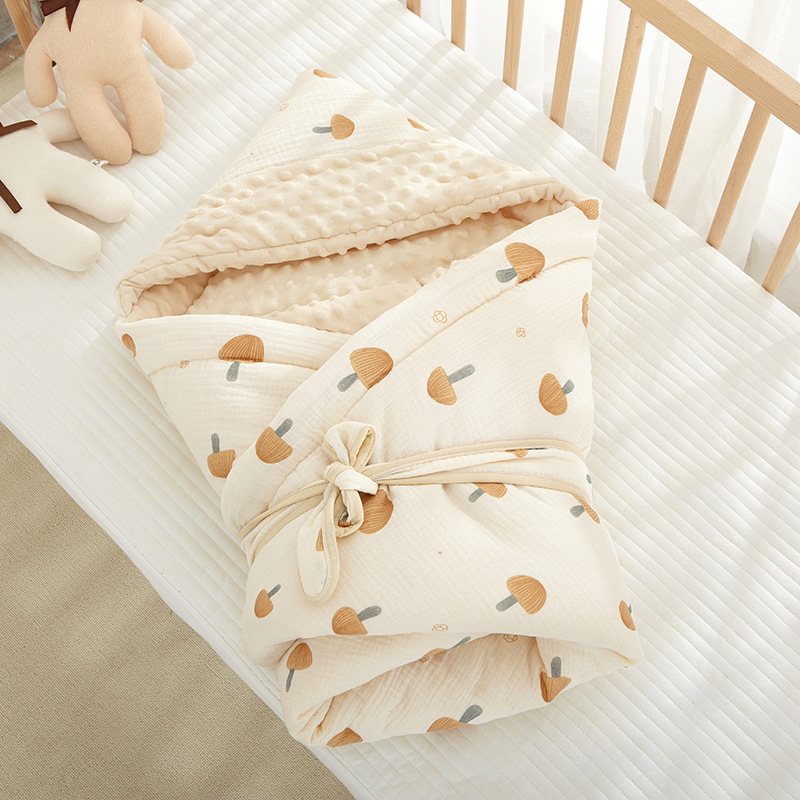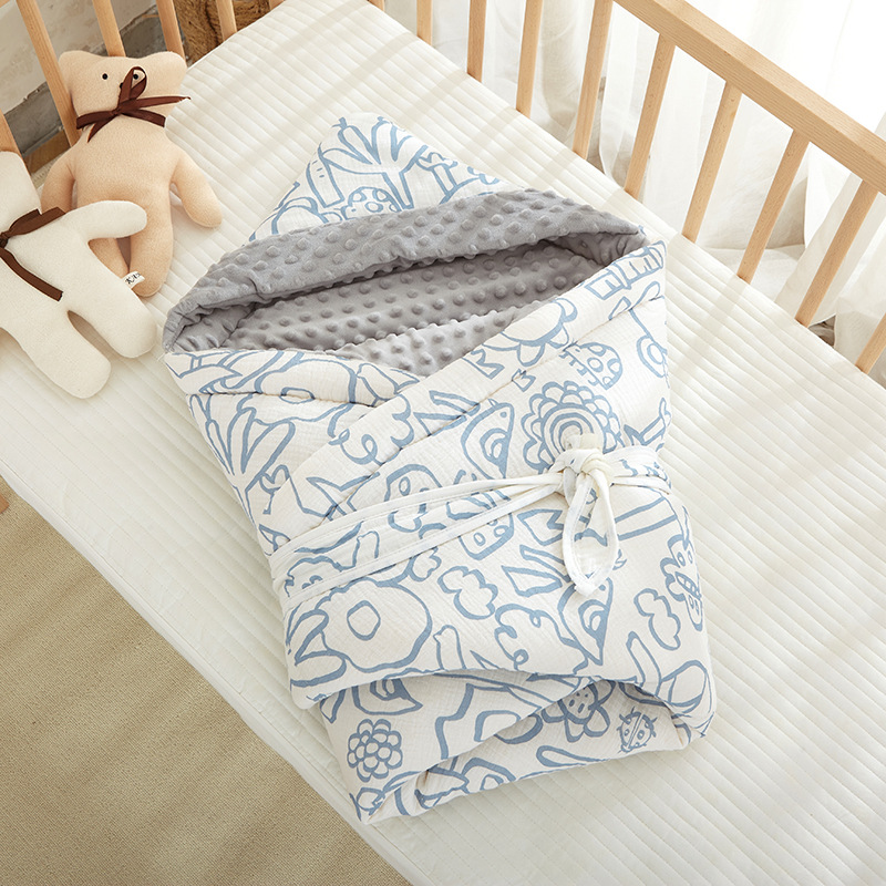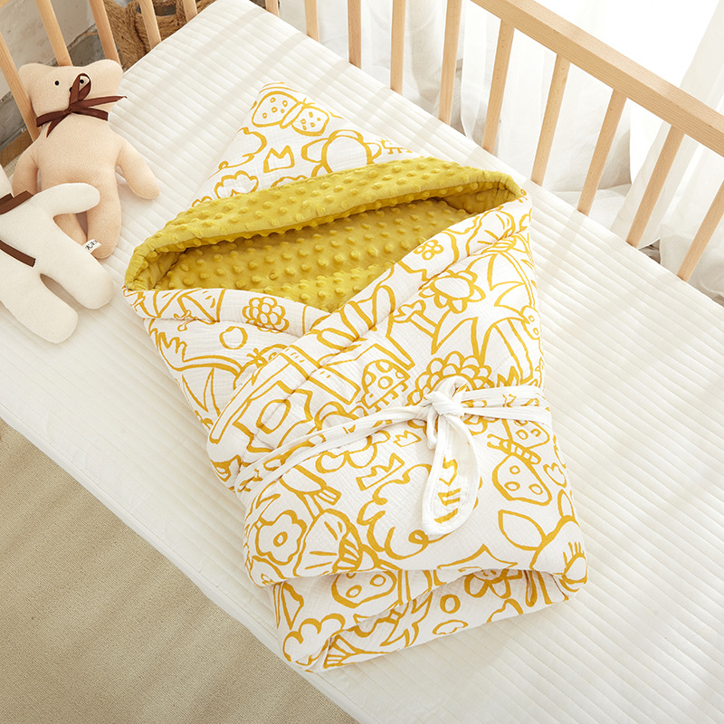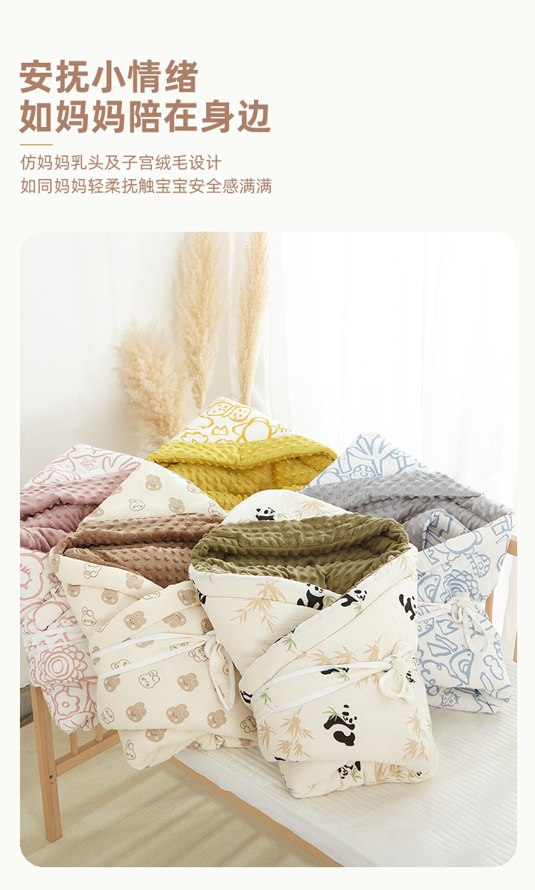 신생아 이불 순수한면 주름 천 콩 벨벳 아기 이불 충격 방지 진정 담요 가을과 겨울면 포장 시트